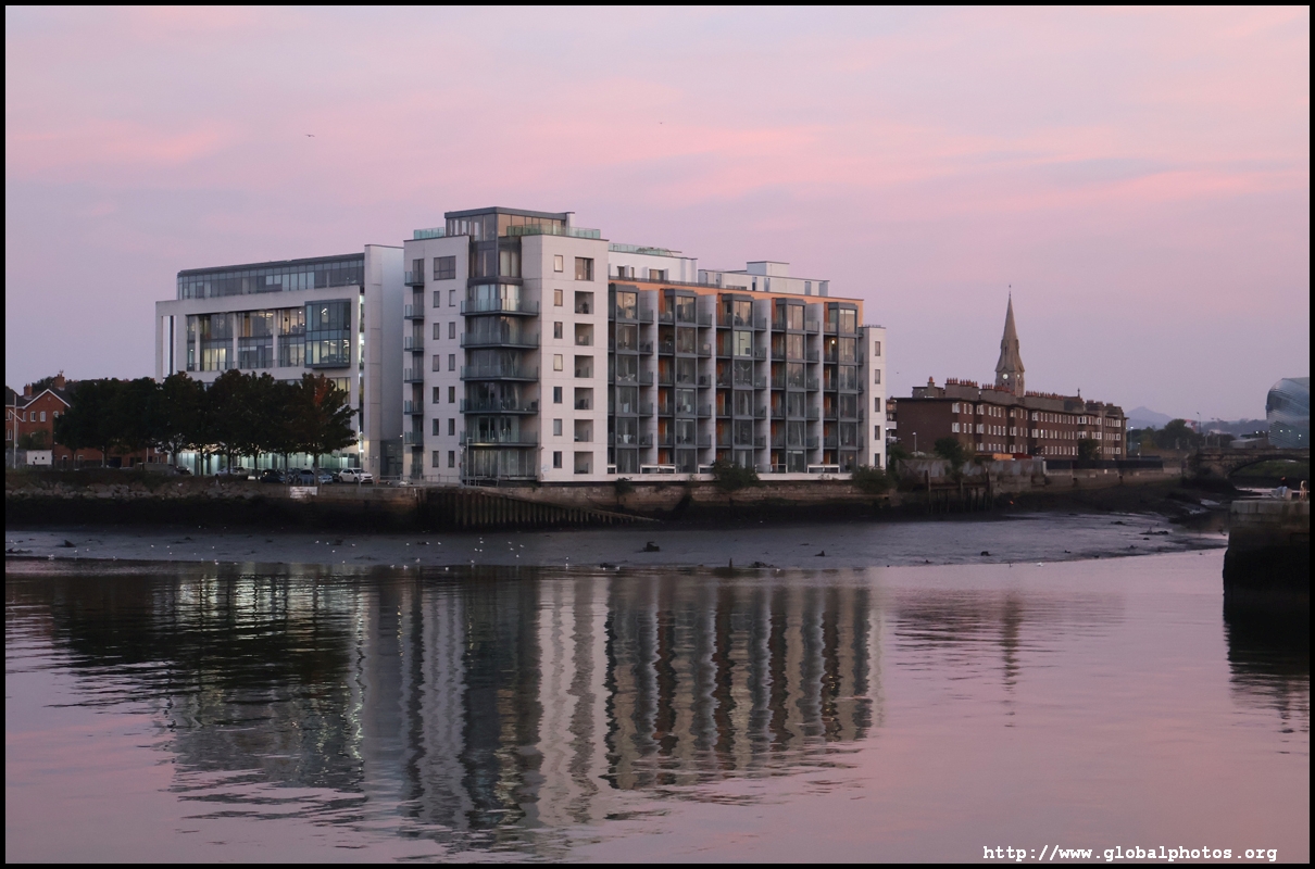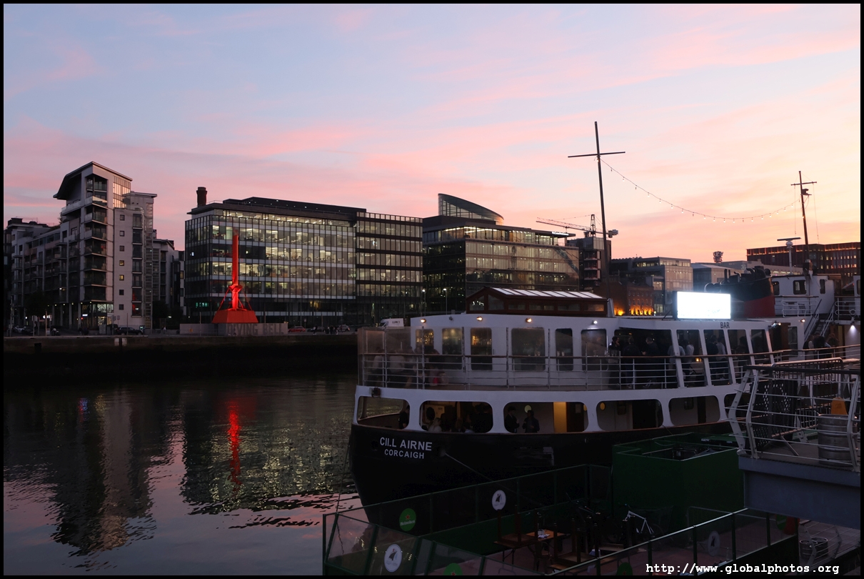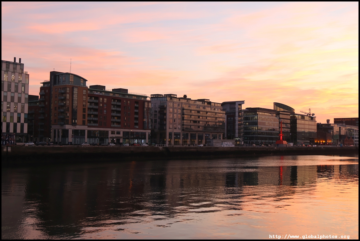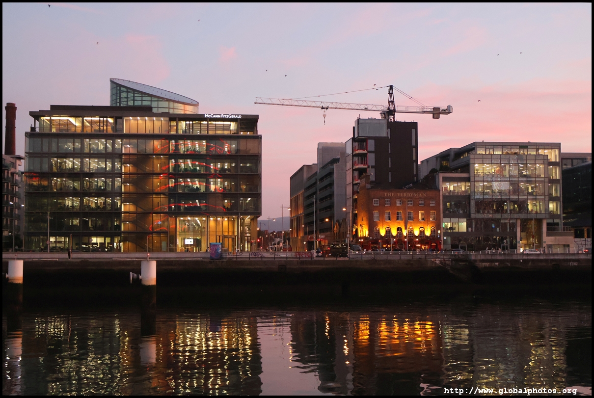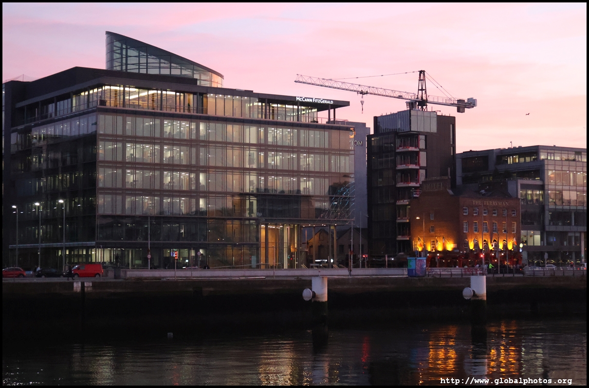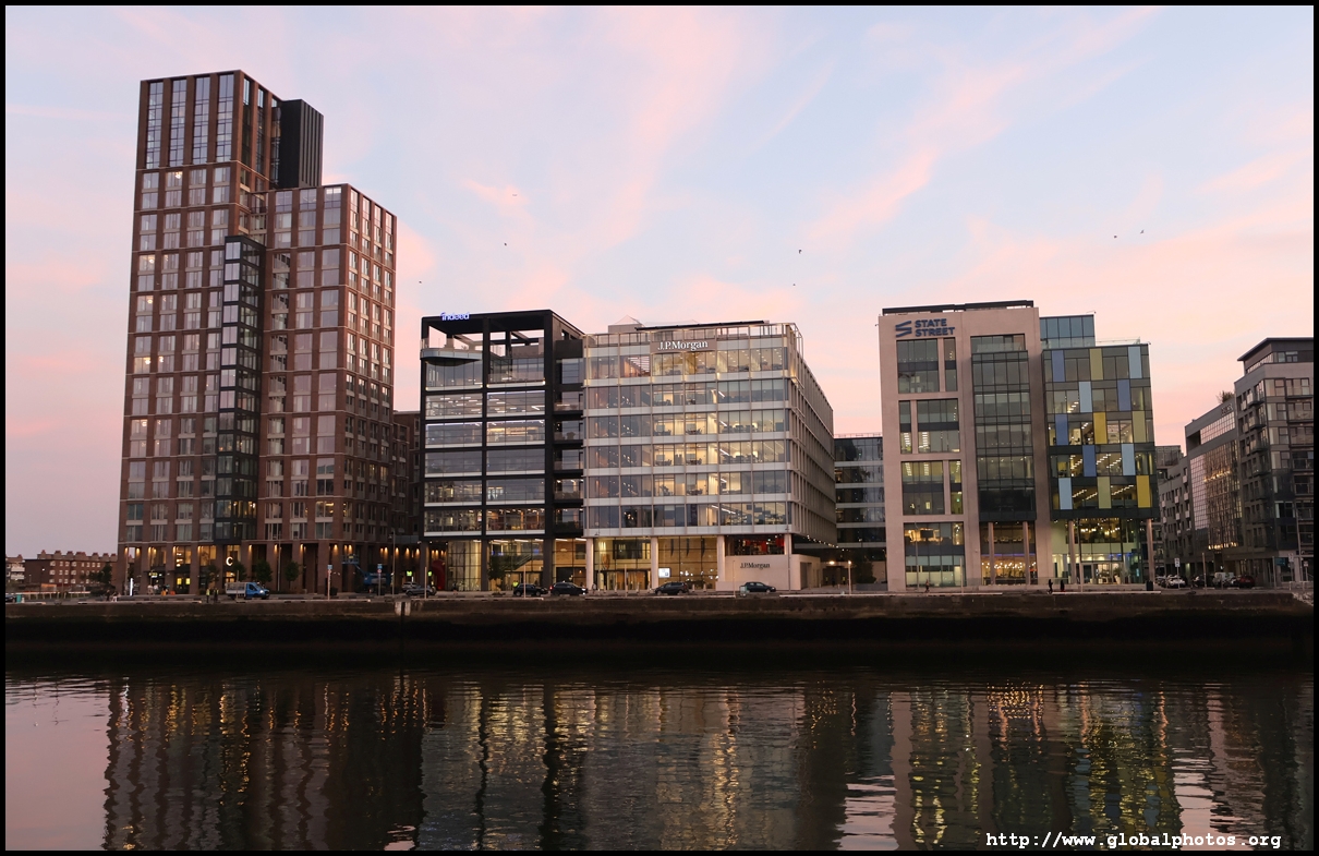 A nice waterfront promenade runs along the River Liffey's northern banks, commanding a view of the financial institutions on the other side.