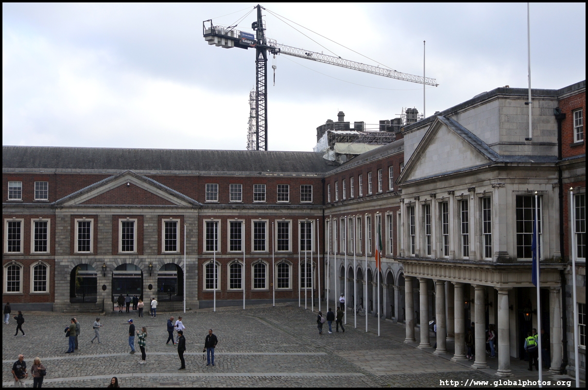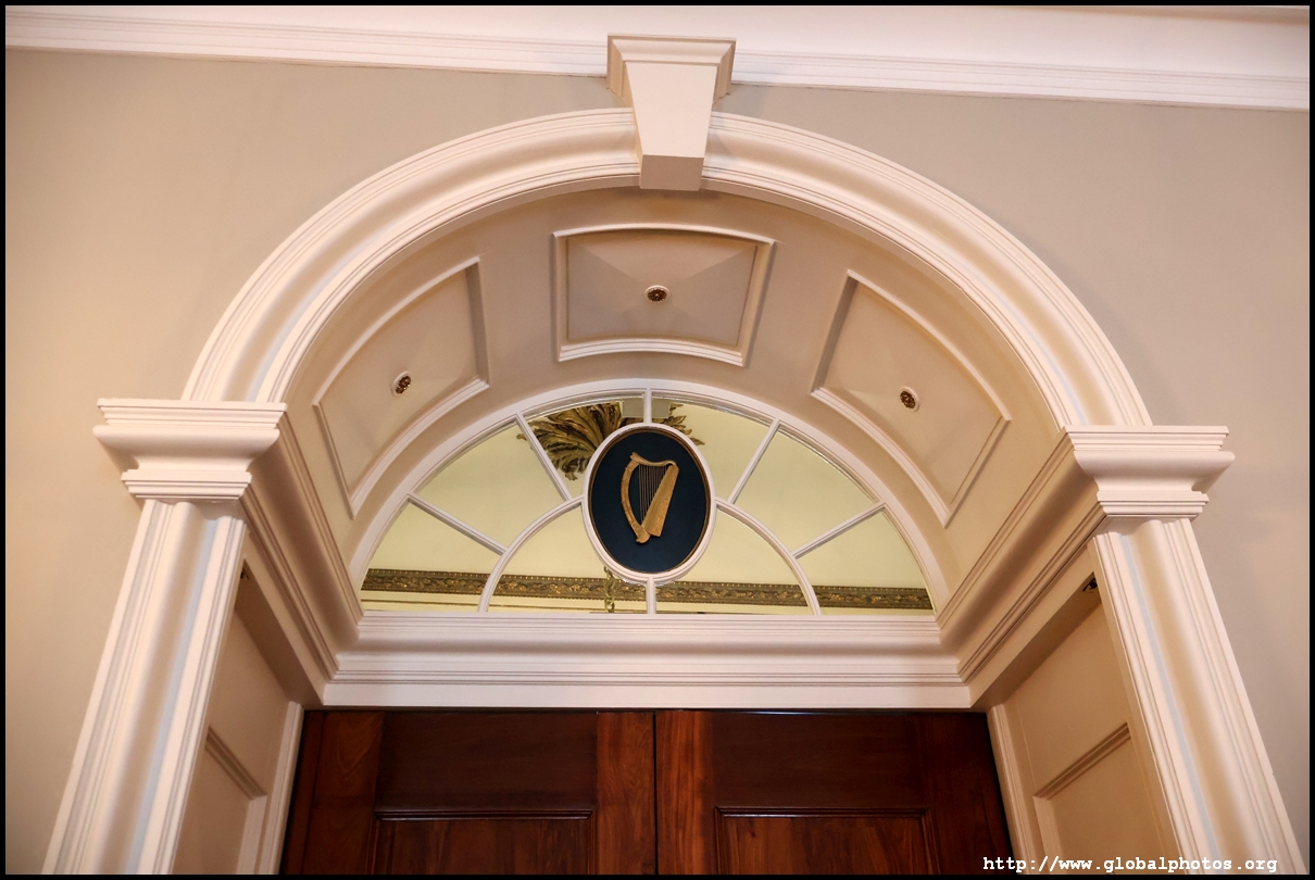 The castle's history dates back to the early 13th century when a structure was built on top of a Viking settlement. It was a residence for the Viceroy, the English monarch's representative in Ireland. Destroyed by fire in 1684, it was rebuilt as a Georgian palace in the mid-18th century.Today, the building is used for state ceremonies, including hosting foreign dignitaries and the presidential inauguration. Self-guided tours cost 8 euros and require pre-booking online with a set time slot. While I saw people walk in to buy tickets, advance bookings are quite straight forward and I picked the first slot available at 10am to avoid the crowds. There is a web audio guide you can access on your phone to guide you room by room. The grand staircase was built in 1749 with a cantilevered structure, giving an impression that it's floating. The future president would walk through this route en route to his/her inauguration. At the top of the stairs is the harp, an Irish symbol.