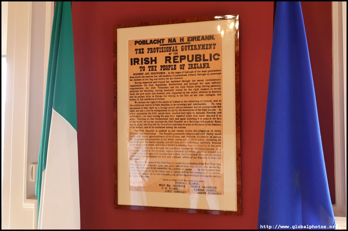 The James Connolly Room is dedicated to one of the leaders of the 1916 Easter Rising, which was a failed rebellion against English rule. James believed Irish independence was only possible by taking up arms, but the prevailing opinion at the time was against violence as World War I was under way and the Irish were promised autonomy after the war. At the time, the castle was a military hospital where James stayed as both a prisoner and patient, although he was eventually tried and executed. A copy of the Irish Proclamation of Independence hangs in this room, declaring equal rights to both men and women.
