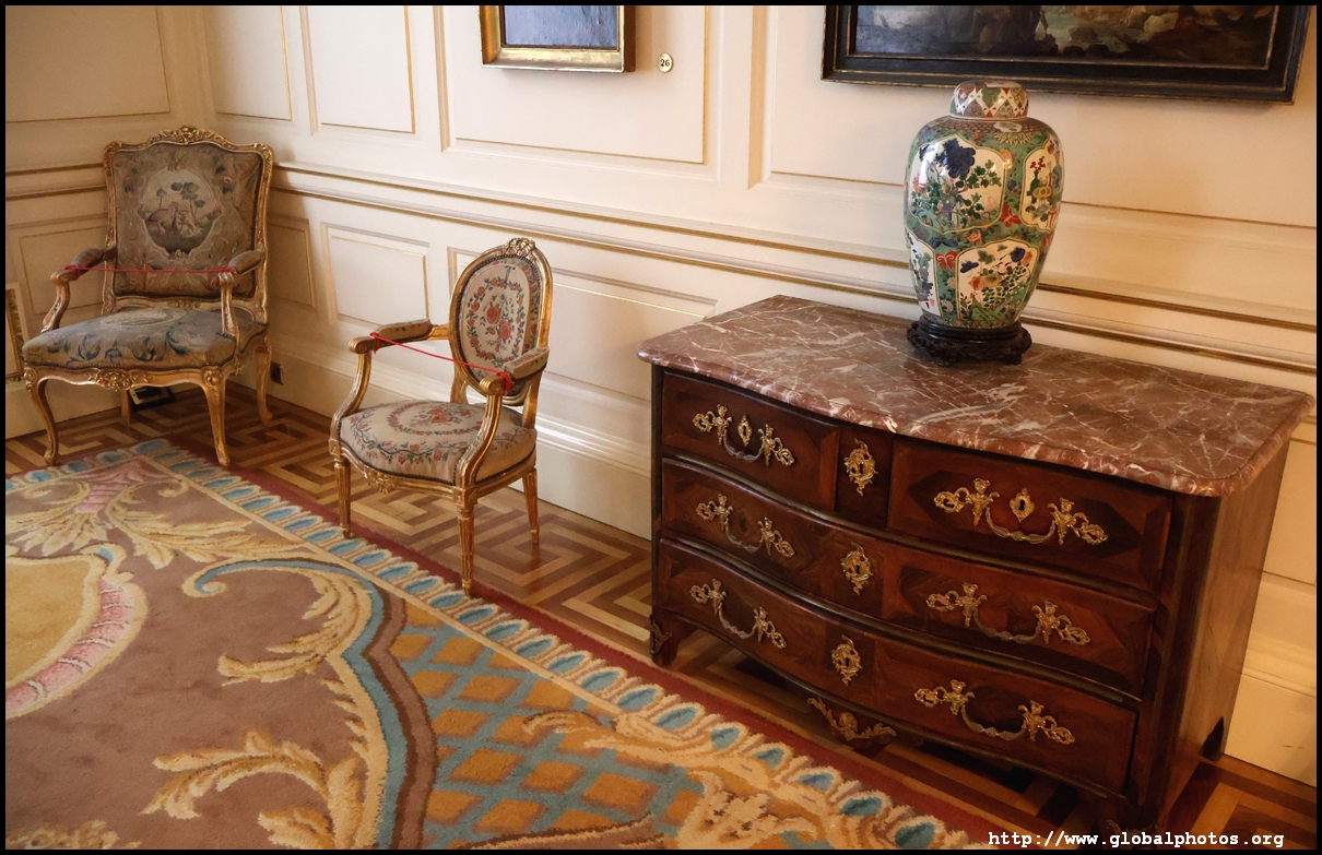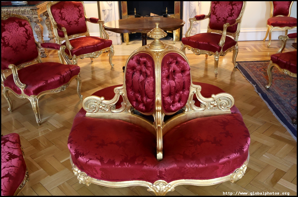 The Drawing Room was typically used by the ladies after dinner. During royal visits, guests were received here and used extensively during the party season from February until St. Patrick's Day. Young ladies were presented to the Viceroy here and further introduced to future husbands. This room was also destroyed by fire and re-built with a lot of French-style furniture.