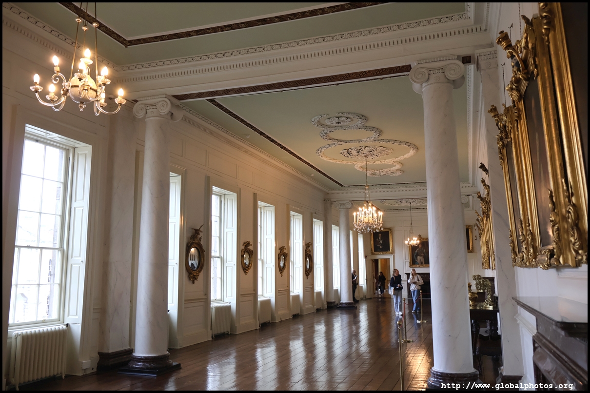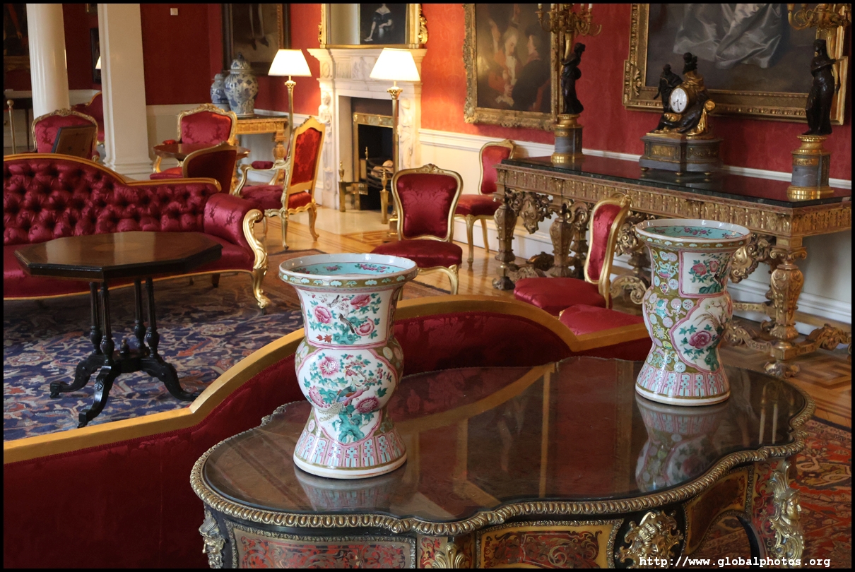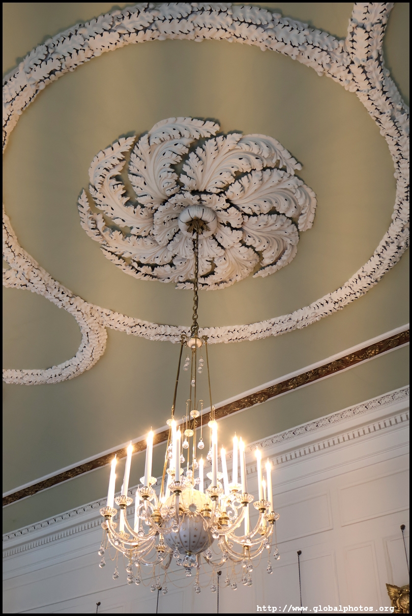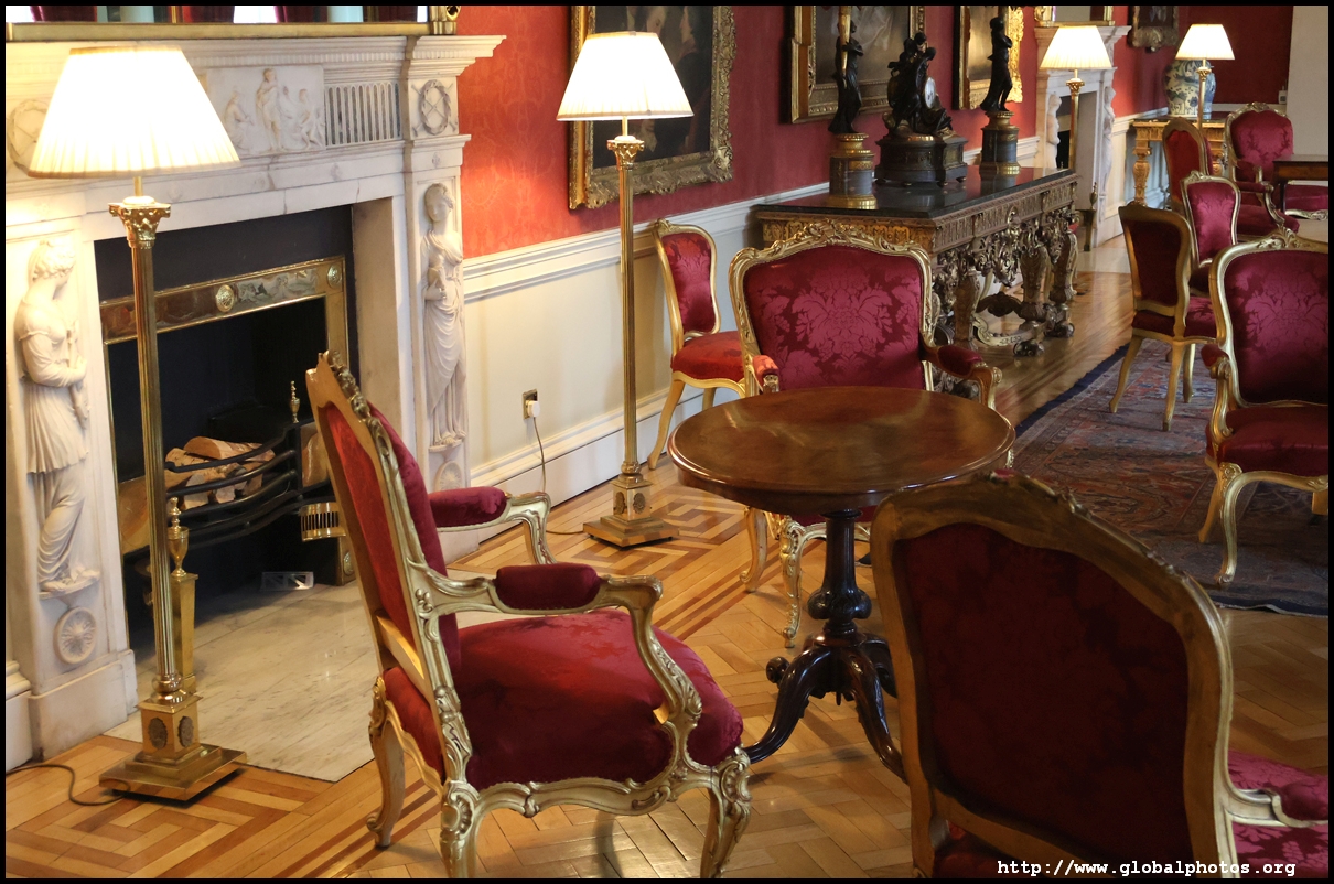 The oval-shaped Wedgewood Room is named after the blue and white scheme from Wedgewood pottery and was completed in 1777. It later became the billiard room in 1836 when a 85 pound billiard table was bought.