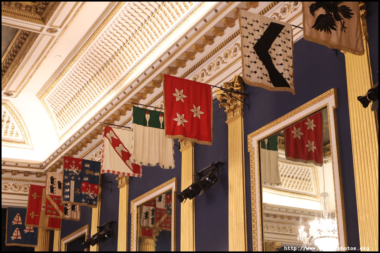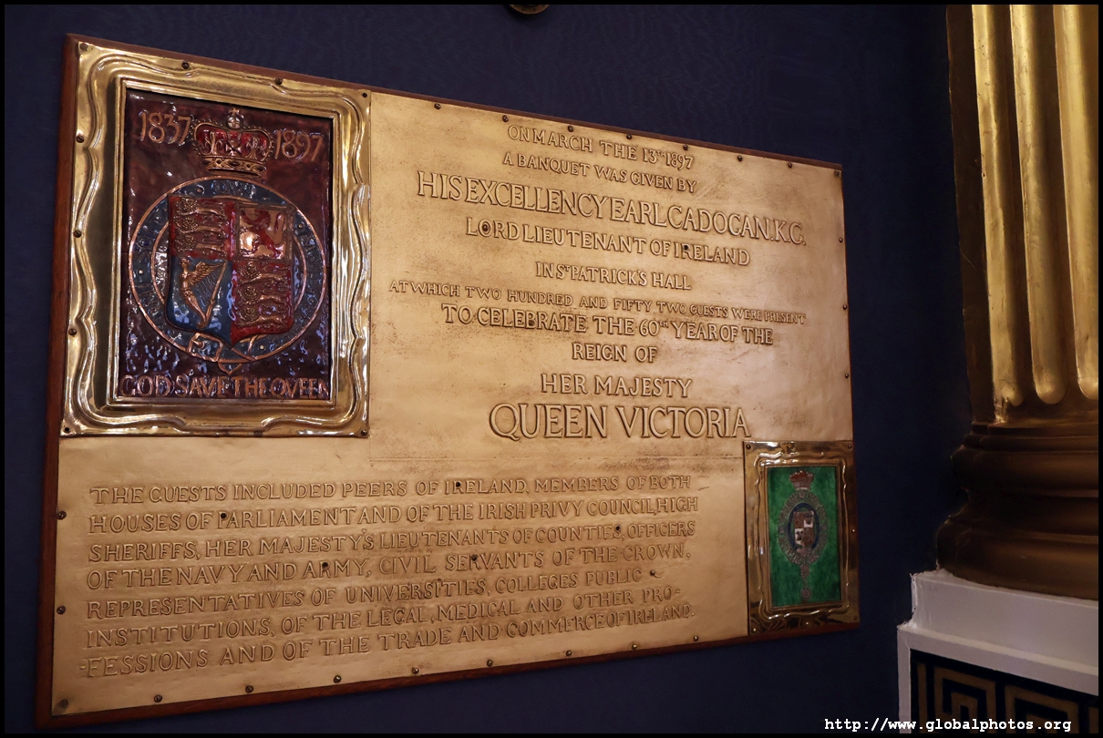 St. Patrick's Hall is the largest room and was originally used as a ballroom in the mid-18th century and a meeting place for the Knights of St. Patrick. Their flags still line the walls. Today, it is used to inaugurate the president, who has a term of 7 years.