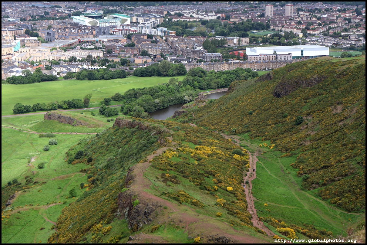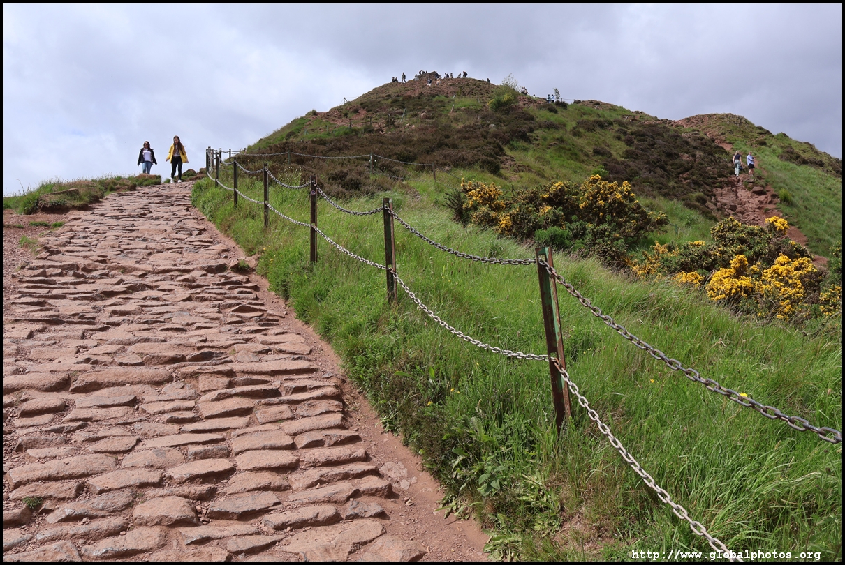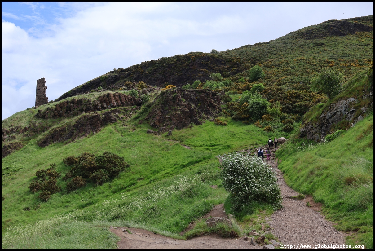 At the intersection, there is a path down to Dunsapie Loch where there is a parking lot. If you have your own wheels, this is the easiest and fastest way to go up Arthur's Seat.