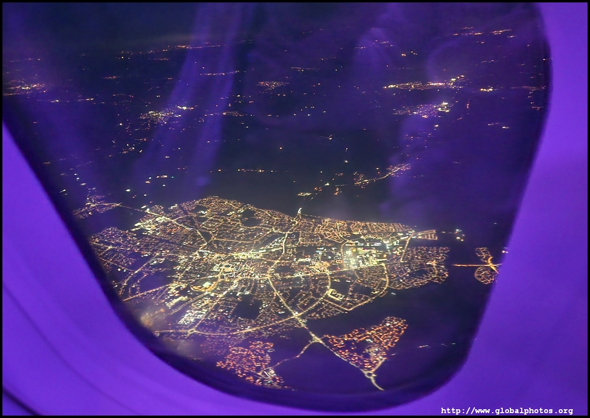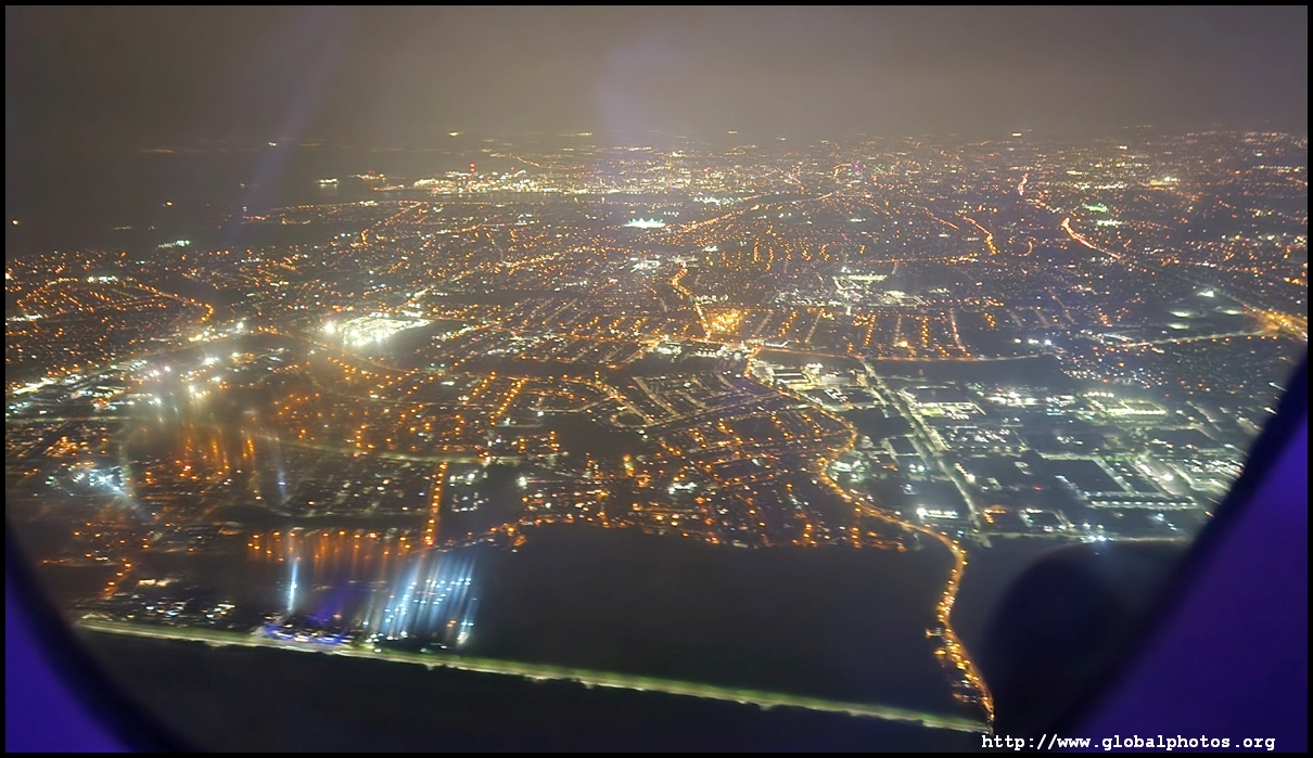 The previous flight to London was boarding at the next gate when I noticed a plane pull into my gate and passengers disembarking. By now, it was almost the flight closing time on my boarding pass - less than half hour to go. I was expecting a slight delay but surprisingly, we were able to board not long after and everything finished right on the dot at 8:15pm, the departure time, and the full flight pushed back 4 minutes later. The cockpit announcement noted a 45-50 minute journey time and we took off towards the east at 8:35pm.