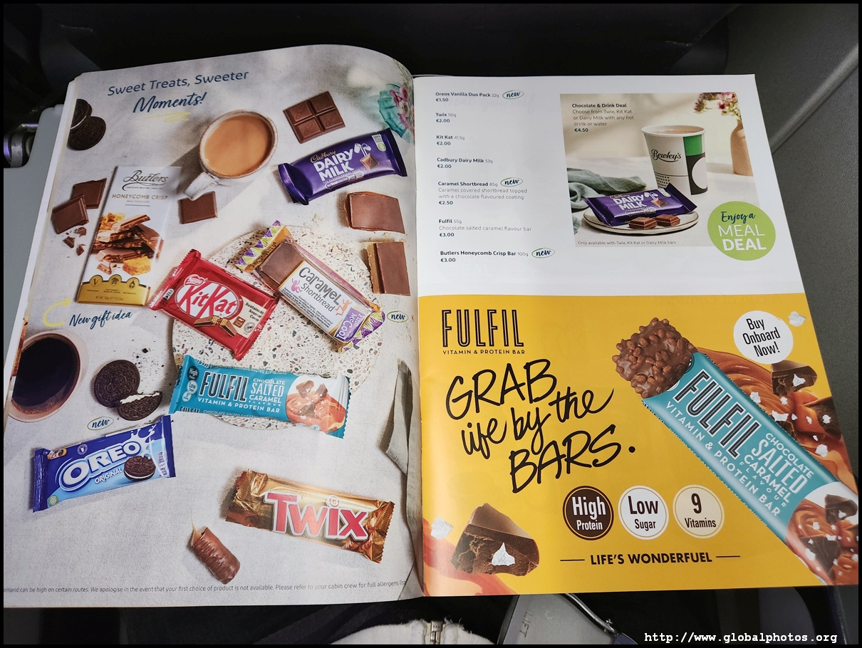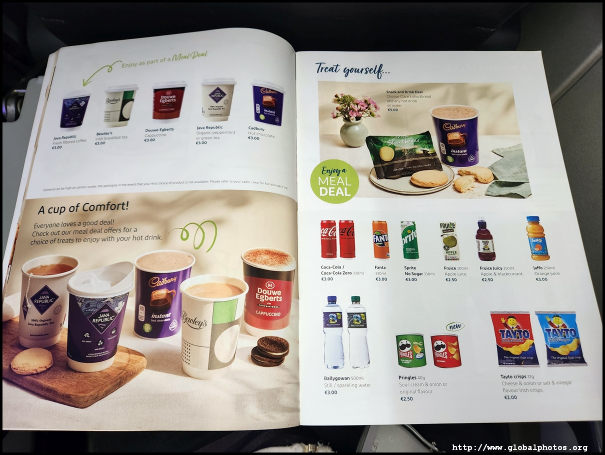 The crew came by to serve drinks and snacks for purchase and there was nothing free distributed. Checking out the paid food selection, prices are not too bad and in-line with other airlines.