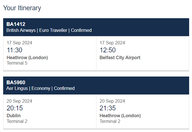 Flying within Europe on a traditional carrier isn't so much different than a low-cost airline, although the choice of airports might be better. For Dublin, it makes no difference as Ryanair also uses the main airport. Nevertheless, the fare was reasonable at about 140 pounds roundtrip (with the inbound into Belfast), which included 1 checked bag, and the flight arrived on time. BA had offered a small bottle of water and a snack for free, so is a notch better although it's a slight divergence given the 2 airlines are part of the same IAG family.