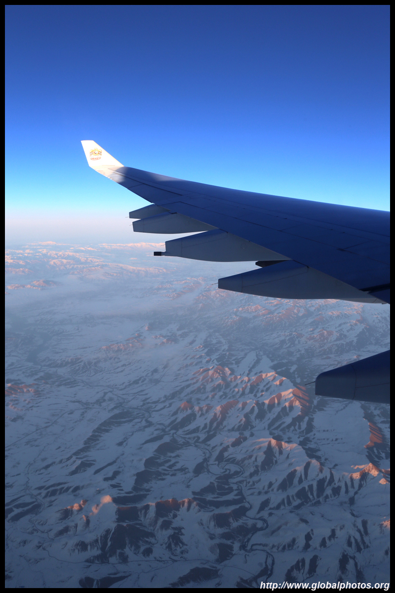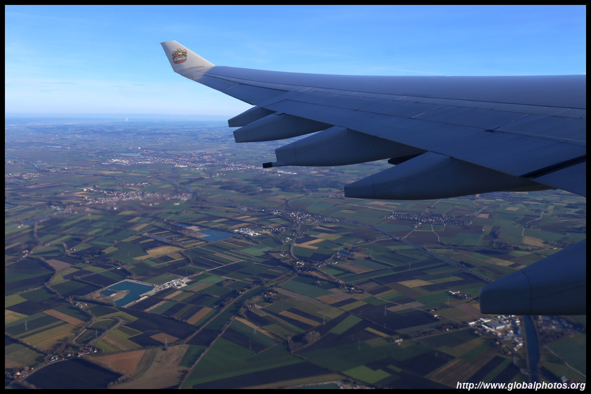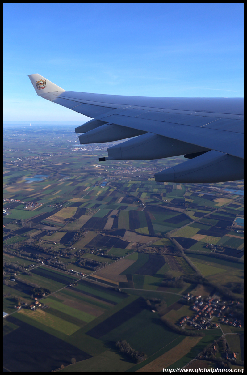 With the markings of the colourful de-icing liquid still dripping, we set off into a sunny sky.