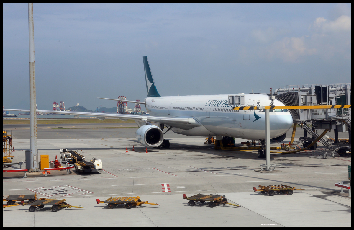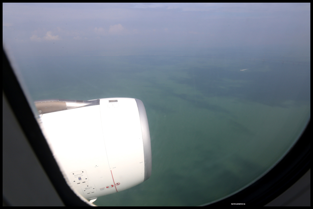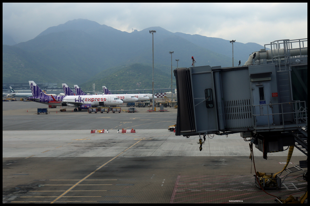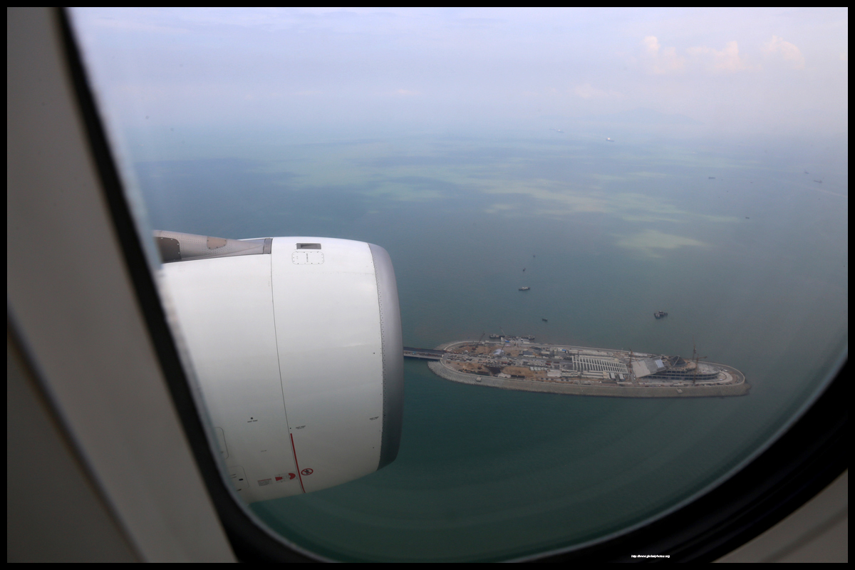 We had to loop around a bit in a holding pattern before we could finally touch down. Hong Kong's airport is getting quite busy nowadays and these types of holds are becoming increasingly common.