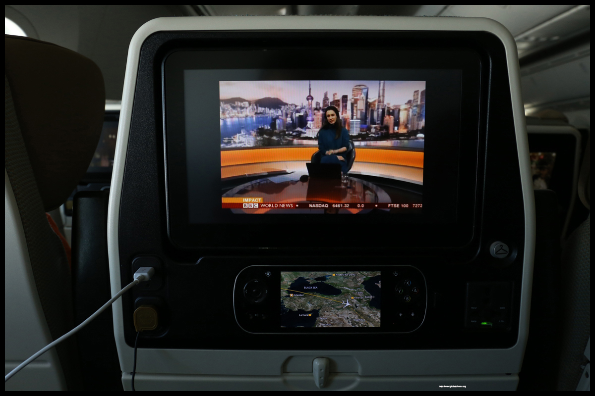 The Dreamliner's PTV screen is quite large with a phone-like remote mounted below, which can play the flight map while I watch the entertainment content above. I was particularly interested in the live TV option, which had quite a good selection of channels.