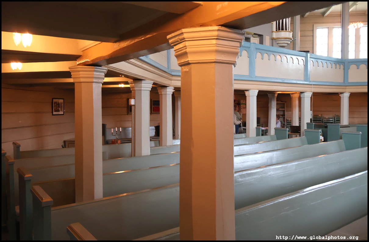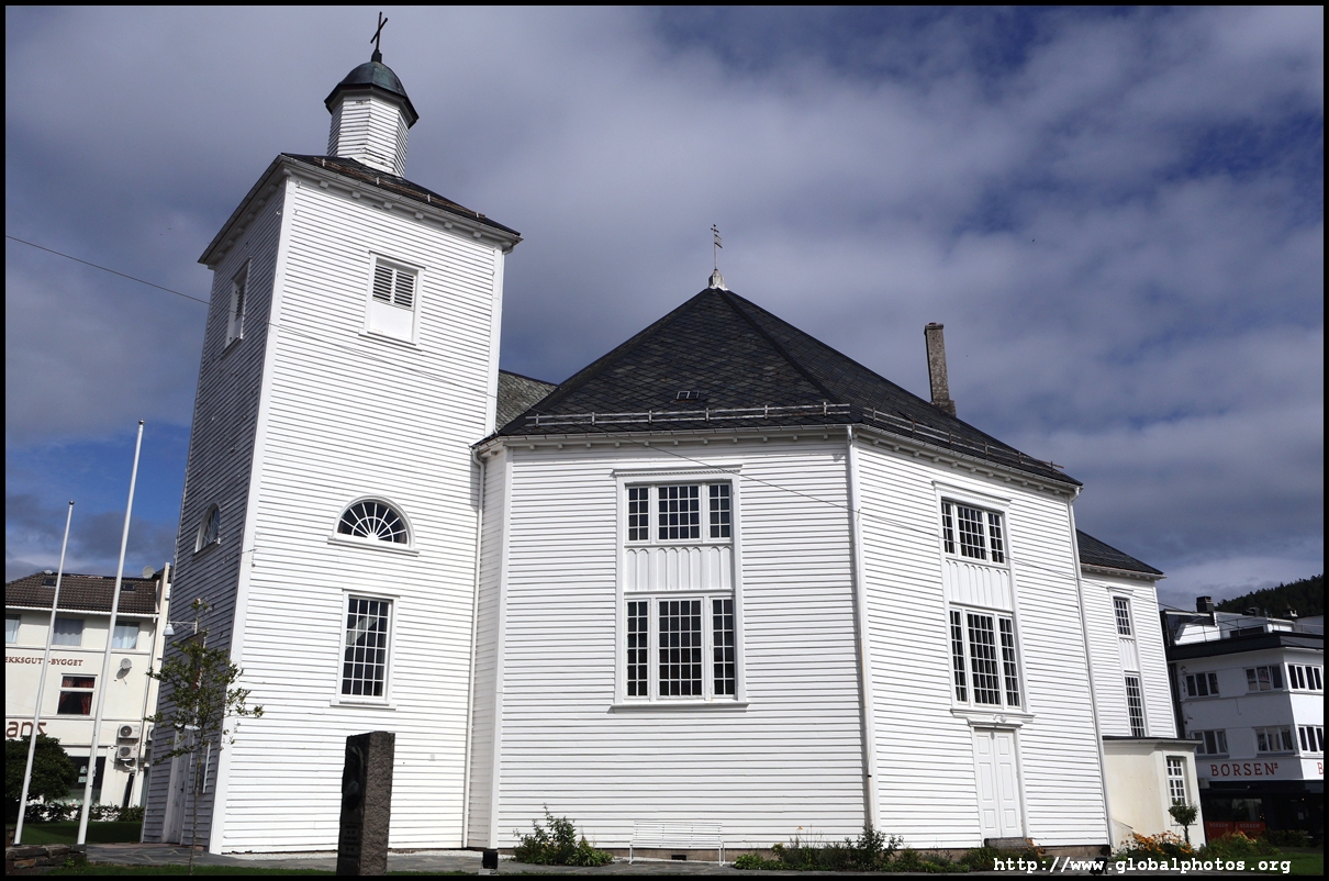 The main church was designed by H.F.D. Linstow, who also designed the Royal Palace in Oslo. Completed in 1832, the octagonal wooden church is right in the middle of the shopping street.
