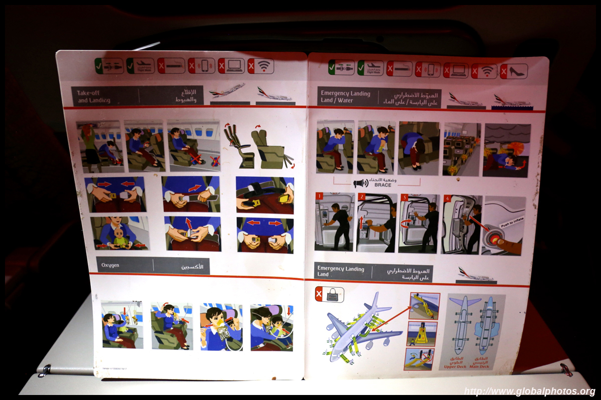 Here in a full cattle class, you will see a major difference between Emirates' flight attendants and the Asian carriers. They don't come around to do a safety check before take-off, and didn't do the same for landing as well. Many didn't speak English as a first language.