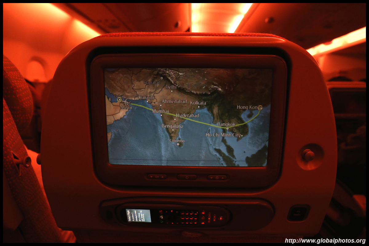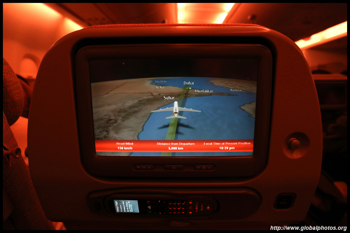 The long route west through Dubai gets quite painful and takes almost the same time as getting to Australia from HK. However, the flight deck announced a surprisingly short 8.5 hour air-time tonight against the headwind.