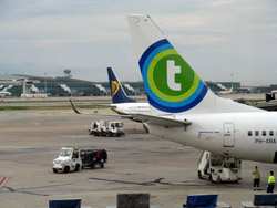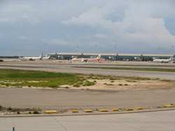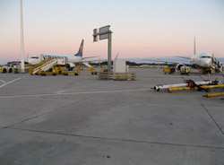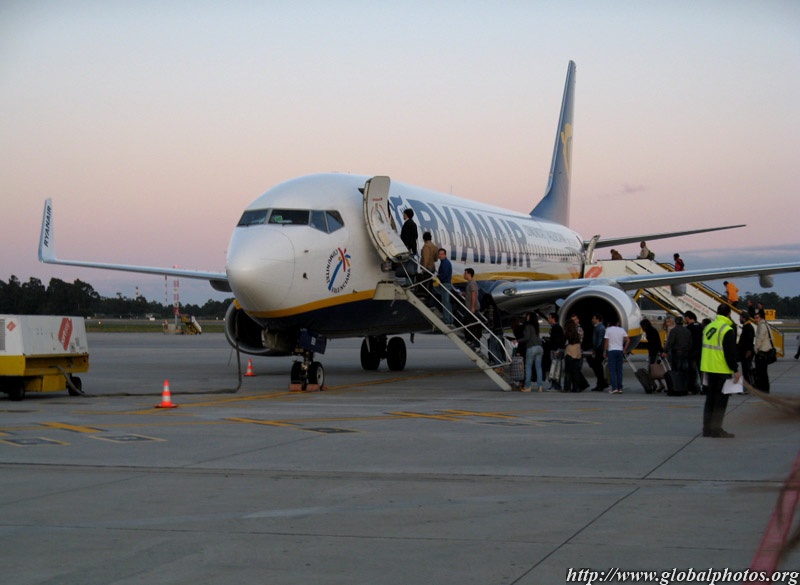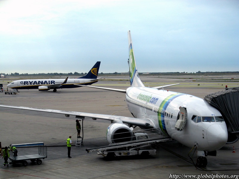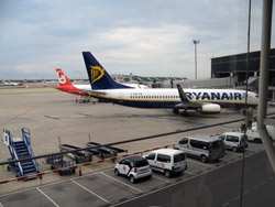 Gates for the discount carriers were off to one side and downstairs from the rest of the terminal. It was a very busy morning already here as several Ryanair flights were ready for boarding. After clearing the boarding pass and hand carry checks, we stood outside along the edge of the terminal building awaiting final clearance to head to the aircraft.