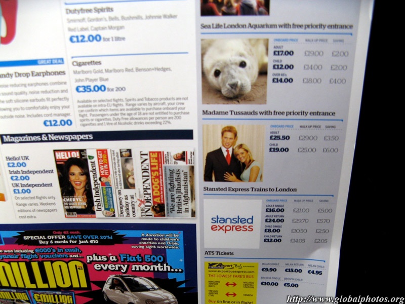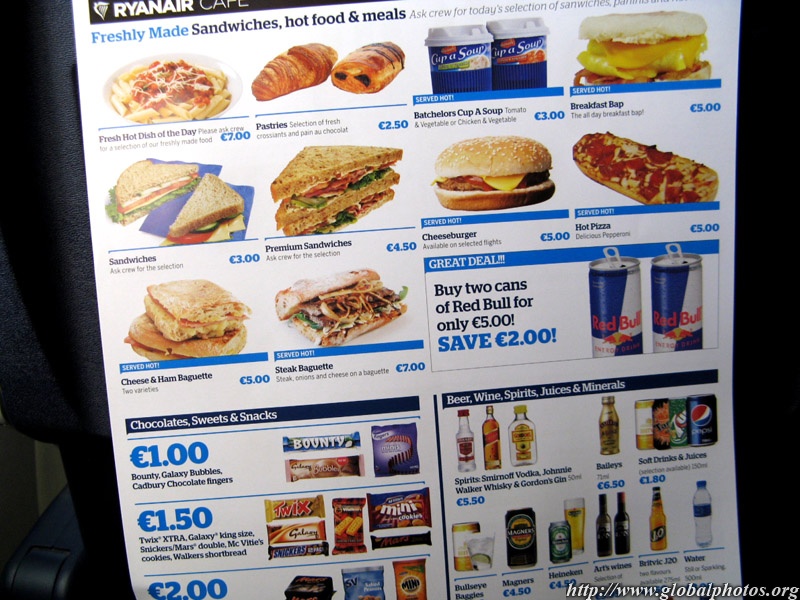 Meal cards were distributed along with the Ryanair in-flight magazine. With no seat pockets, many eventually ended up scattered across the cabin floor.