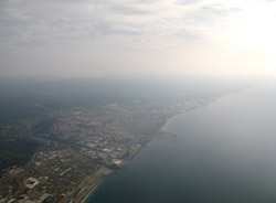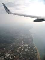 We headed out into the Mediterranean, then made a 180-degree turn to land from the east. I wished I had a window seat on the right side, which offered city views.