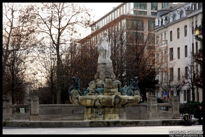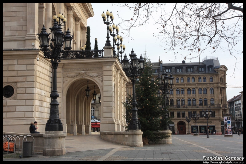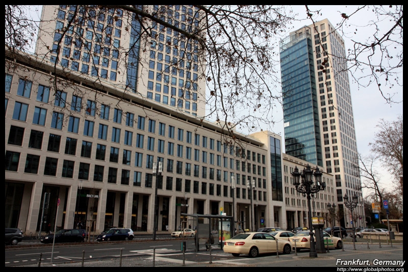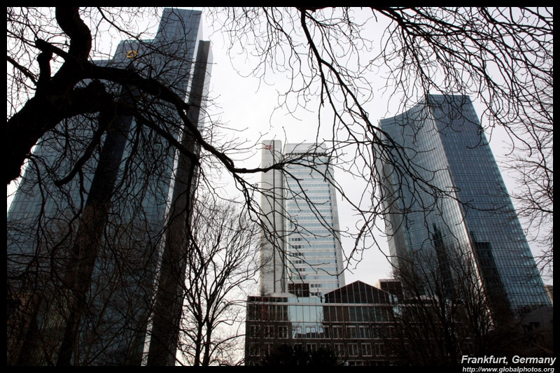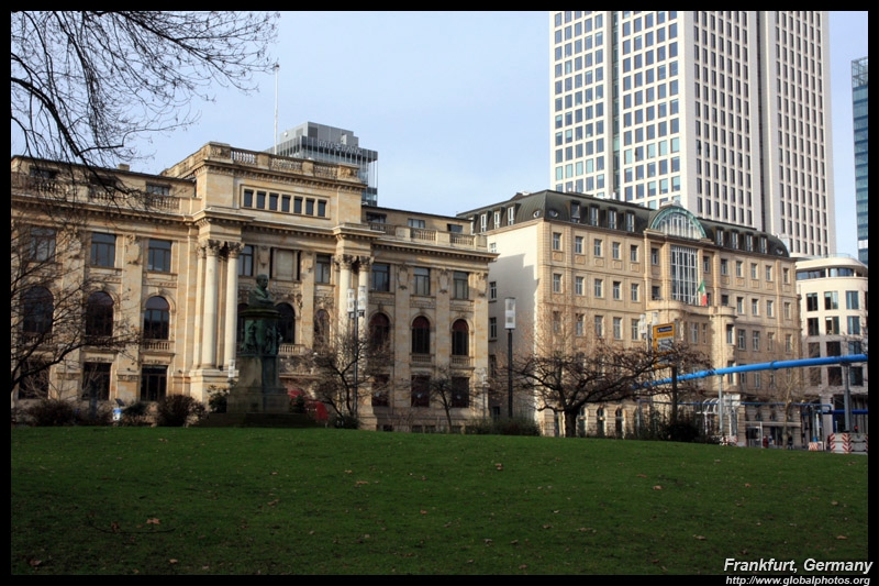 Frankfurt's skyscrapers are orderly-spaced out from each other. They are fronted by a narrow strip of parkland stretching north towards the opera house.