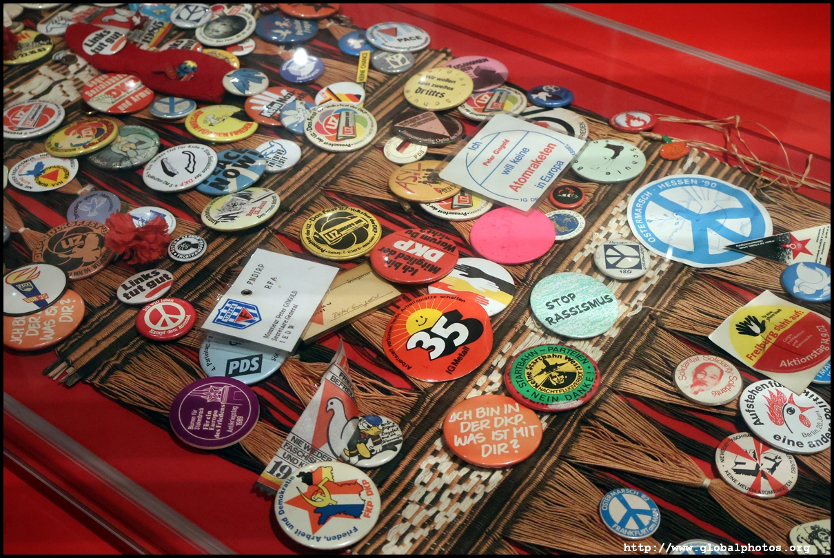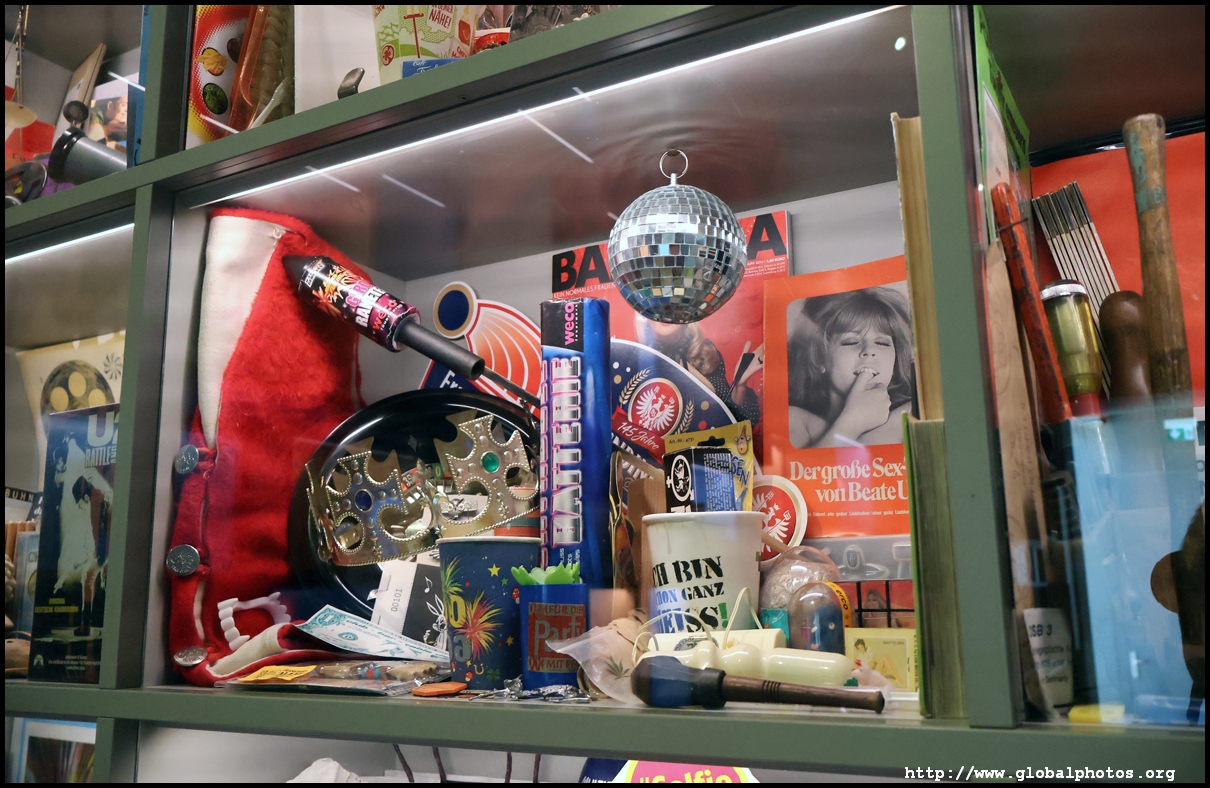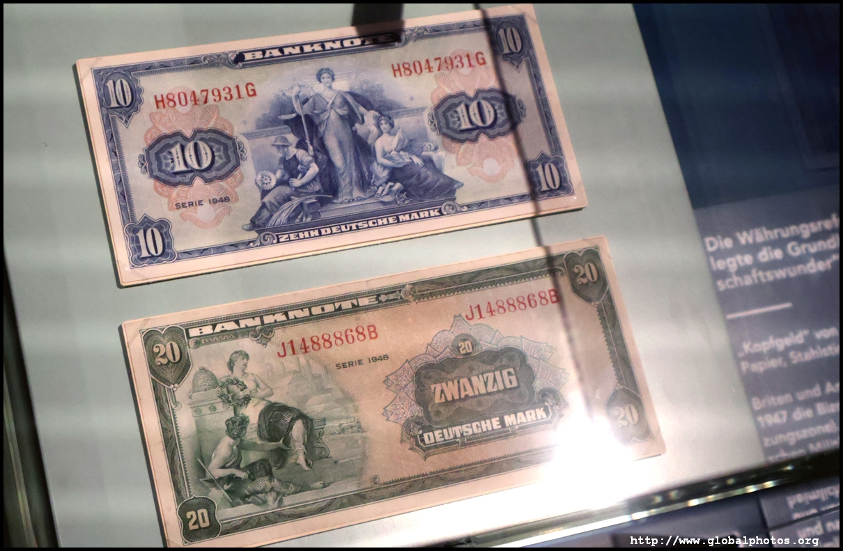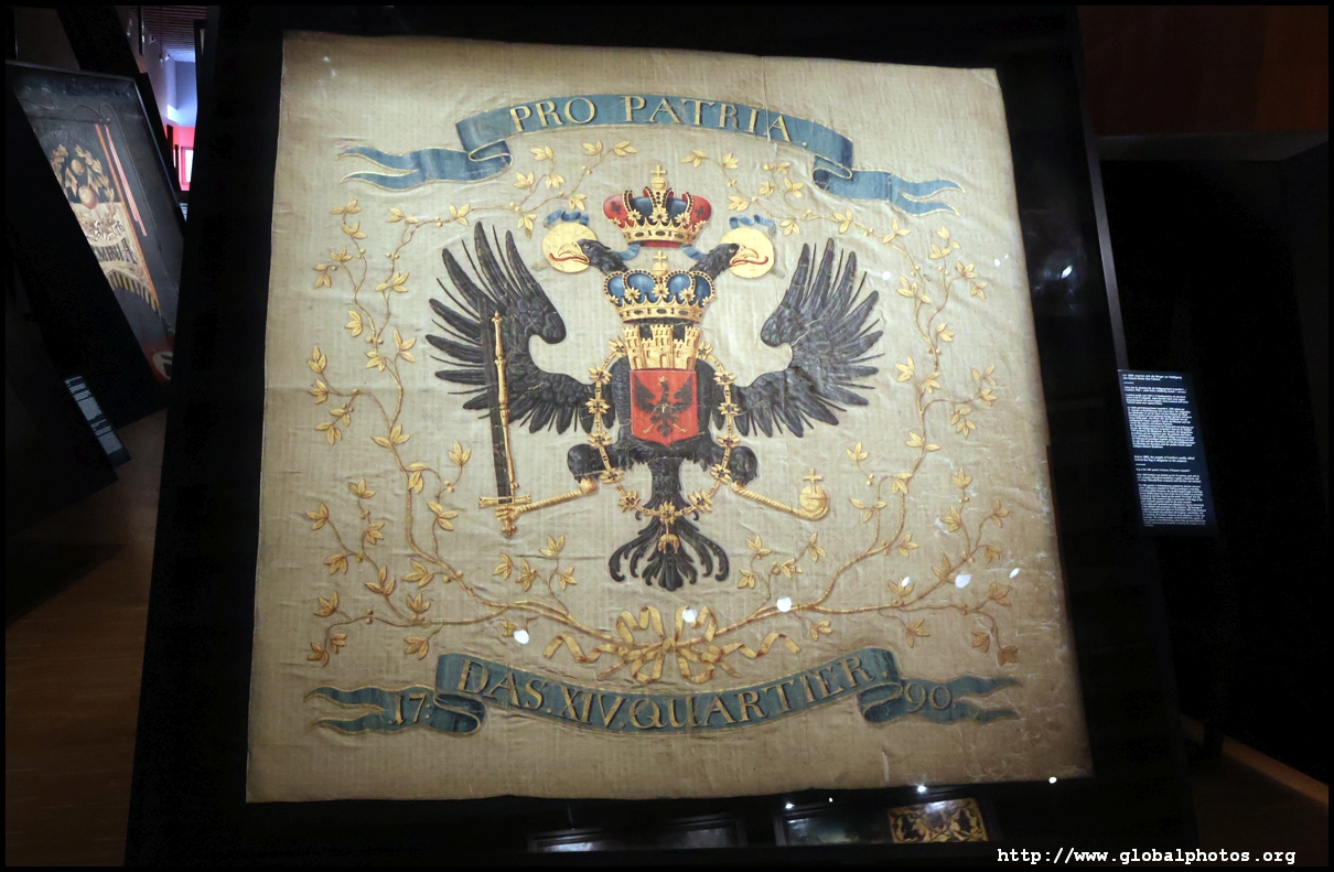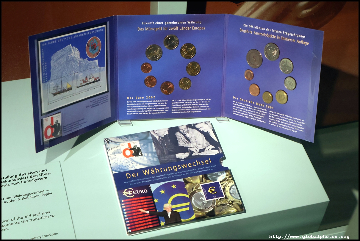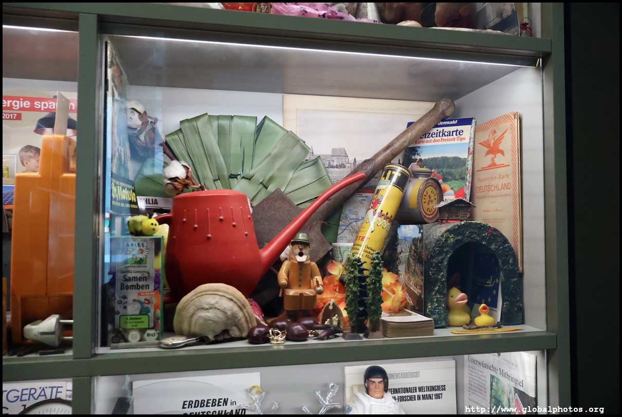 In the 1764 coronation of Joseph II, the ox was roasted for the festive banquet in the town hall. The emperor hosted a public celebration in the Romerberg with a ritual piece of the ox. On the left is the ox head that was won by the wine merchants and was donated to the museum in 1879. To the right is the bridge rooster from the Alte Brucke that dates from repairs in the 18th century, although the first written account of this rooster goes further back to 1401, marking the deepest point in the river and the spot to hold executions by drowning. The English first connected cholera and contaminated water and developed sewage systems to prevent epidemics. In 1864, Frankfurt decided to build a gravity-based system of sewers, with the waste water being directed to a newly-built sewage plant. The first sewage treatment plant in Europe opened in Franfurt in 1887. This drove a boom in the toilet business, with the item on the right imported from England. These panels were used from 1898 to 1927 at a factory to control the charge of the accumulator batteries. These are guild emblems for the "Fountain of German Crafts", which came about after Hitler awarded the city the title of "City of German Crafts" in 1935. This fountain was never fully realized due to World War II, and these pieces ended up here at the museum. These protest placards ere aimed at IG Farben's annual meetings. Holocaust survivors, antifascist organizations, and the like campaigned for proper compensation and breaking up the company, which had used forced labour at concentraton camps and their products helped kill Jews in the gas chambers. On the left is the flag of the 14th quarter. Frankfurt was divided into 14 quarters in 1614. A new flag was devised to celebrate Leopold II's coronation in 1790. This is a model of Deutsche Bank's headquarters, which consist of 2 towers reaching 155m that opened in 1985. While the bank was originally founded in Berlin in 1870, it was divided into regional banks after World War II, with the final successor based in Frankfurt in 1957. Hyperinflation in 1923 prompted cities and municipalities to print emergency money, which made things worse. The Alte Brucke directed traffic into the city and was repaired many times since the 13th century.