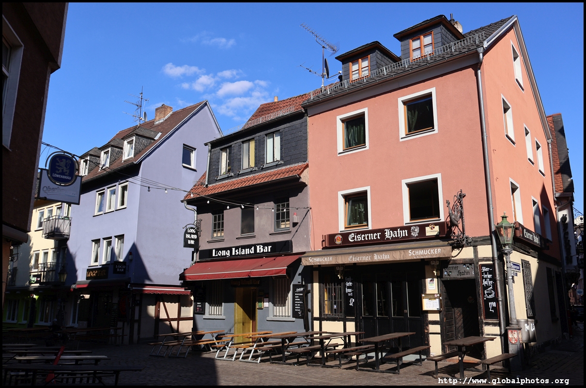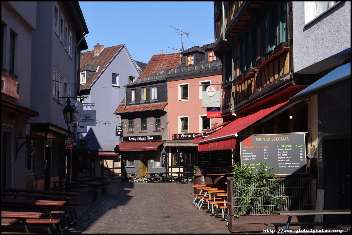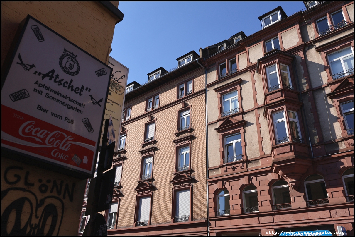 Located just south of the Main River across from the historic Old Town, Sachsenhausen's winding lanes are famous for their many taverns serving apfelwein, an apple wine. Fermented and served in a ribbed glass with a diamond pattern, this tradition is a major part of the city's heritage.
