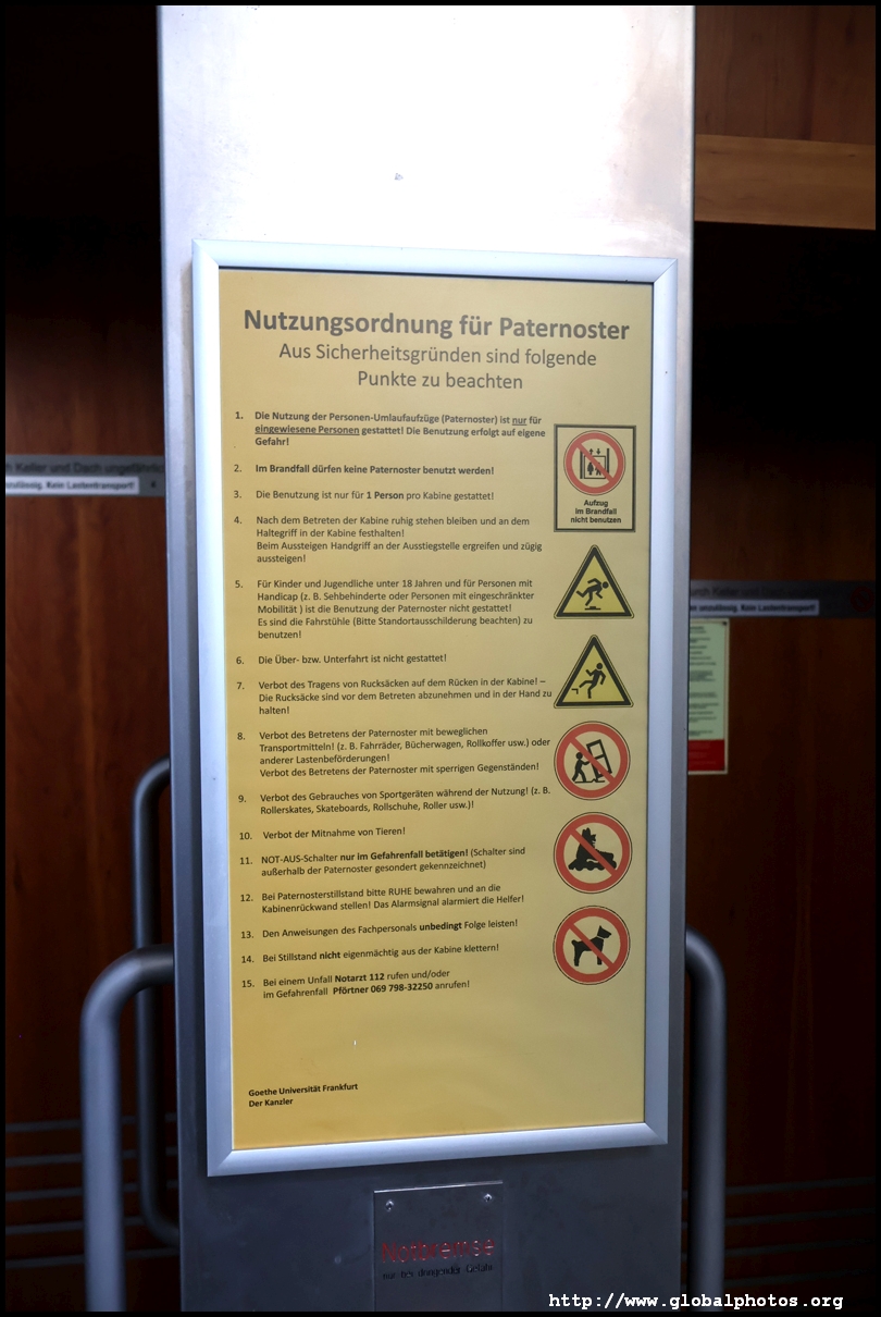 The Flemings Selection Hotel next to Eschenheimer Tor also features a Paternoster elevator. This one actually runs in a continuous fashion with one side going up and the other going down.