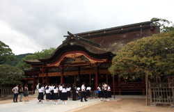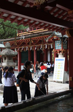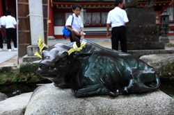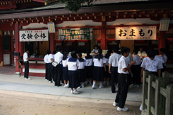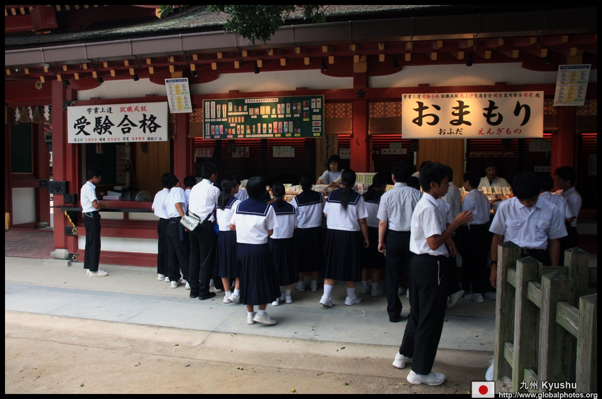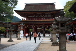Tenmangu dates from the 10th century and is favoured by students wishing for good luck on their examinations. In 909, a prominent scholar was exiled and died here, and a shrine was built in his memory.