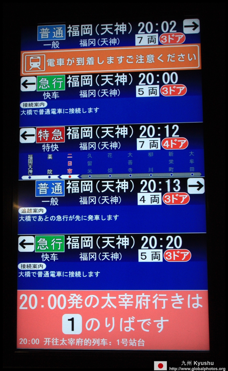 From Nishitetsu's Tenjin station, take a train to Futsukaichi station (15 minutes) and change to a local train to Dazaifu (5 minutes).