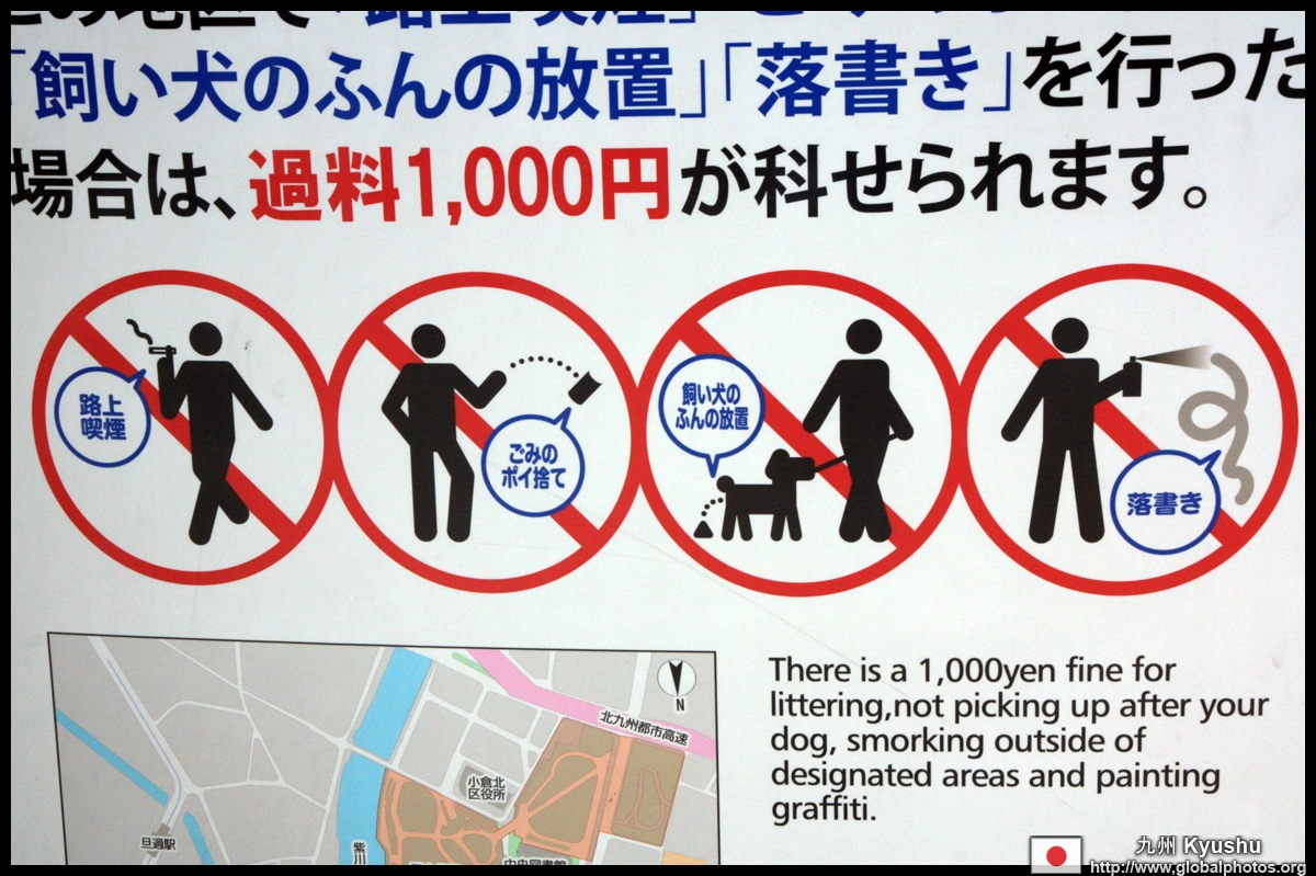 Kokura is part of Kita-Kyushu, a heavy industry and trading area. I emerge from the JR station noticing this DO-NOT-DO sign. Apparently, smoking while walking is a no-no in many parts of Japan nowadays.