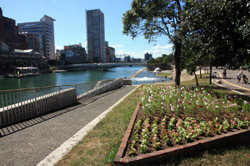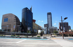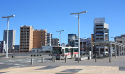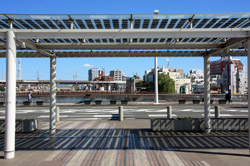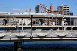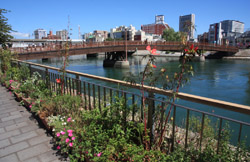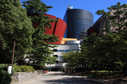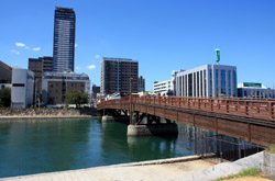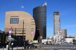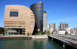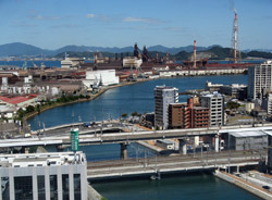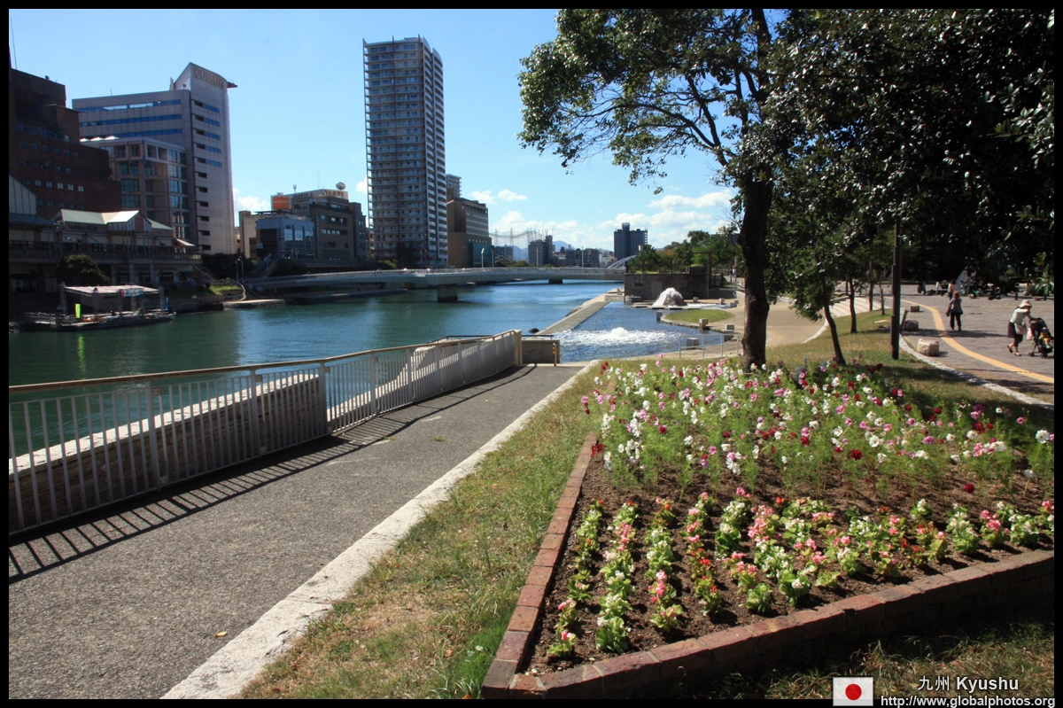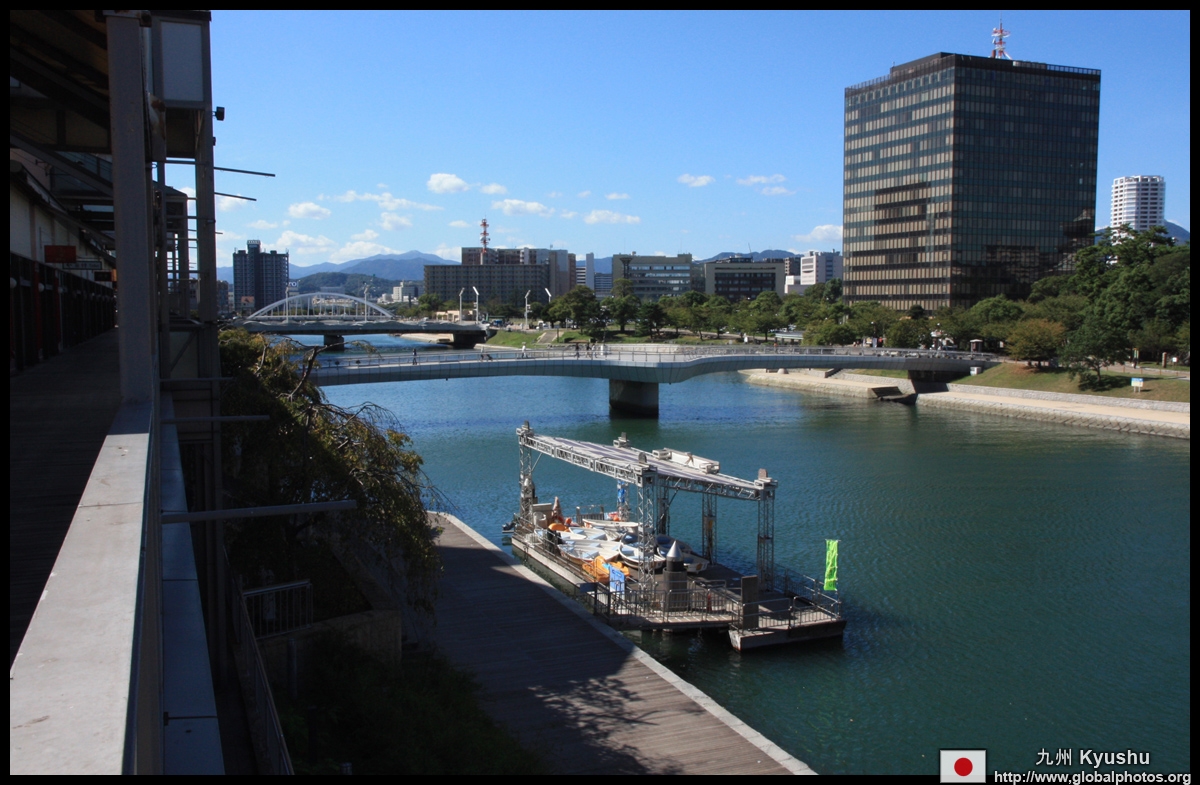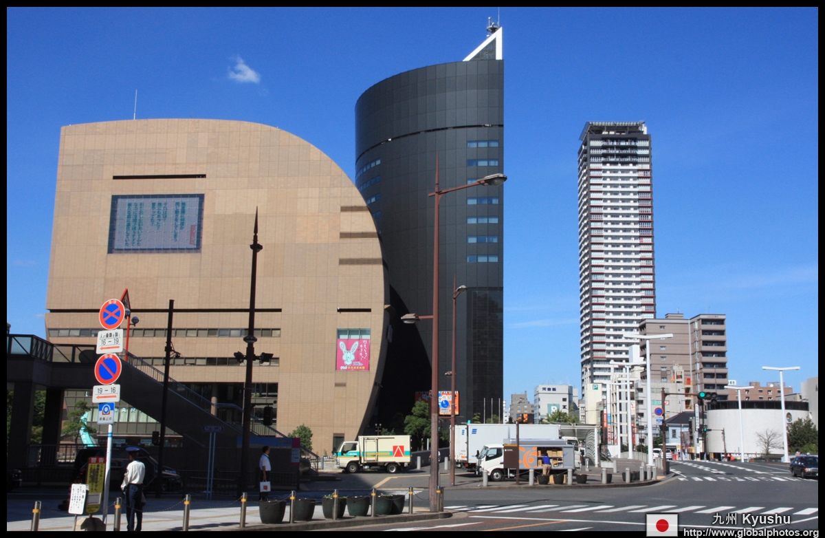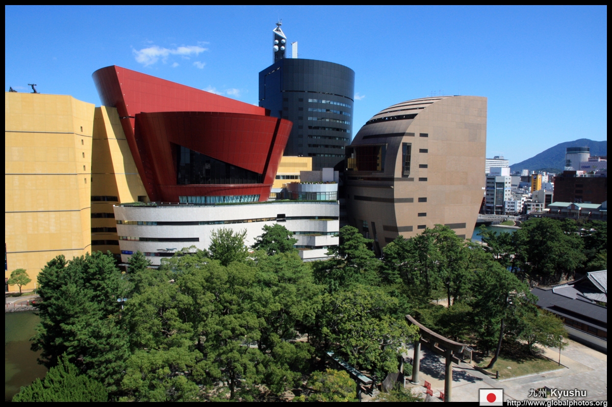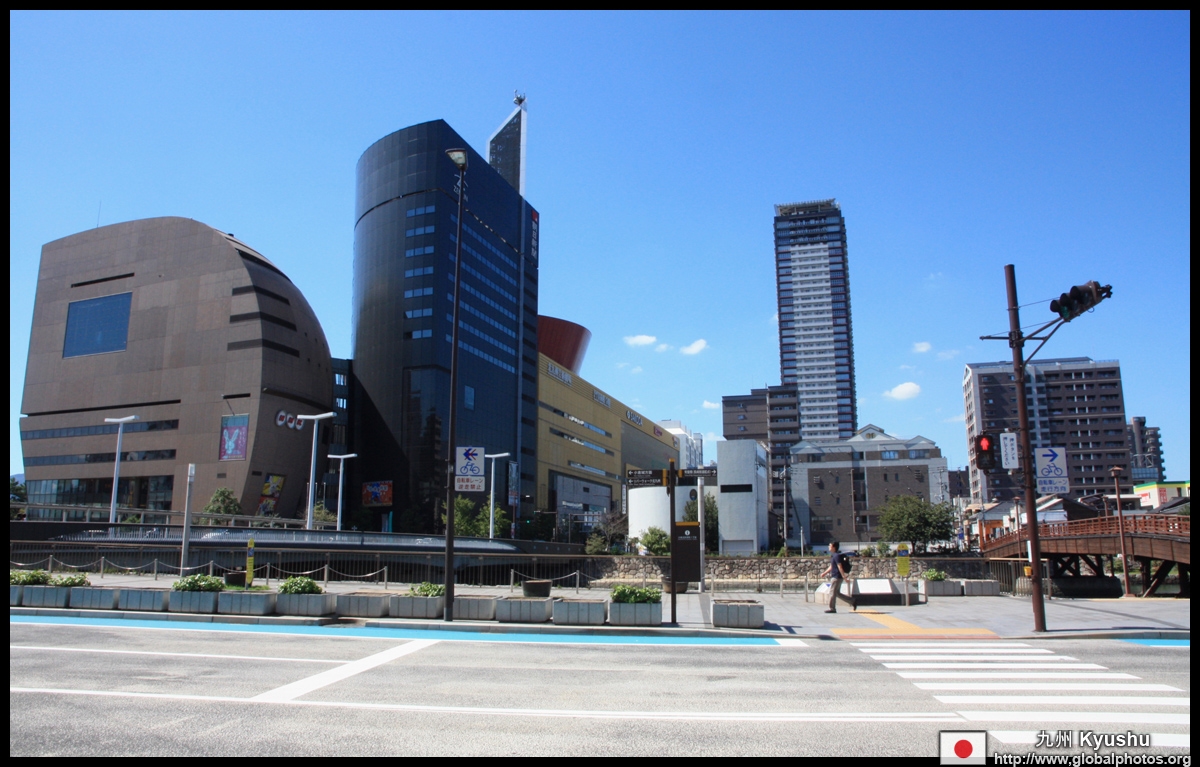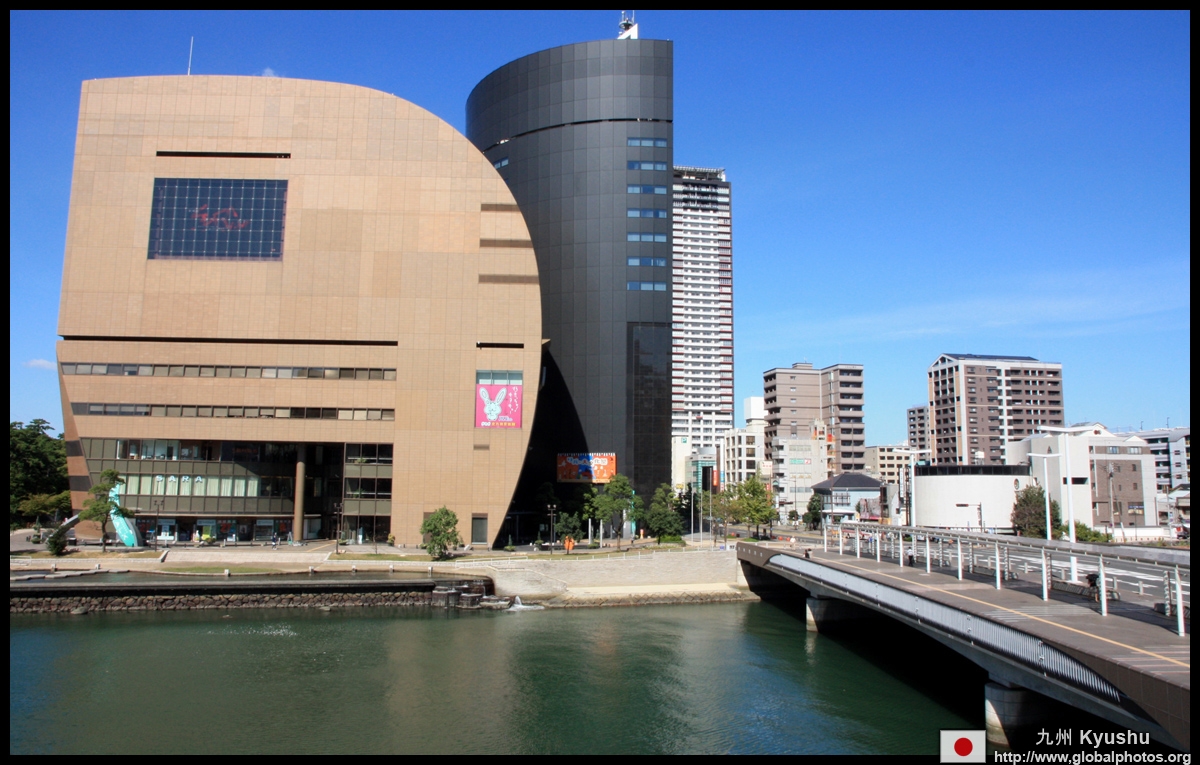 Riverwalk Kitakyushu is a cultural, art, and shopping centre consisting several buildings of different heights, shapes, and colours.