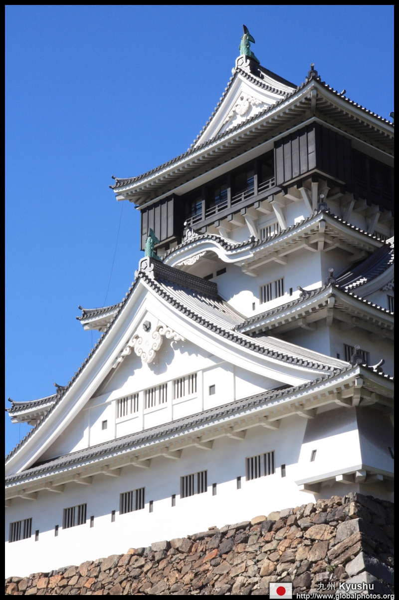 Today's Kokura Castle is a reconstruction from 1959. The original dates from the early 17th century and was destroyed by war in 1865, leaving only the stone walls and moats.