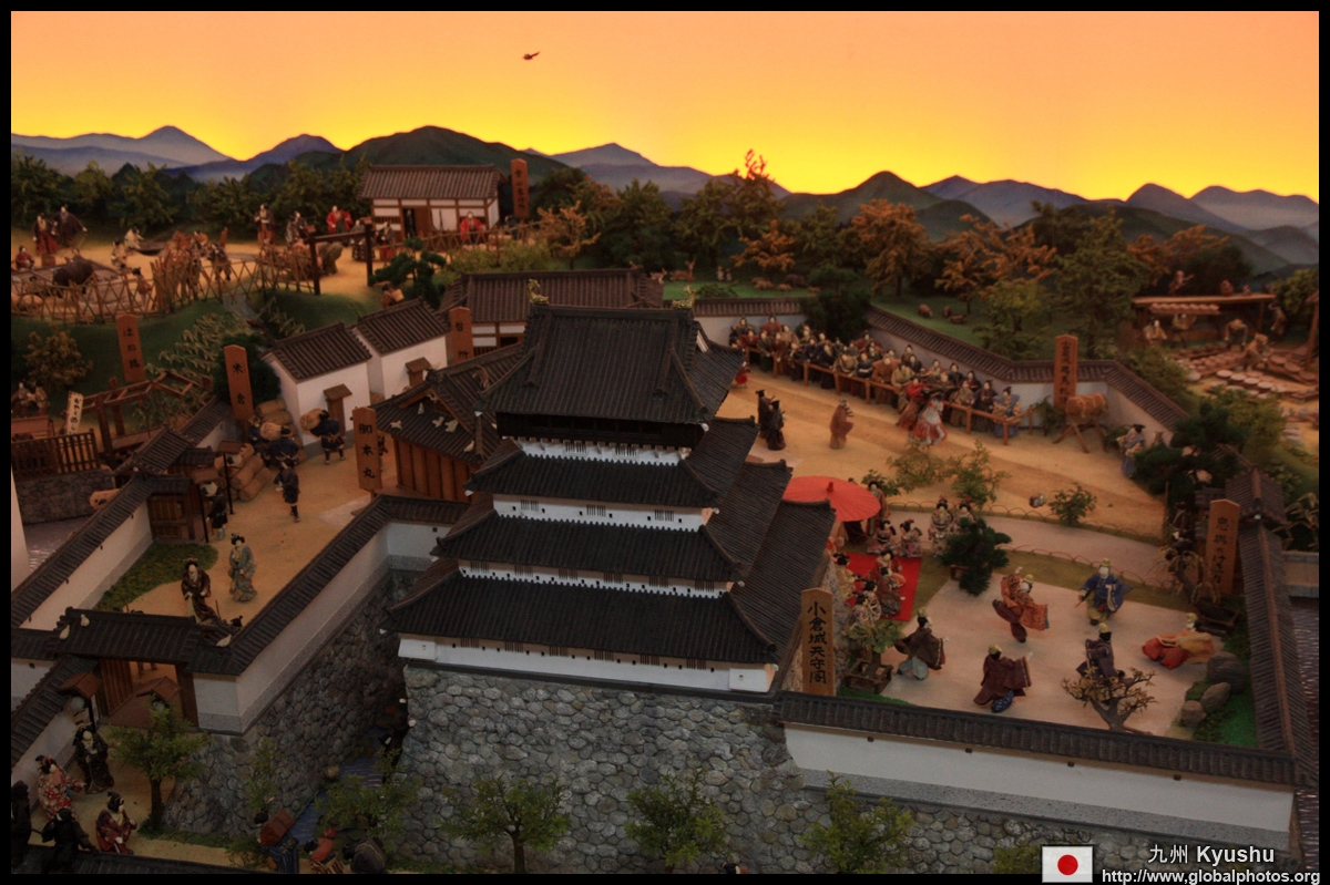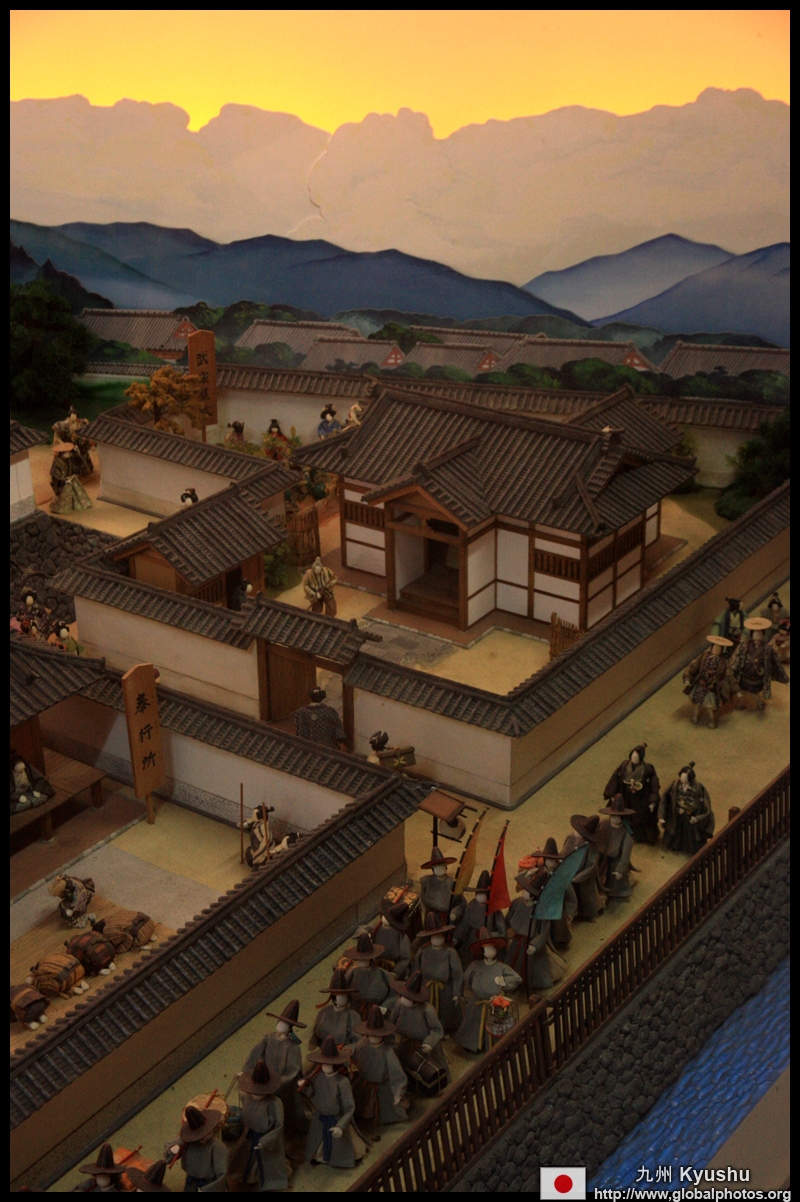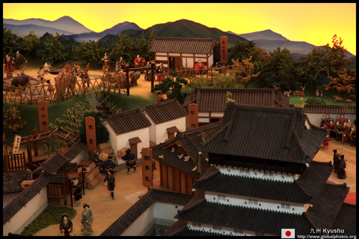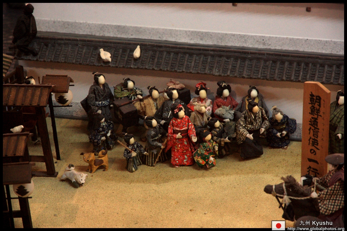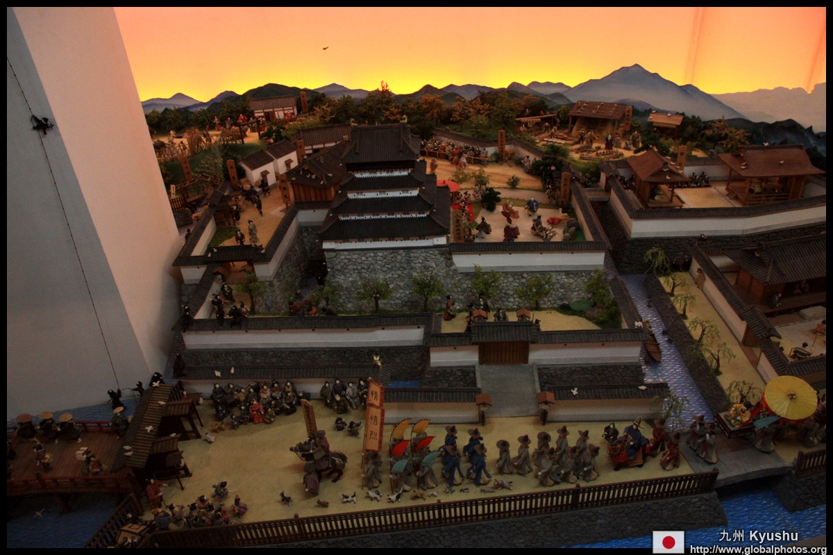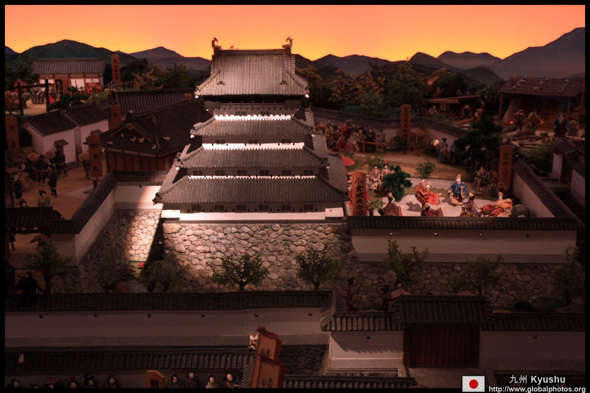 Inside, there are various exhibits, such as this model of Kokura Castle and the surrounding city. Note there are no faces on the dolls.