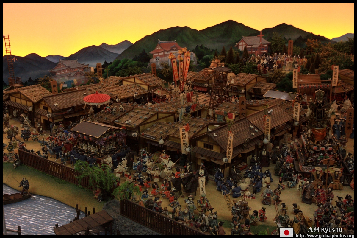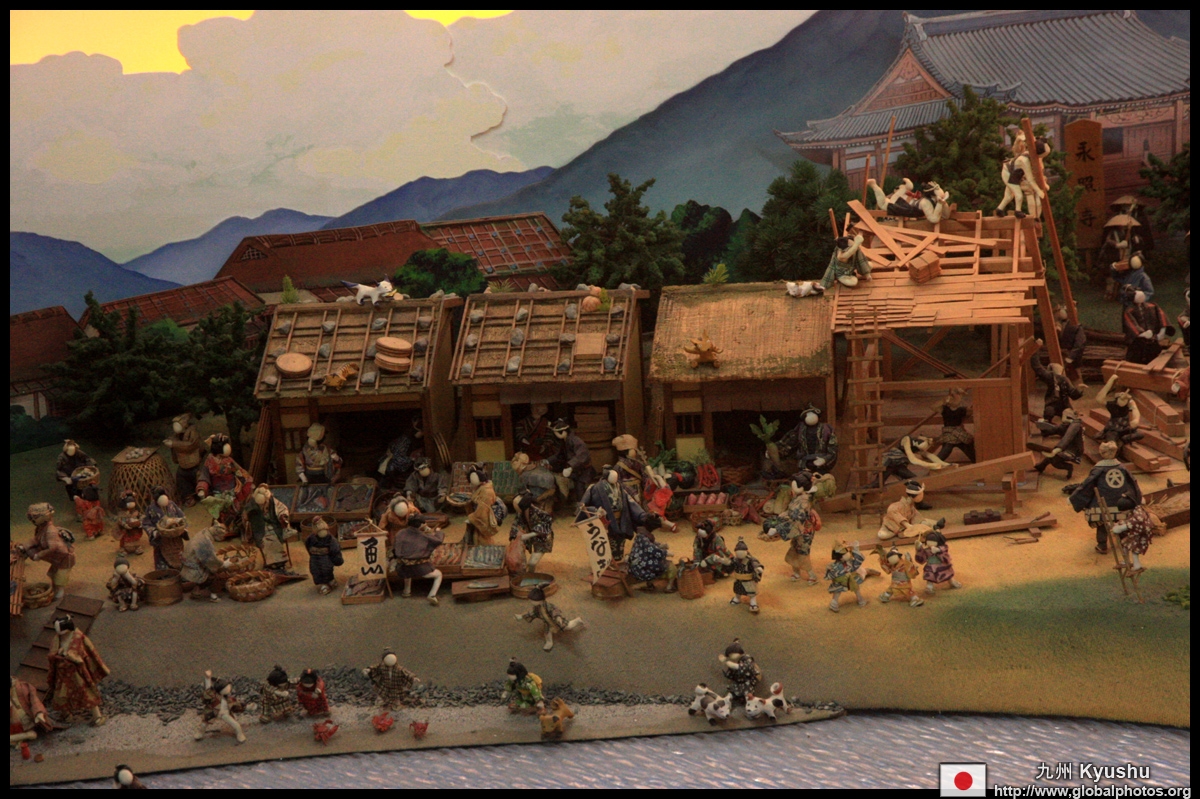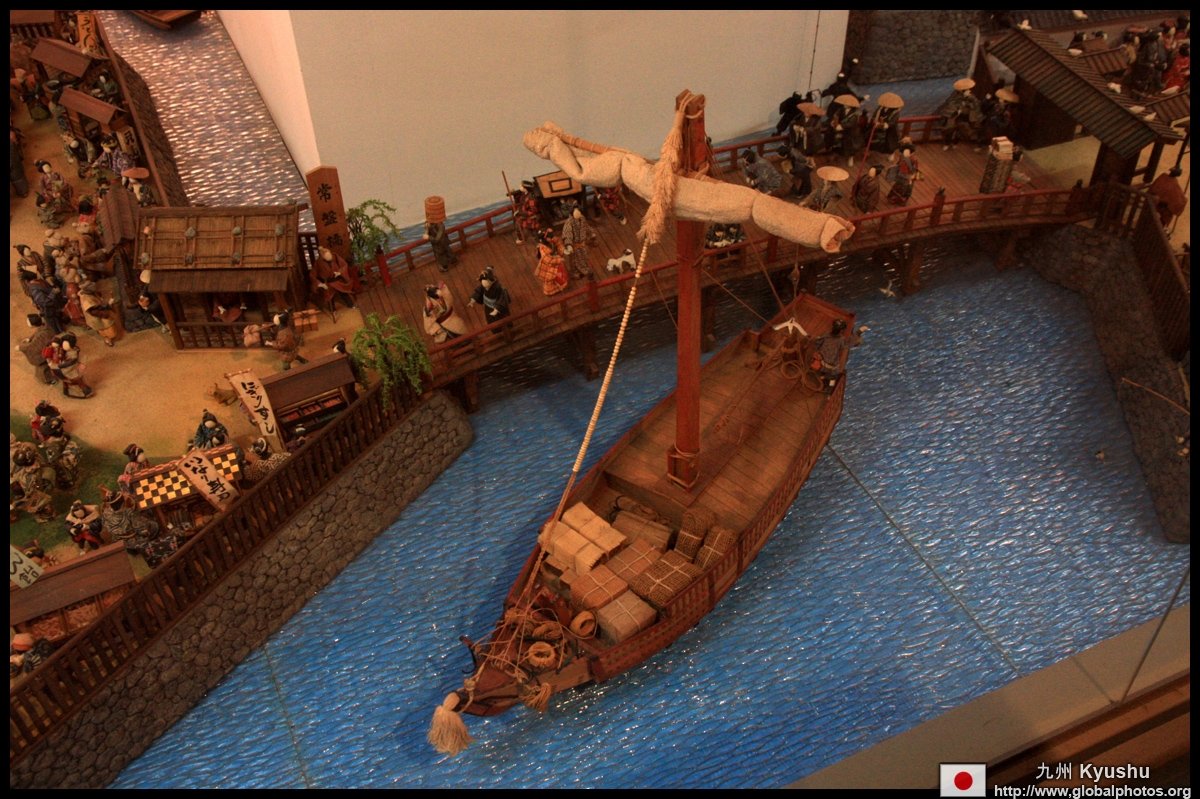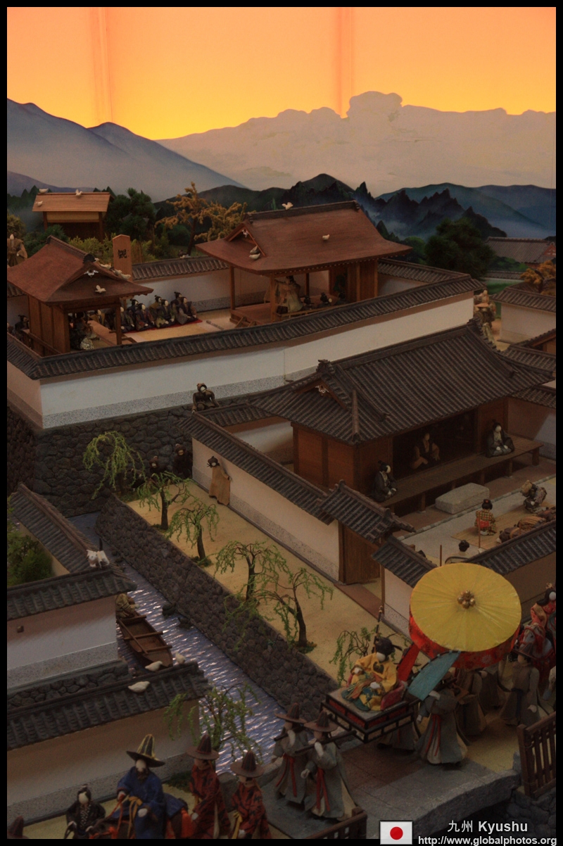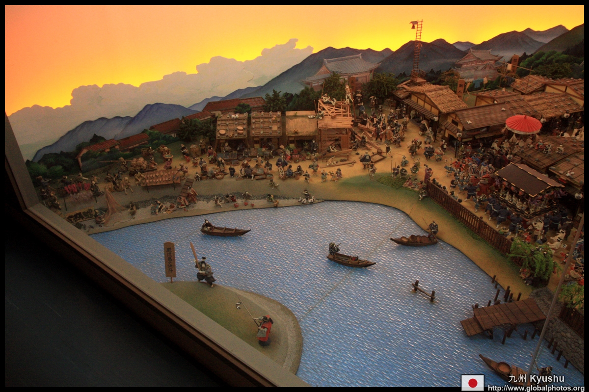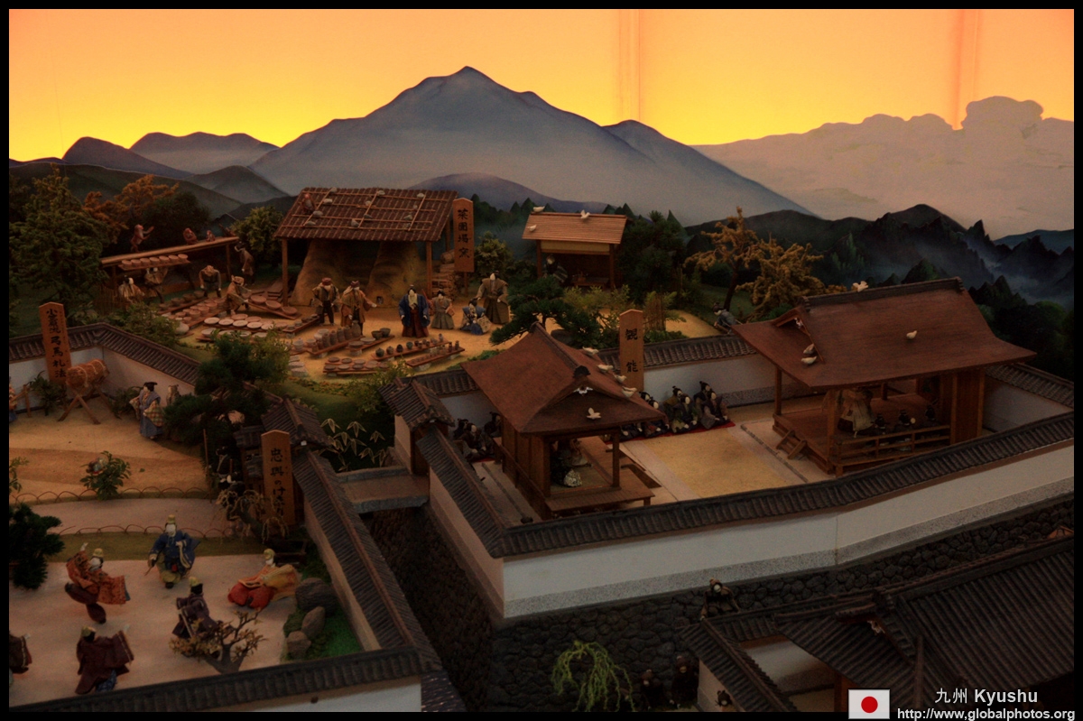 Inside, there are various exhibits, such as this model of Kokura Castle and the surrounding city. Note there are no faces on the dolls.