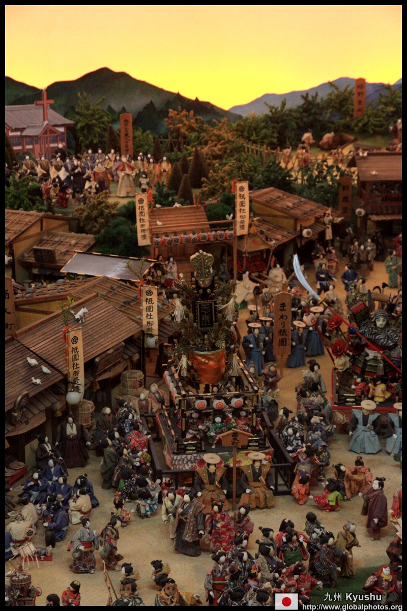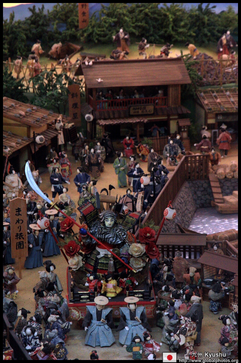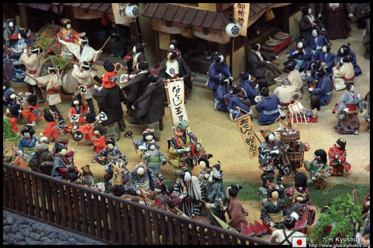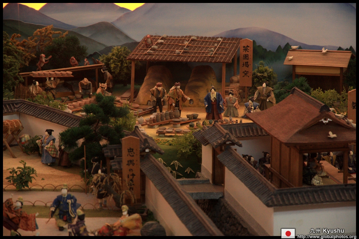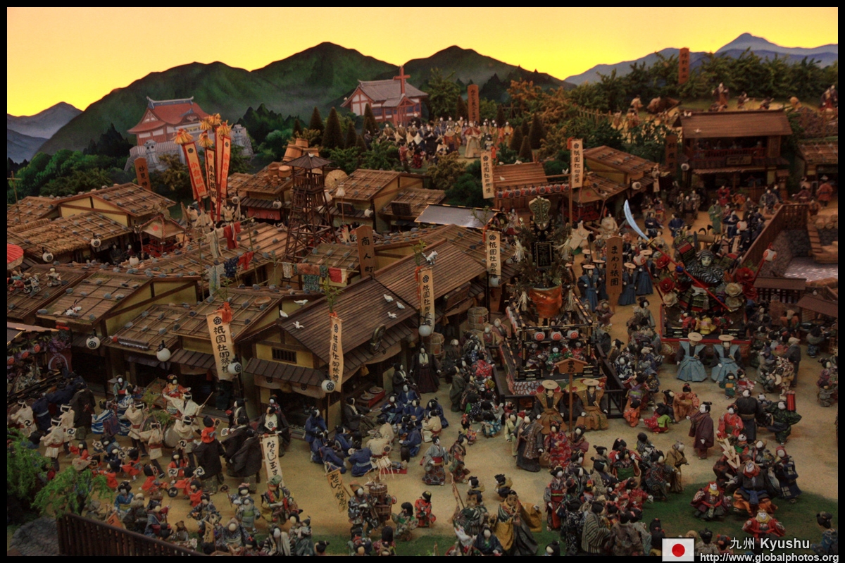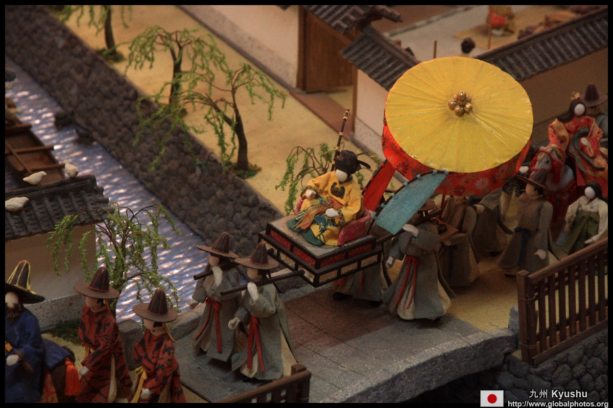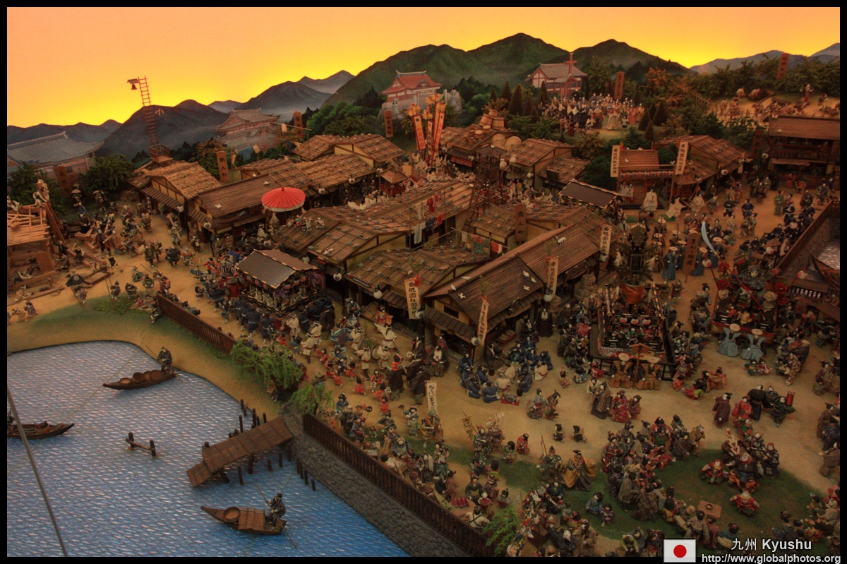 Inside, there are various exhibits, such as this model of Kokura Castle and the surrounding city. Note there are no faces on the dolls.
