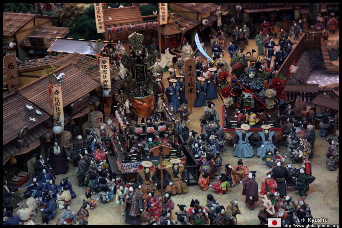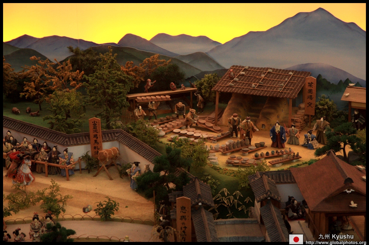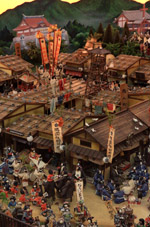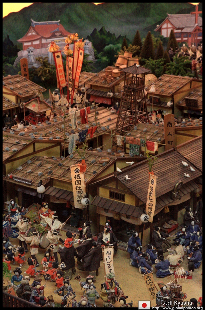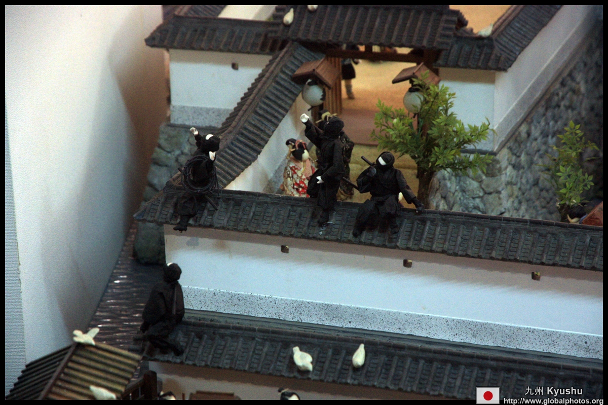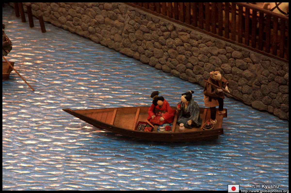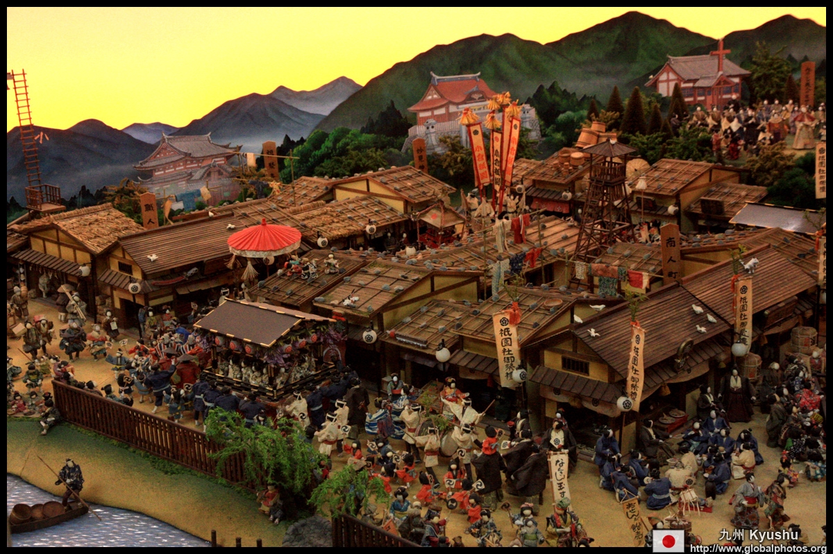 Inside, there are various exhibits, such as this model of Kokura Castle and the surrounding city. Note there are no faces on the dolls.