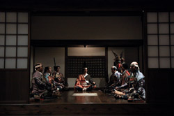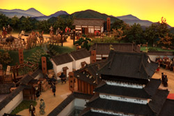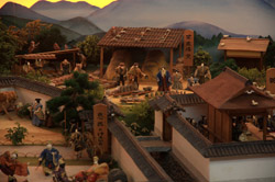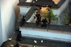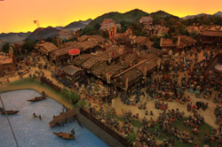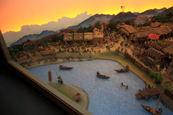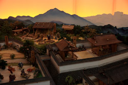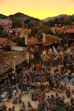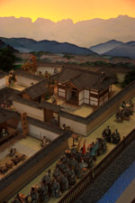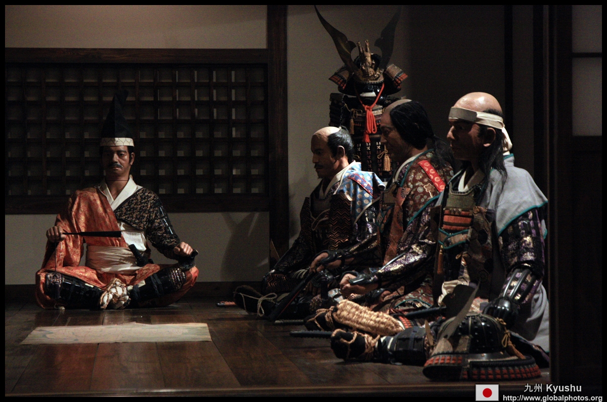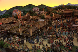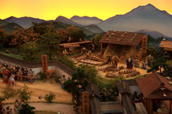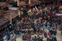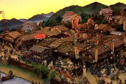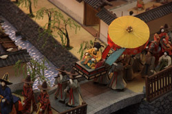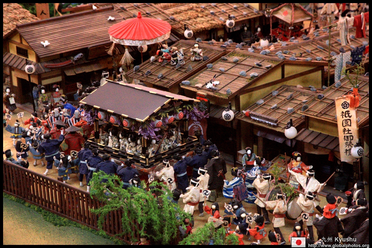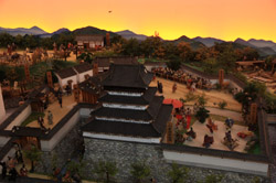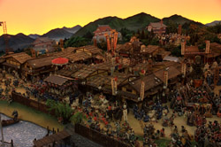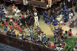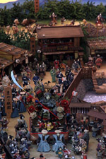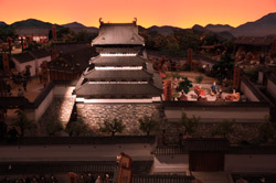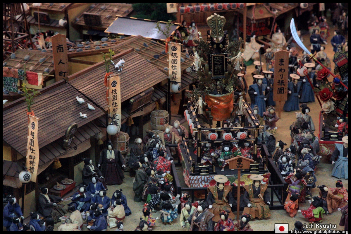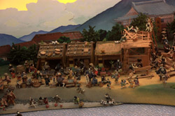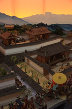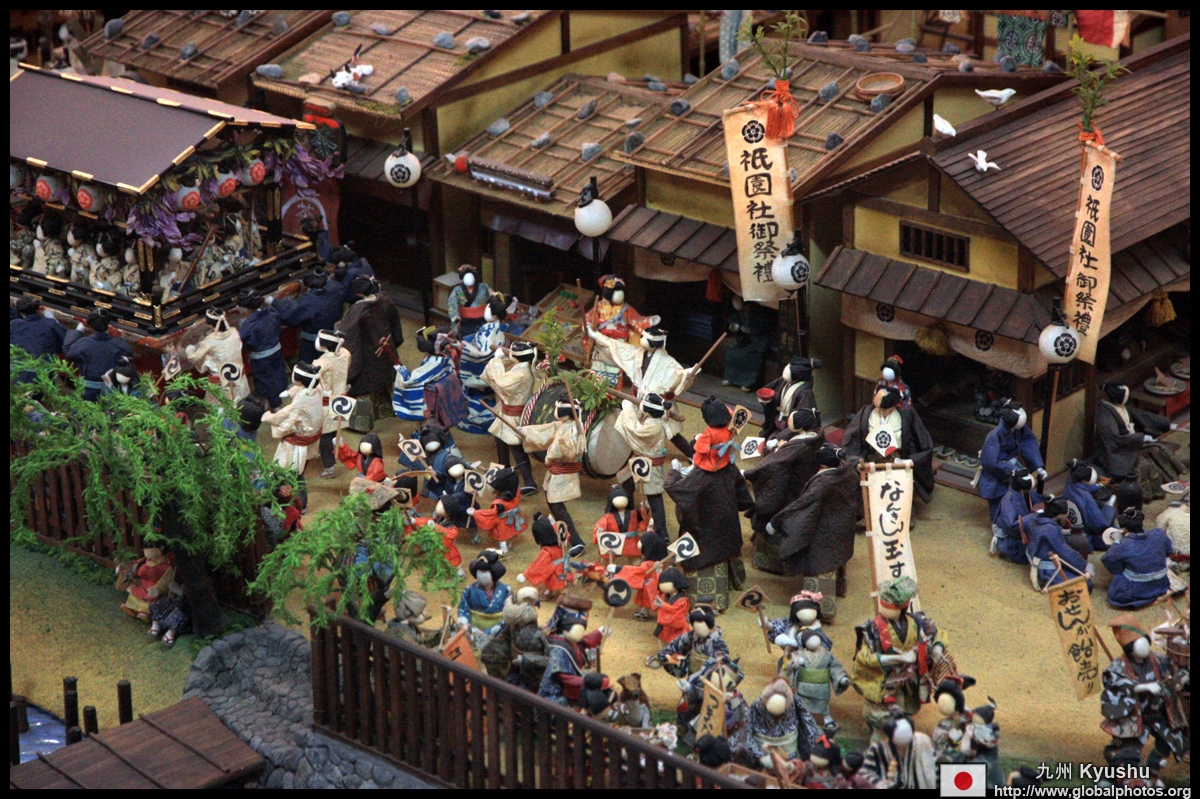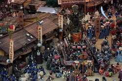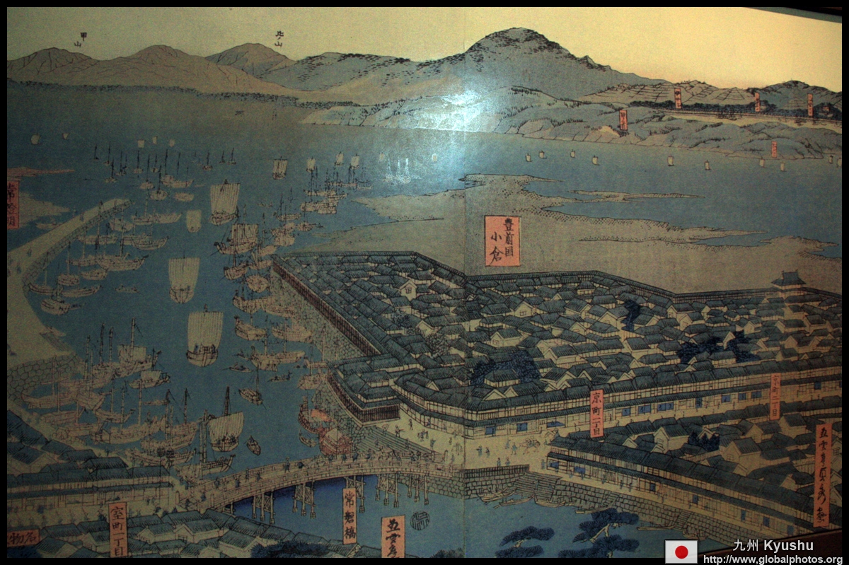 Inside, there are various exhibits, such as this model of Kokura Castle and the surrounding city. Note there are no faces on the dolls.