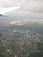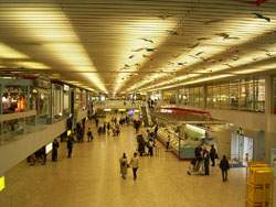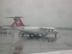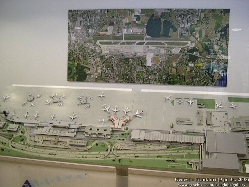 Geneva's international airport is only 6 minutes from the downtown Place Cornavin hub by train. The Western part of Switzerland is French-speaking, but as an international city and 2nd UN hub after New York, people know English well also.I arrived at the airport early after a rainstorm hit Geneva. I requested to be placed on an earlier flight to Frankfurt, which was accepted as that flight was not full. Geneva's airport is small, but easy to navigate. There is a free observation deck (labelled a public terrase) that offers a nice view of the whole airport. Lufthansa's flight attendants are very young. They are very courteous and are always smiling. Even for this short flight, we received sandwiches and complementary drinks. |