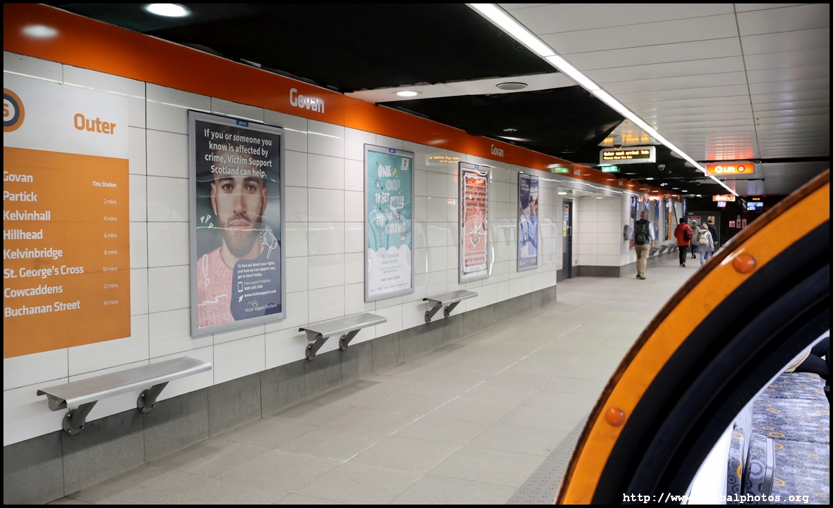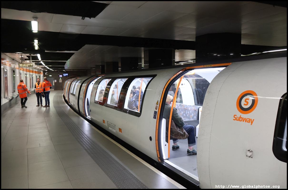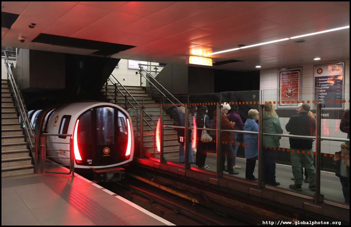 Opened in December 1896, Glasgow has the world's 3rd oldest underground metro, after London and Budapest. It was originally a cable-hauled system and was electrified in 1935. Its first modernization came in the late 1970s, when the network was closed entirely for 3 years until 1980.Unlike the London Underground, locals call the metro "subway", similar to North American English. It runs a single circle around the city, with the different directions denoted as the inner or outer loop. New trains from Stadler started entering service in December 2023. They are the same length and size as the previous trains but with 4 cars instead of 3, which are connected to better manage passenger flows. More changes to come include half-height platform screen doors and turning fully driverless. Famous for its short tunnels and narrow stations, some stations have additional side platforms to better manage crowds, such as Buchanan Street downtown.