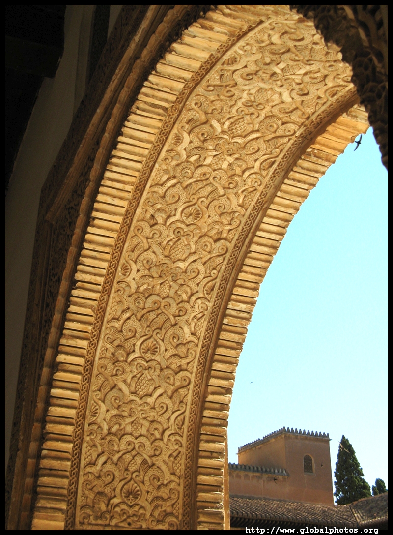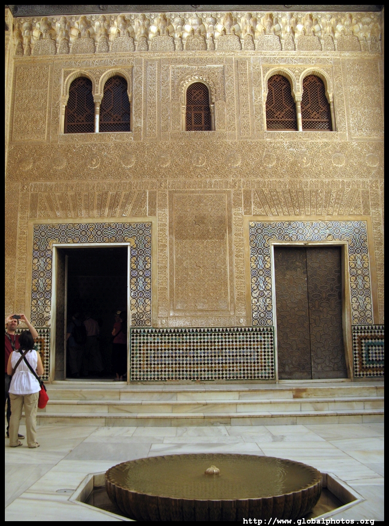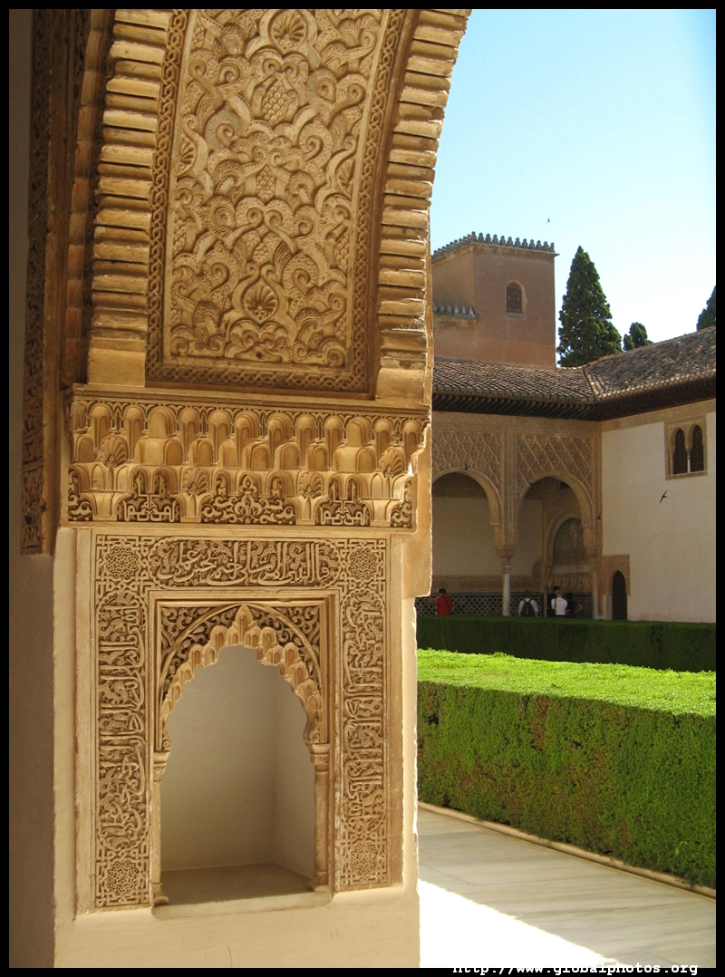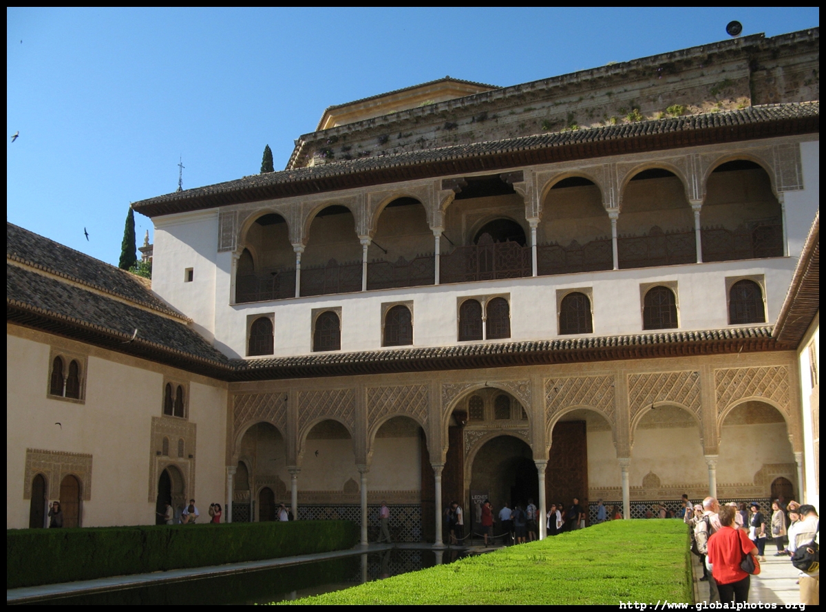 After examining the intricately-decorated interiors, the palace opens up to a courtyard, the Patio de los Arrayanes, which features a reflective pool.