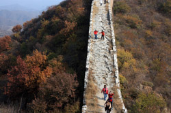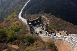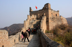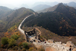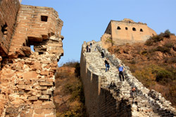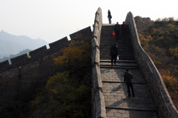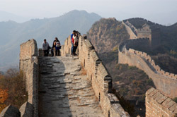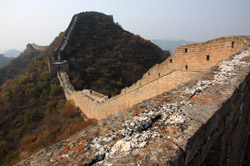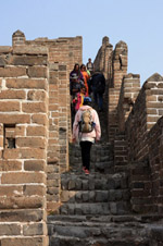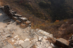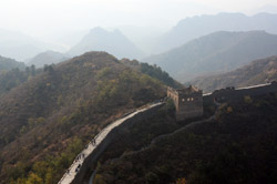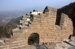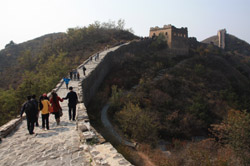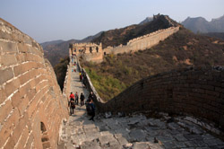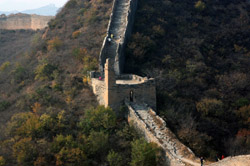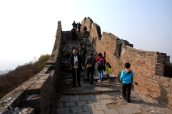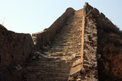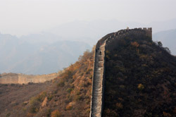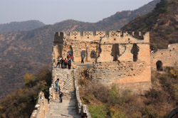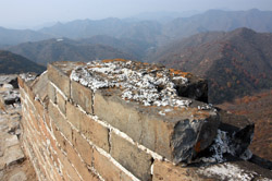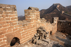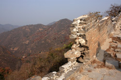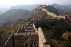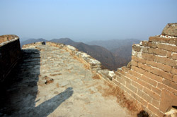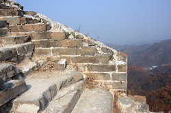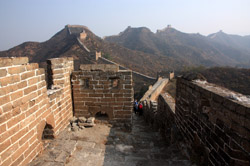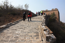 With Badaling flooded by tourists, I opted for a more serene and less crowded walk at this section of wall further away. Transport options dwindle with the distance, so it was a comfortable 5-hour walk through many watch towers on this sunny, but slightly smoggy, day. The greatest joy came at the end, where the wall has not been restored and remains in a semi-ruinous state.
