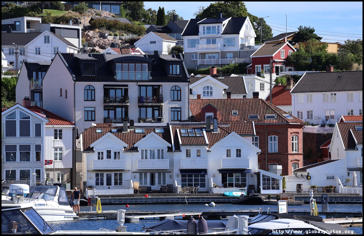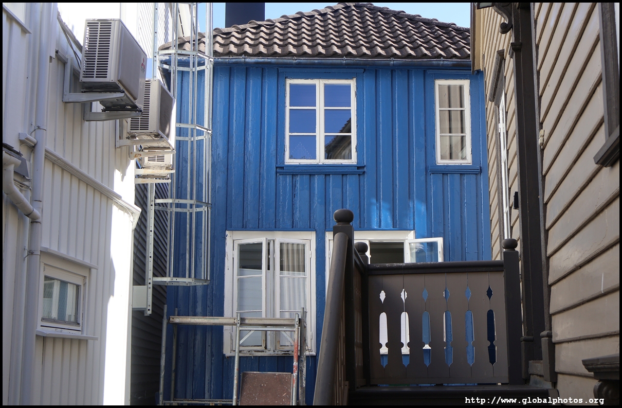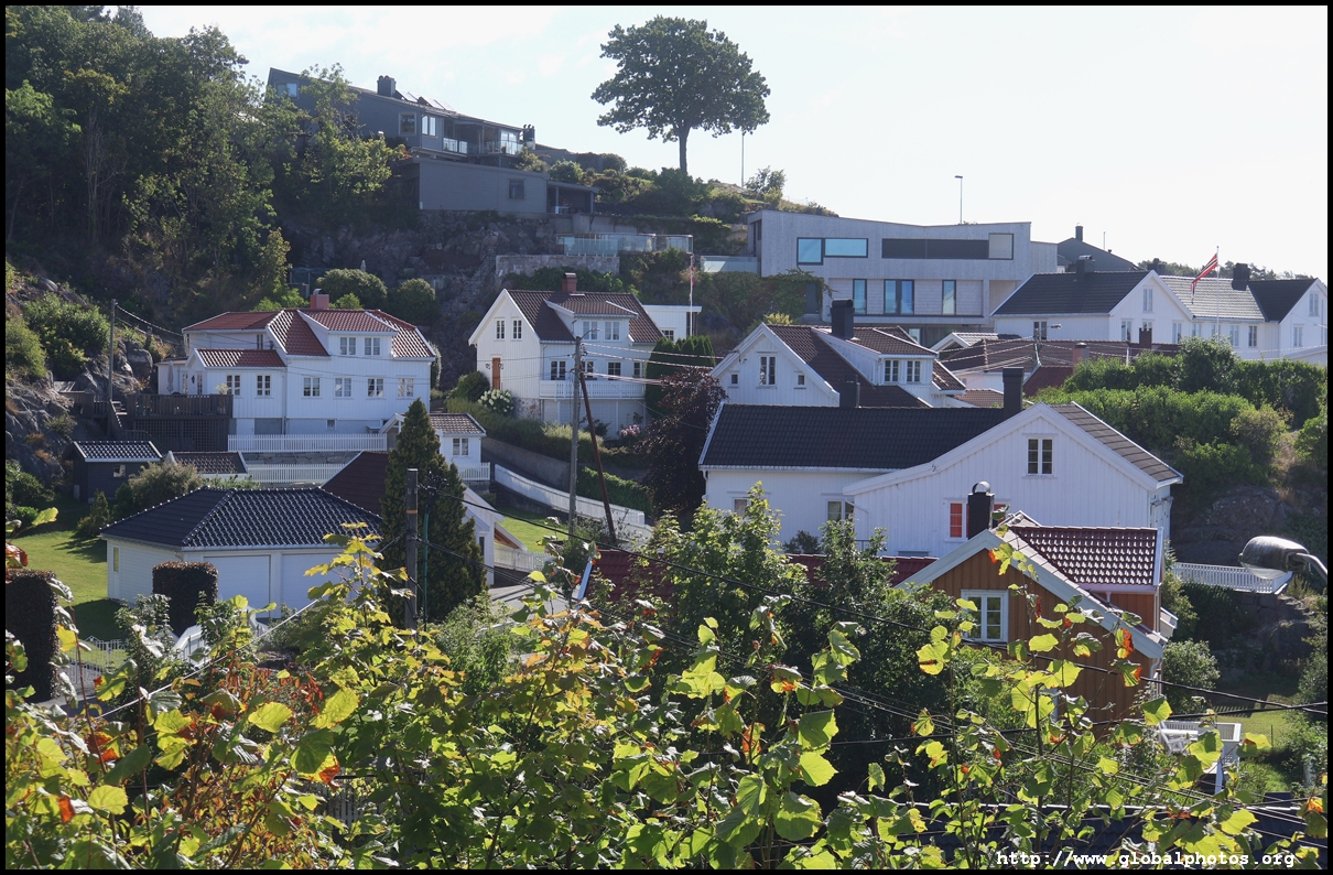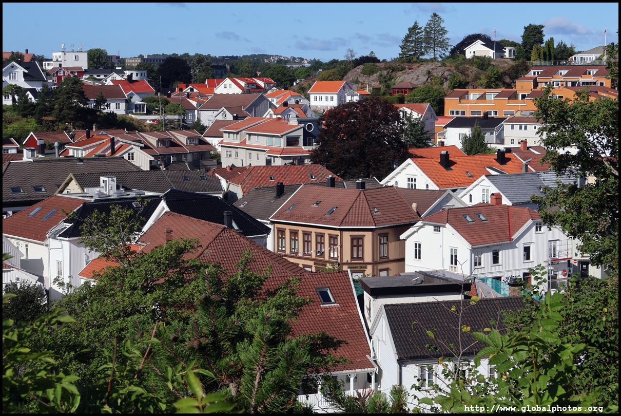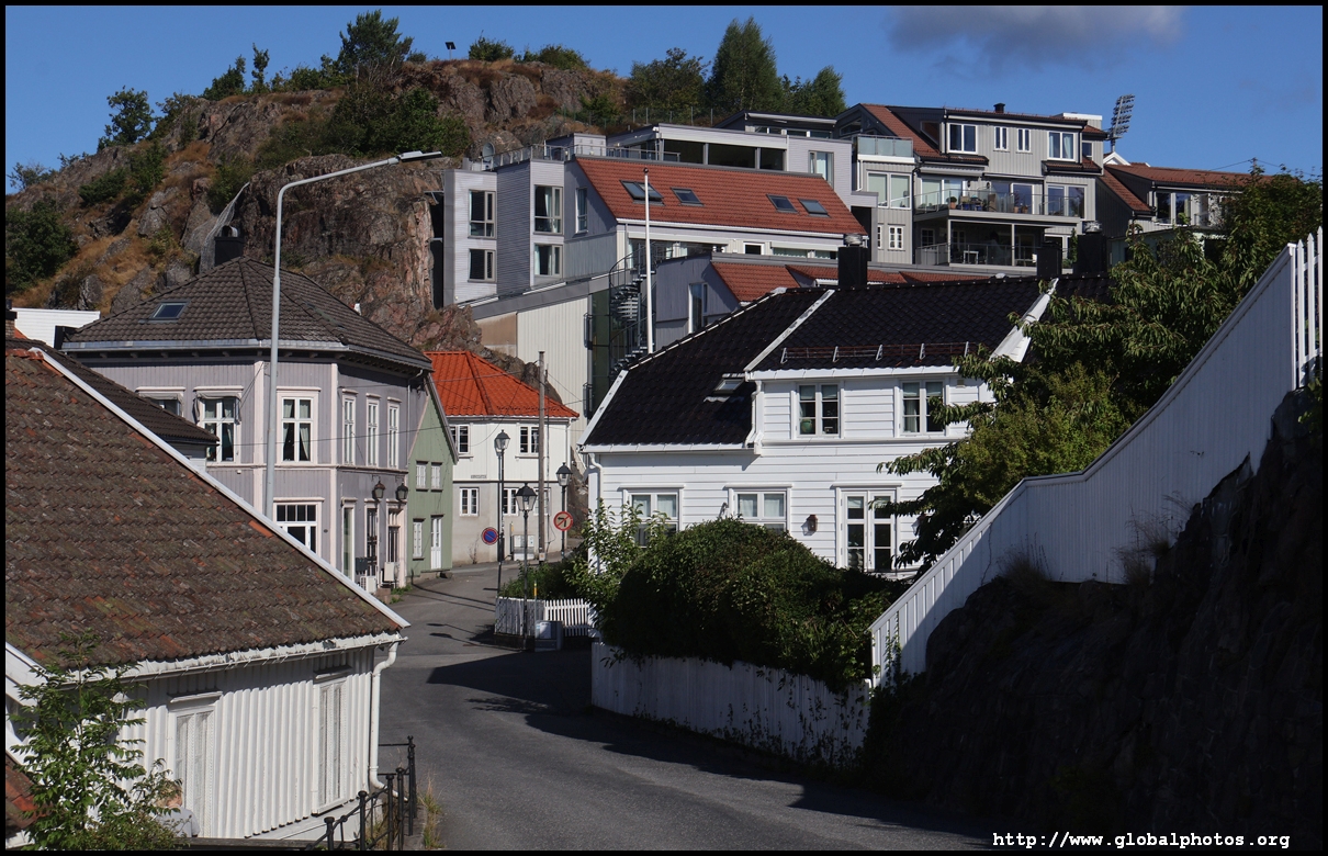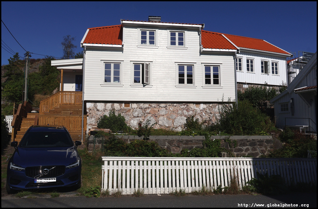 From here, I'm in the city centre with lots of narrow streets full of white wooden houses. Grimstad historically had 3 arterial roads and a lot of small alleys and stairs but more urban planning came after it became a trading town in 1816.
