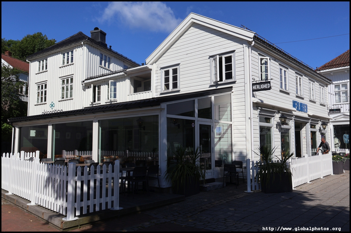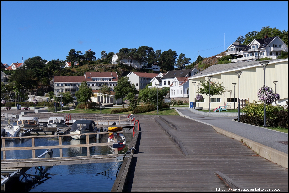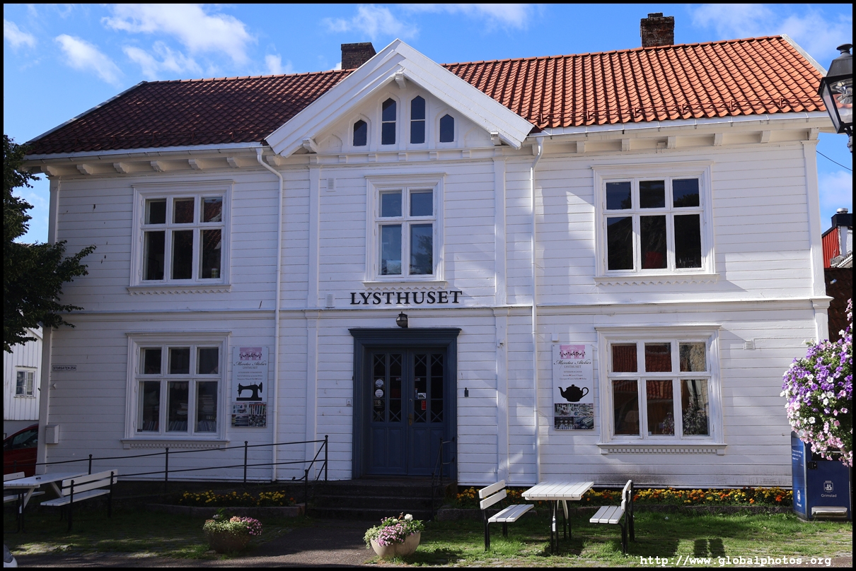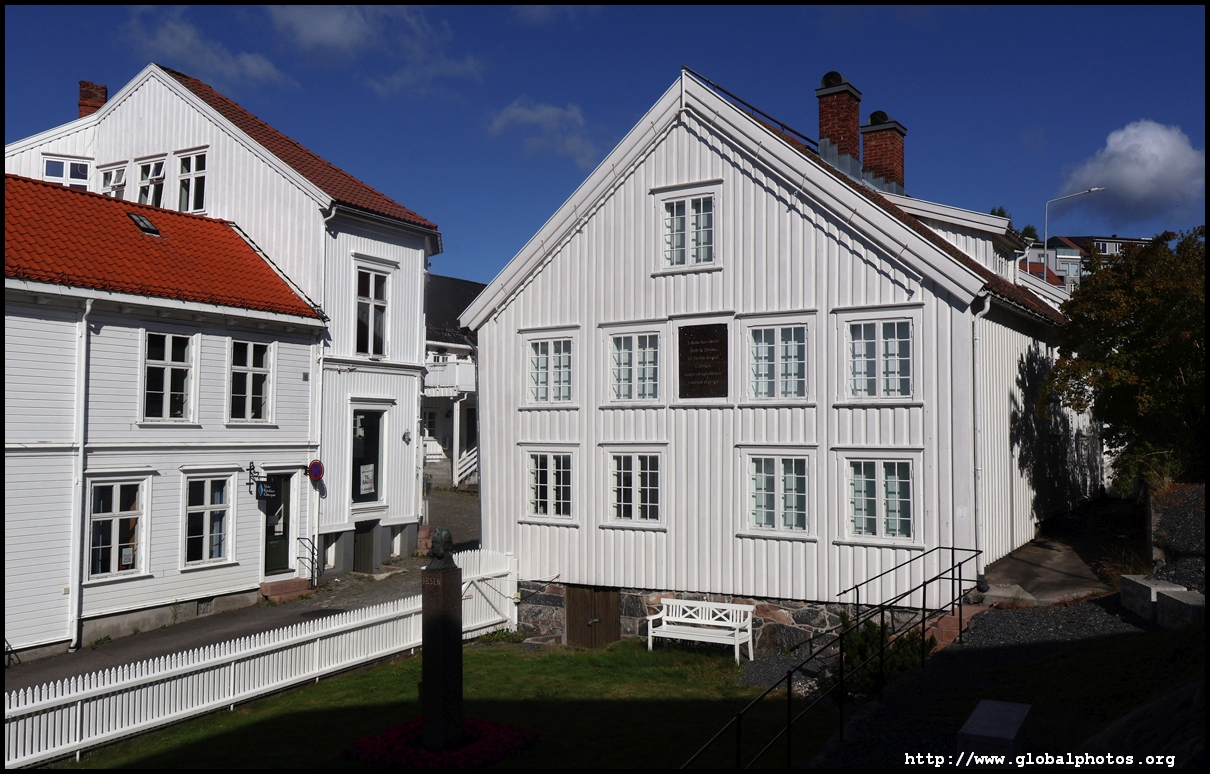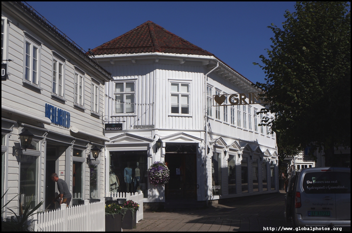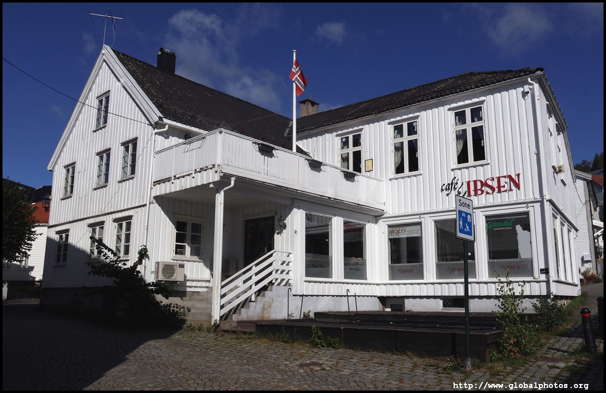 Grimstad is an easy 20 minute bus ride from Arendal on route 100. It's a small town with many white wooden houses, made famous by Henrik Ibsen, who came here at the age of 15 to become a pharmacist apprentice but went on to become a writer.