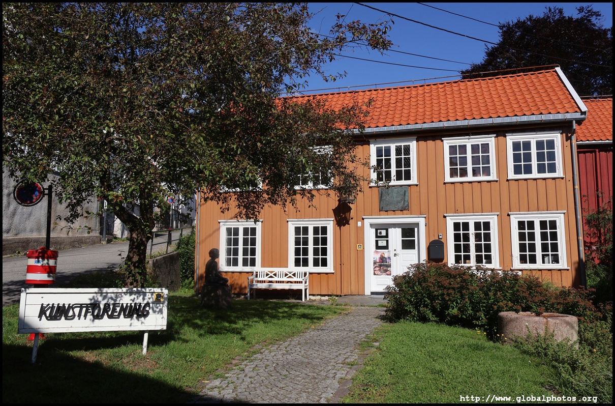 Heading back downhill, I reached Kunstforening, the art association, with its distinctly yellow exterior. This building dates back to the 1700s and where Ibsen lived and worked when he first came to Grimstad.