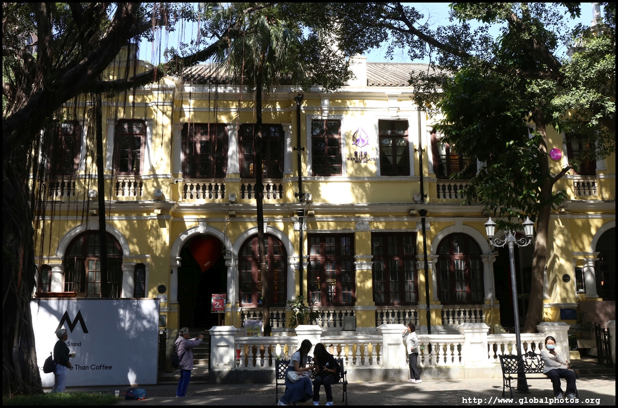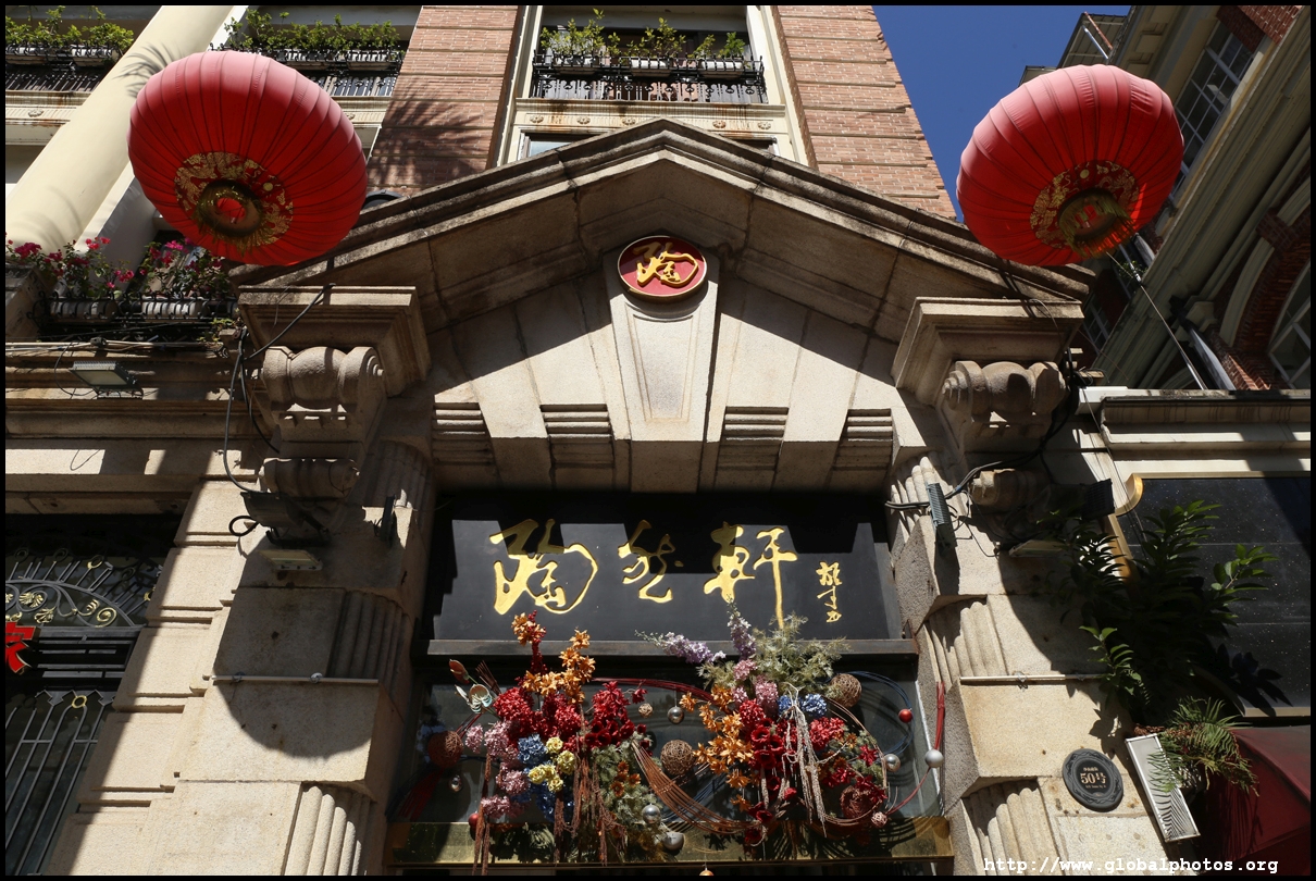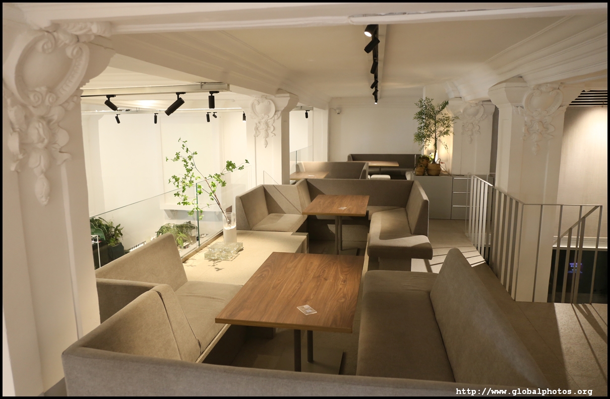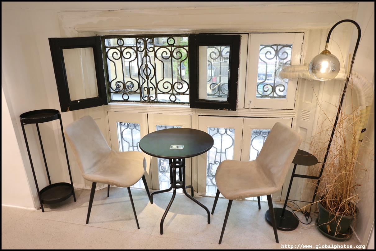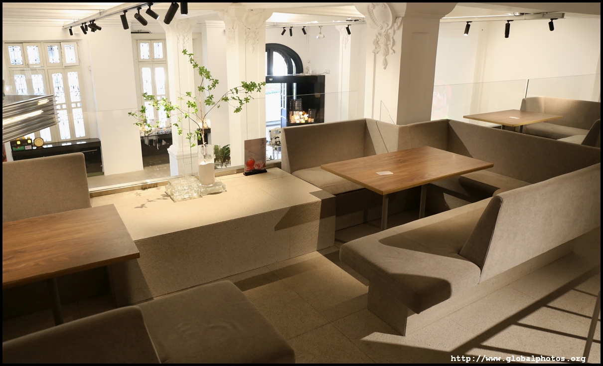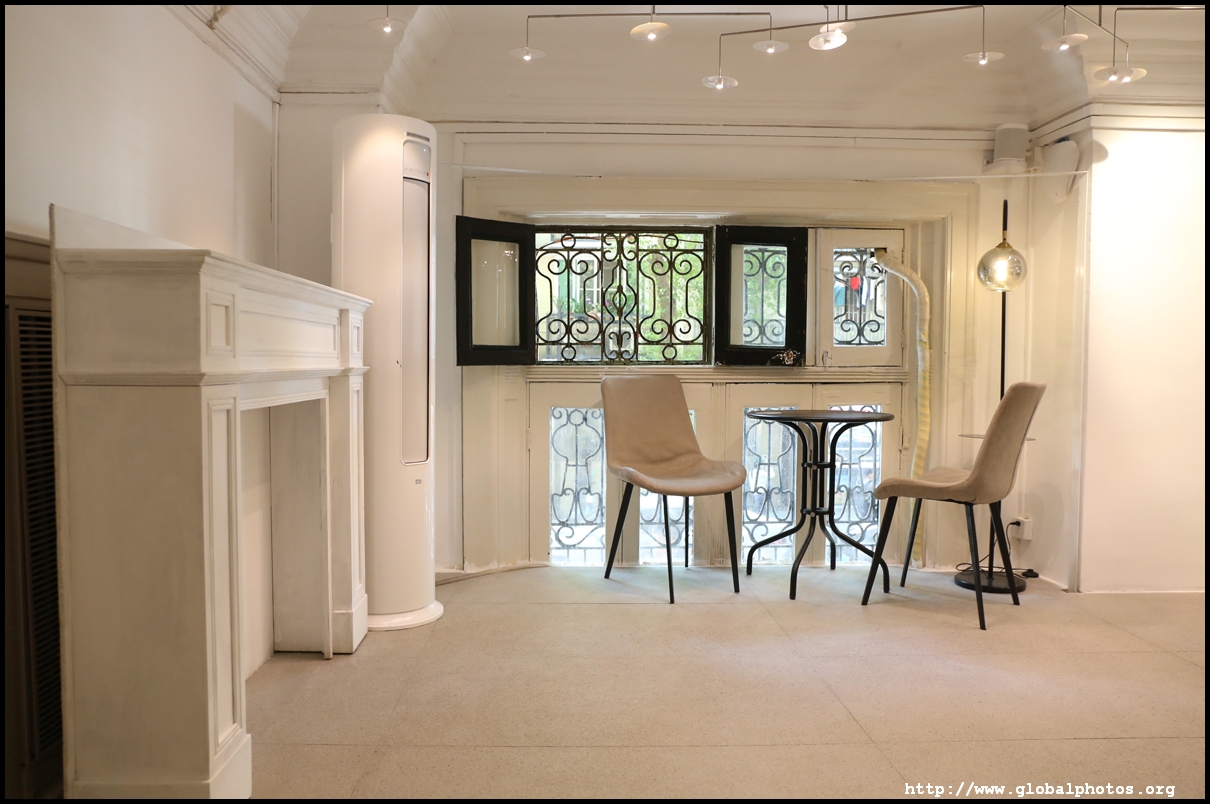 Some buildings have been renovated into fancy cafes, with this one stylishly modern despite its historic setting.