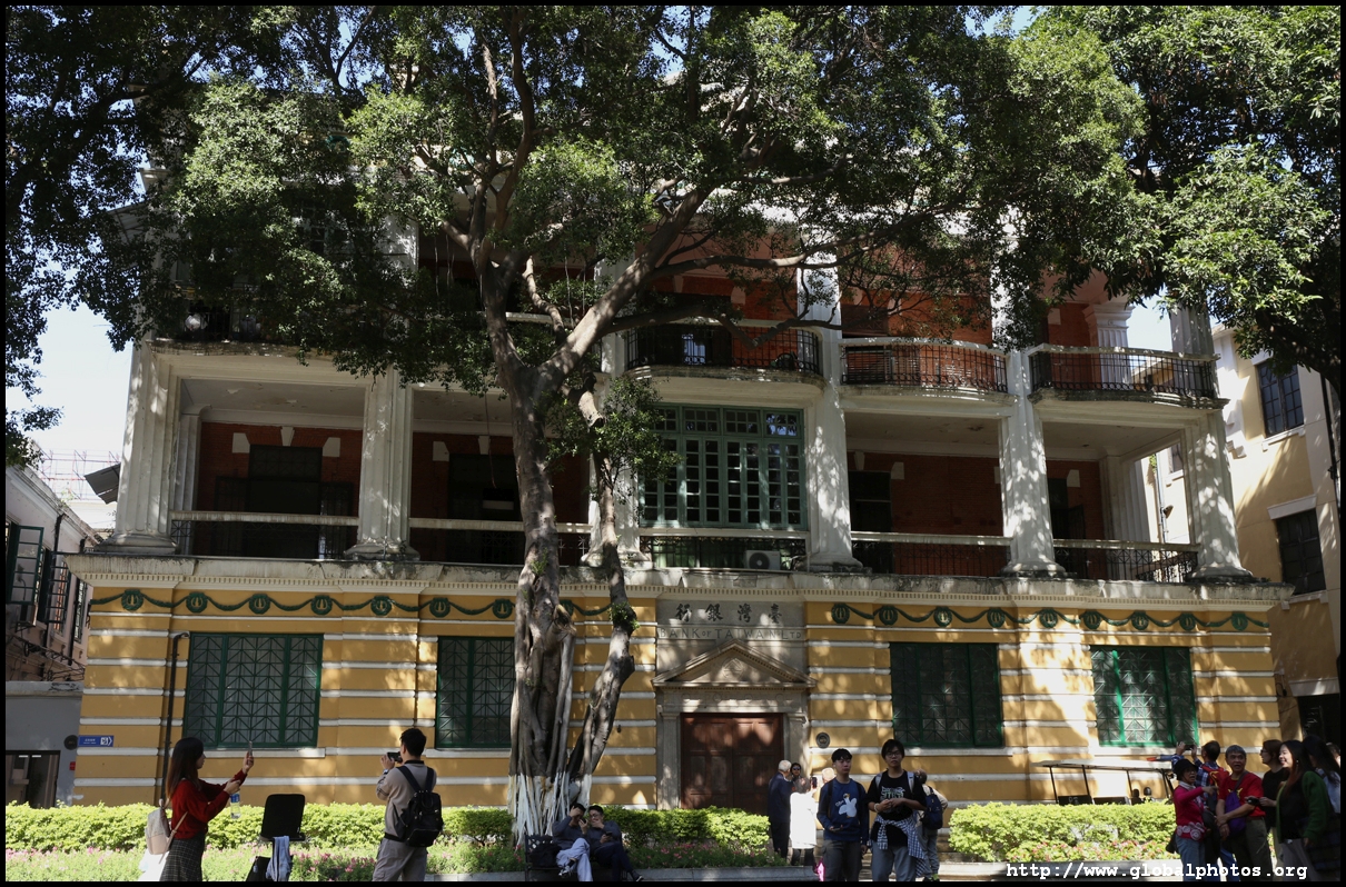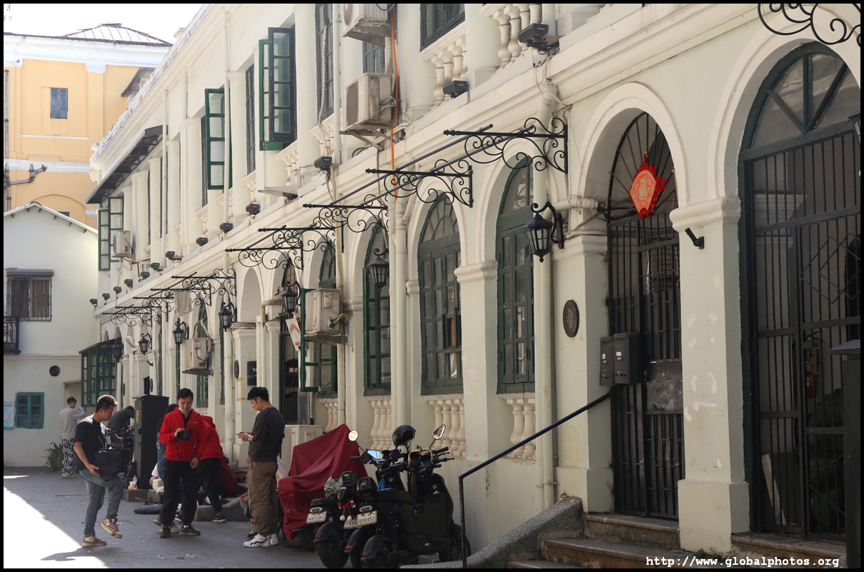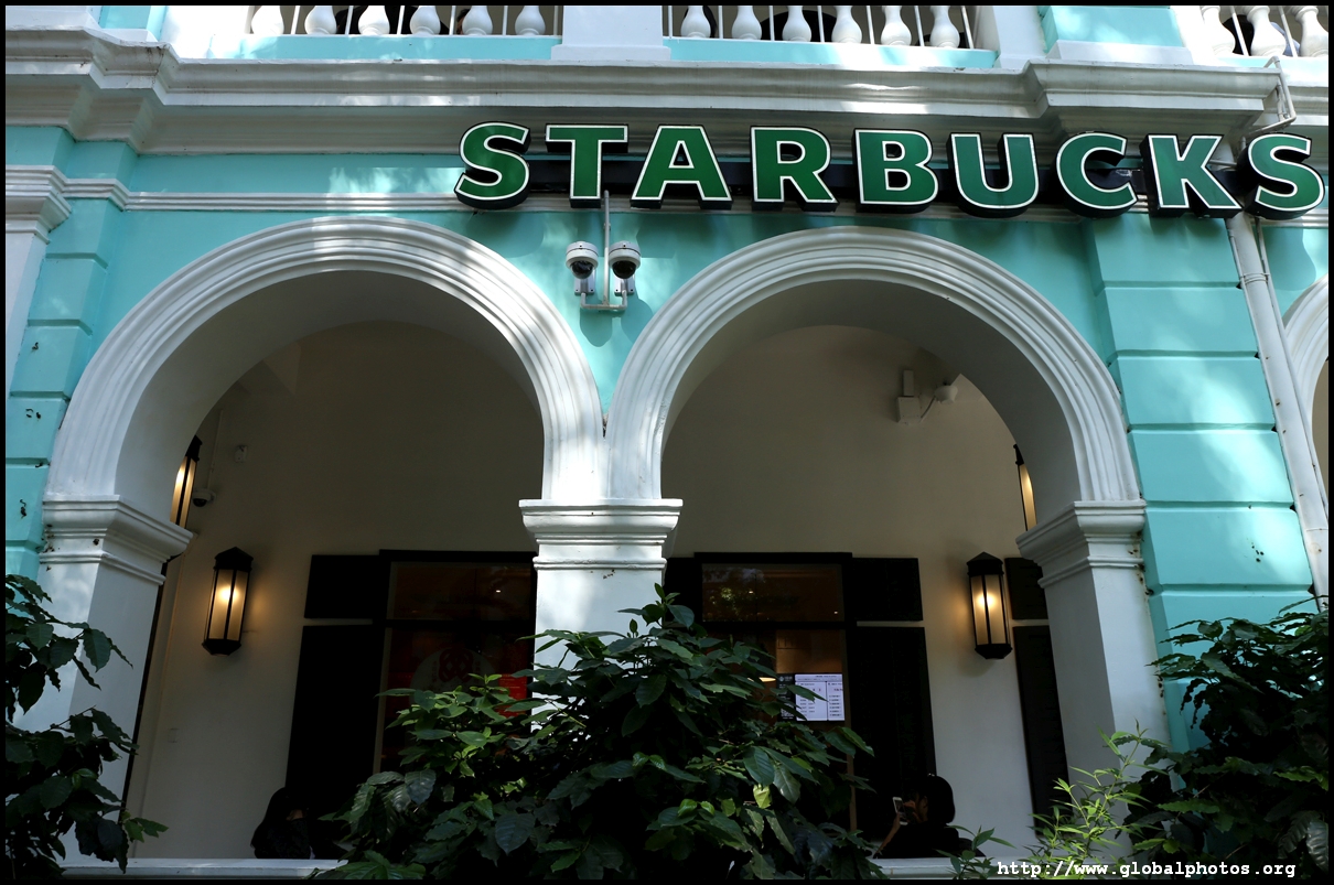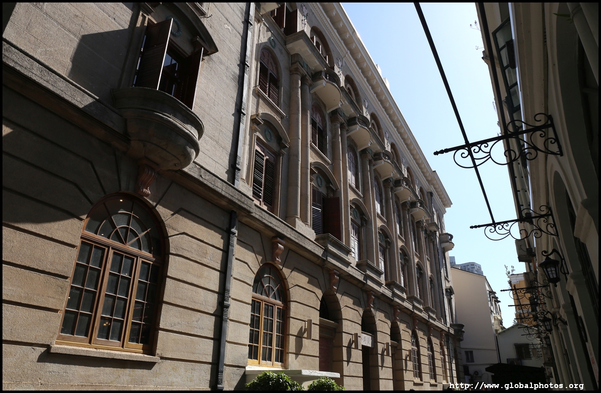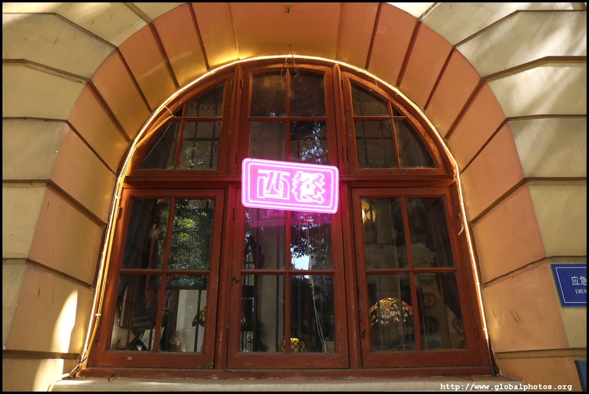 Some buildings have been renovated into fancy cafes, with this one stylishly modern despite its historic setting.