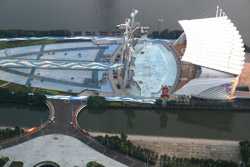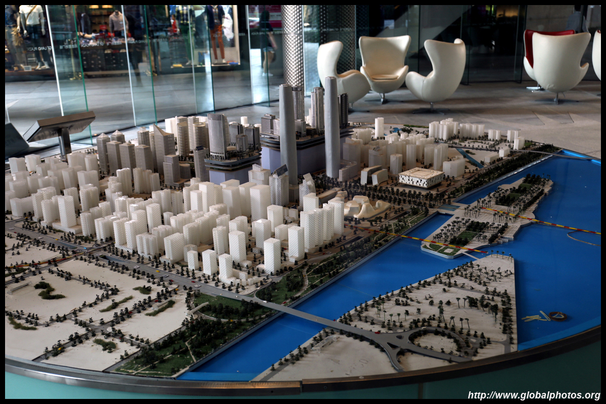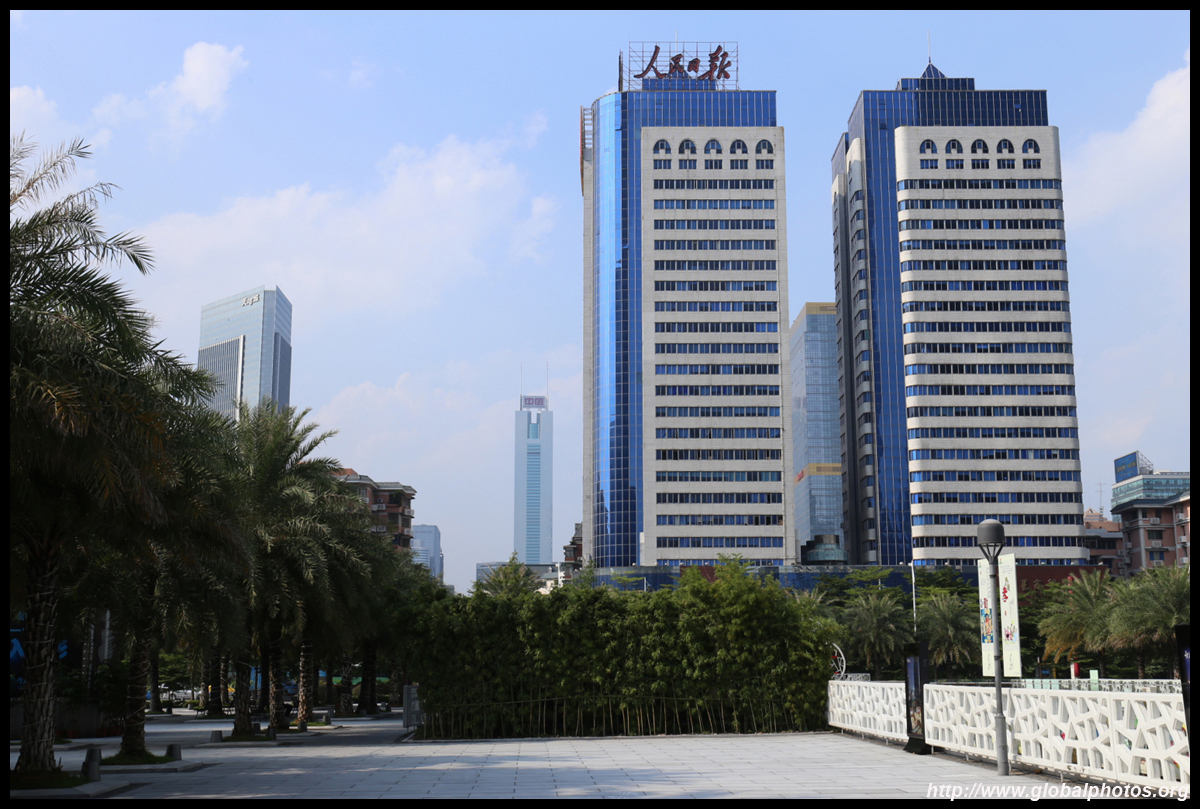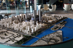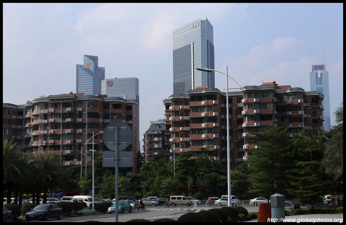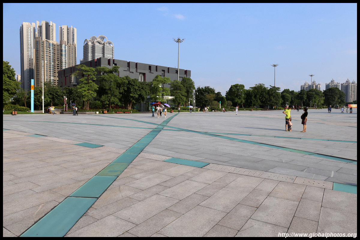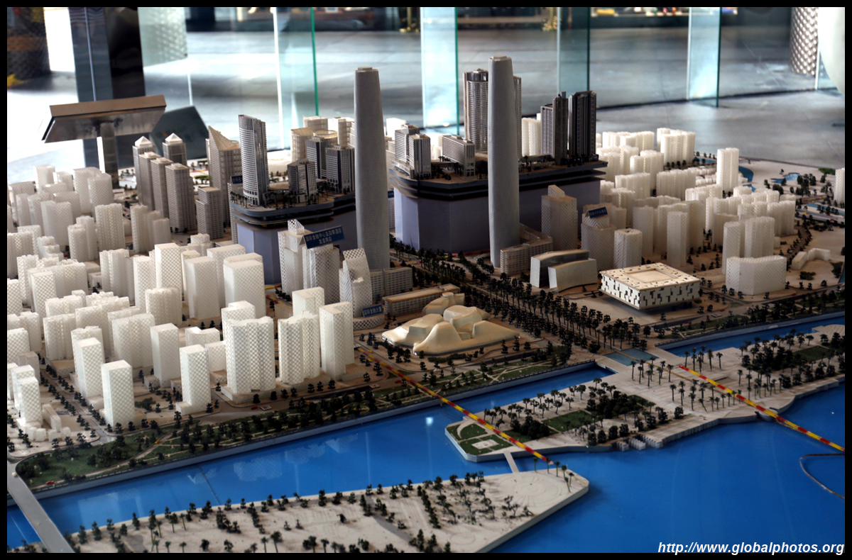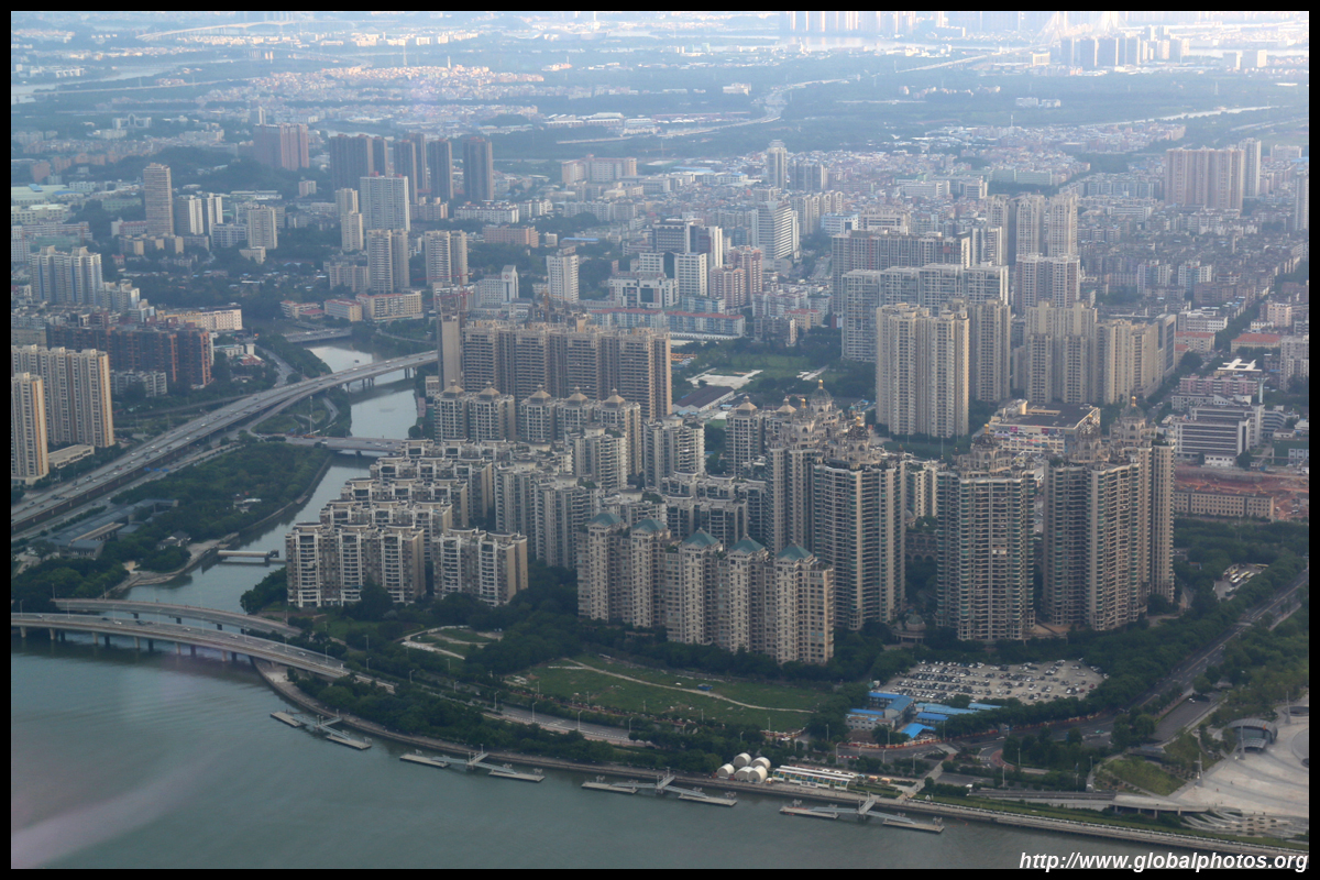 The new central axis extends across the Pearl River to end at the tower.