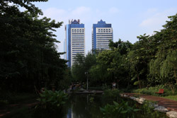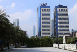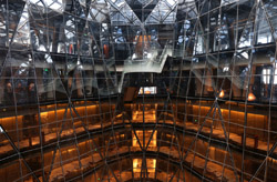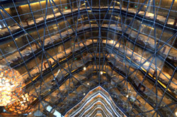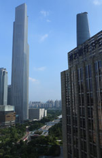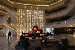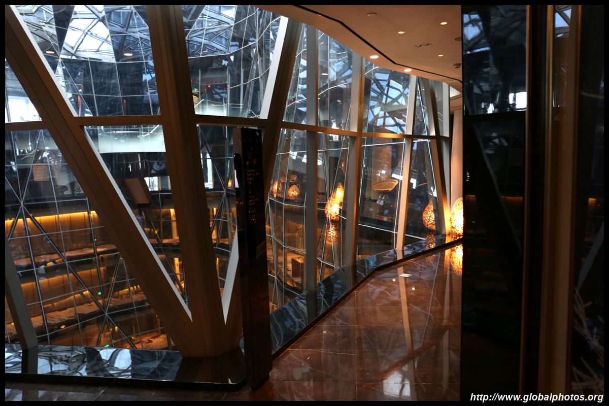 The Four Seasons is the highest hotel in the city. Taking up the top section of Guangzhou IFC between the 74-98th floors, the views here are worth staying for a drink. The central atrium reminds me of Jinmao in Shanghai, but with more rugged shaping.