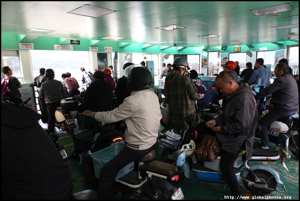 These ferries are mostly standing-only with plenty of open space for motorcycles.