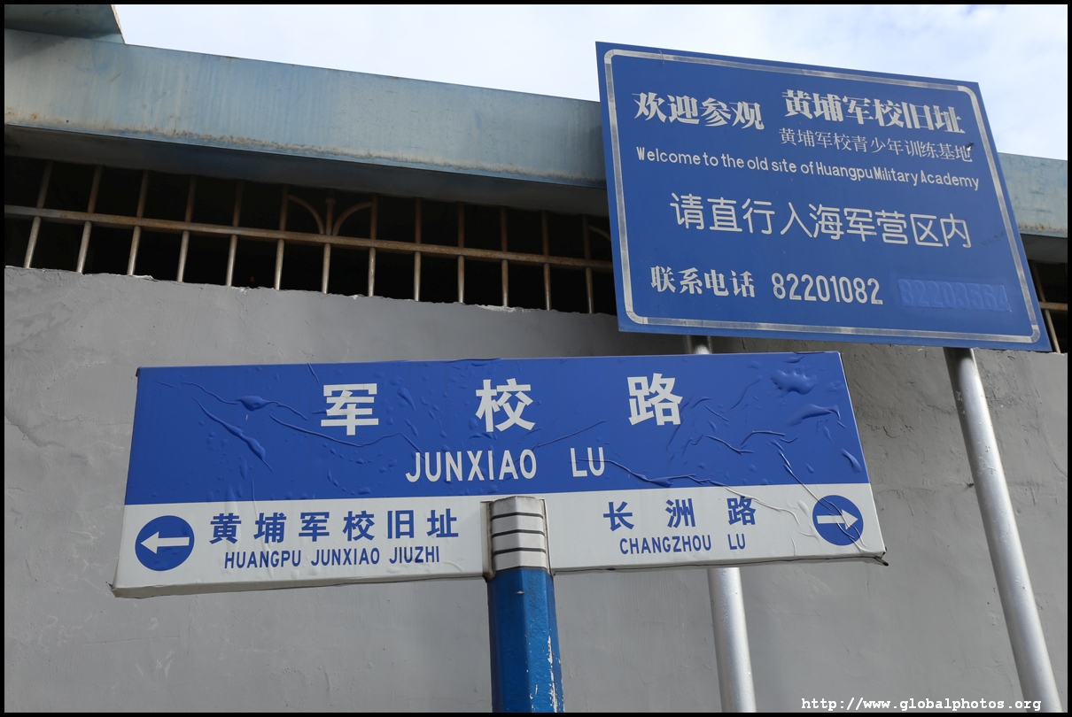 Unfortunately, the street signage isn't too helpful if you can't read Chinese. Junxiao is the Mandarin pronunciation for military academy and the blue text on the bottom left with the left arrow is pointing to the Huangpu Military Academy.