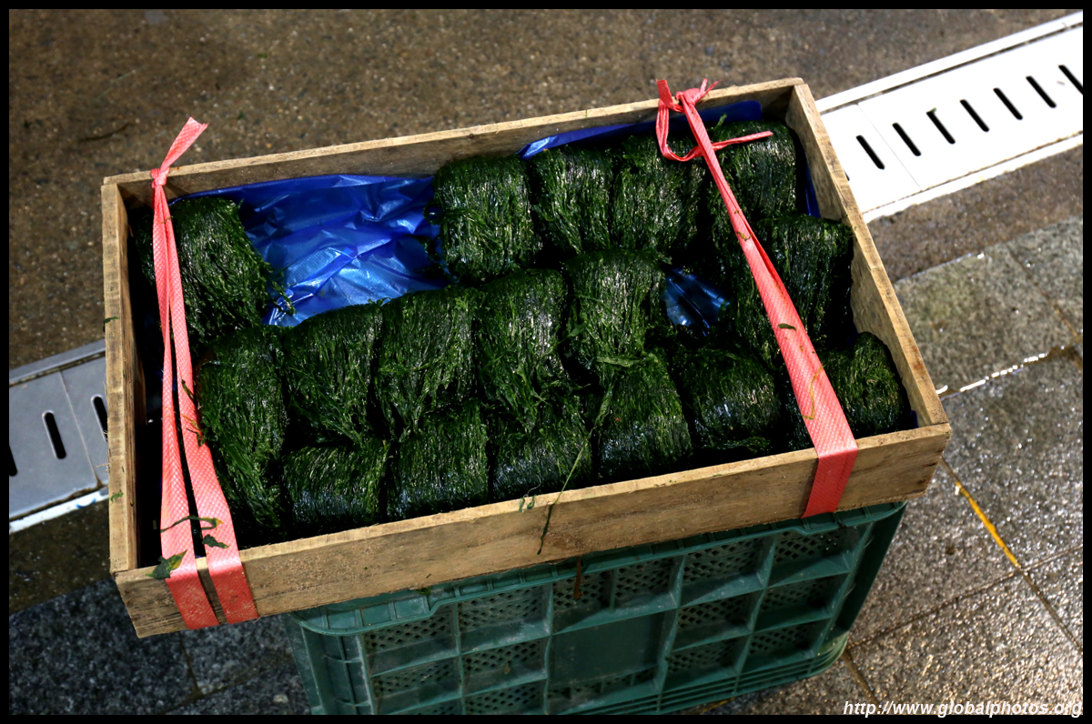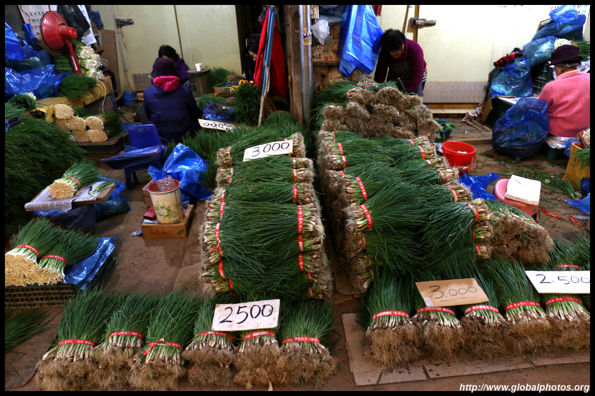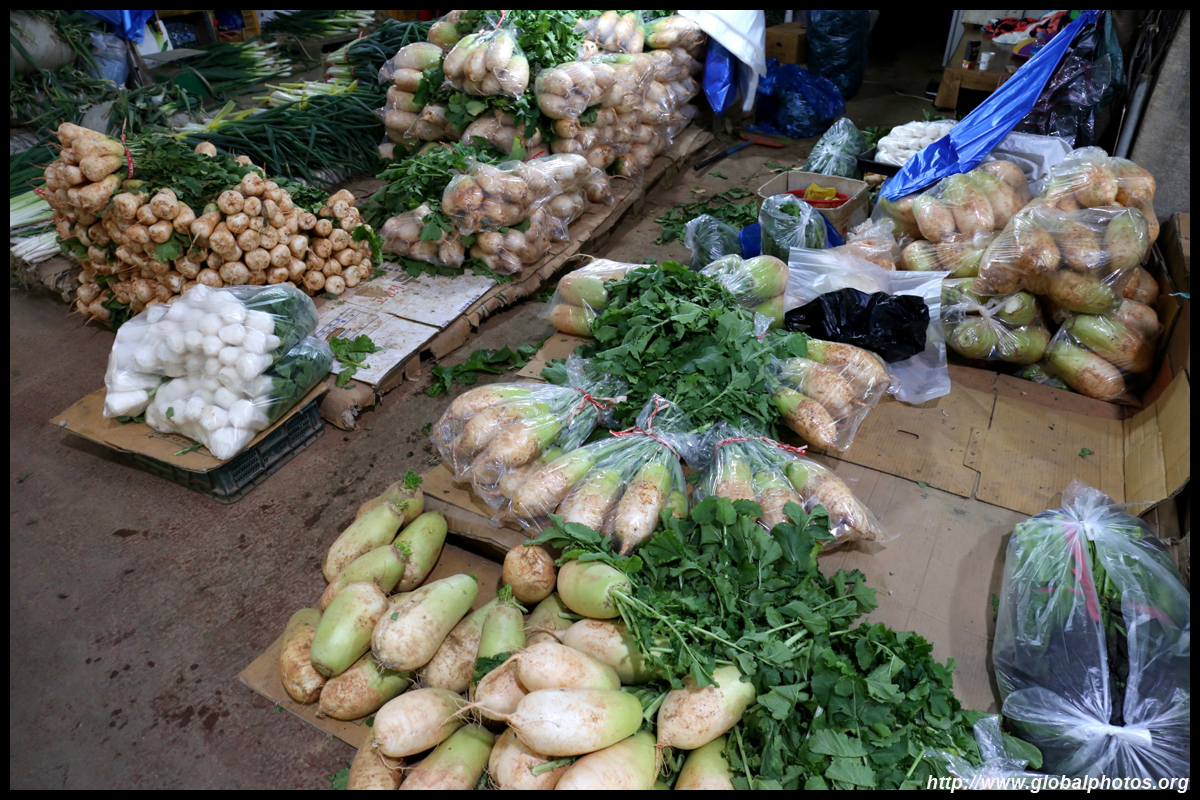The vegetable stalls are more interesting with workers sorting through all sorts of big and small bundles.