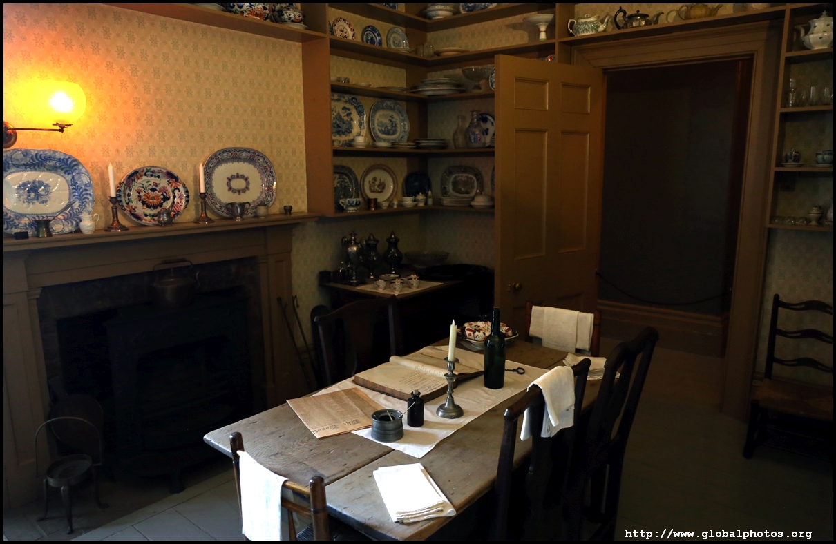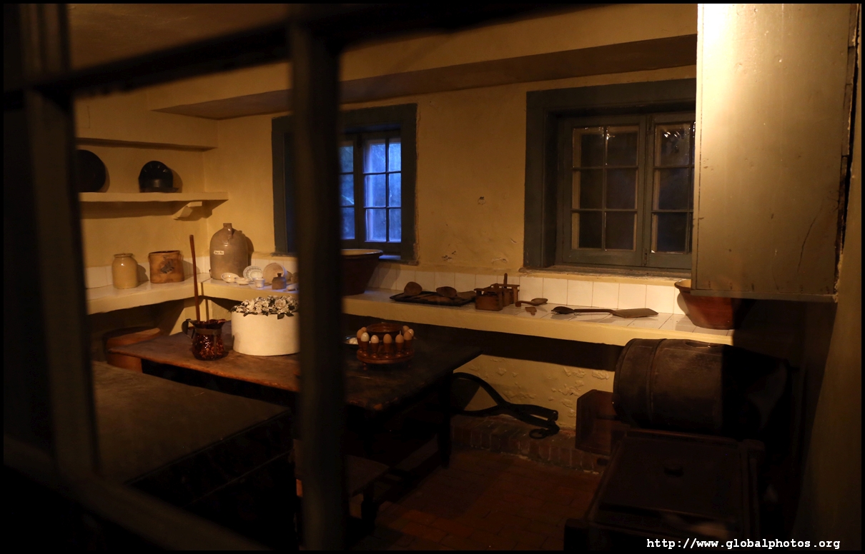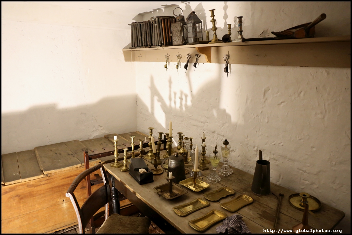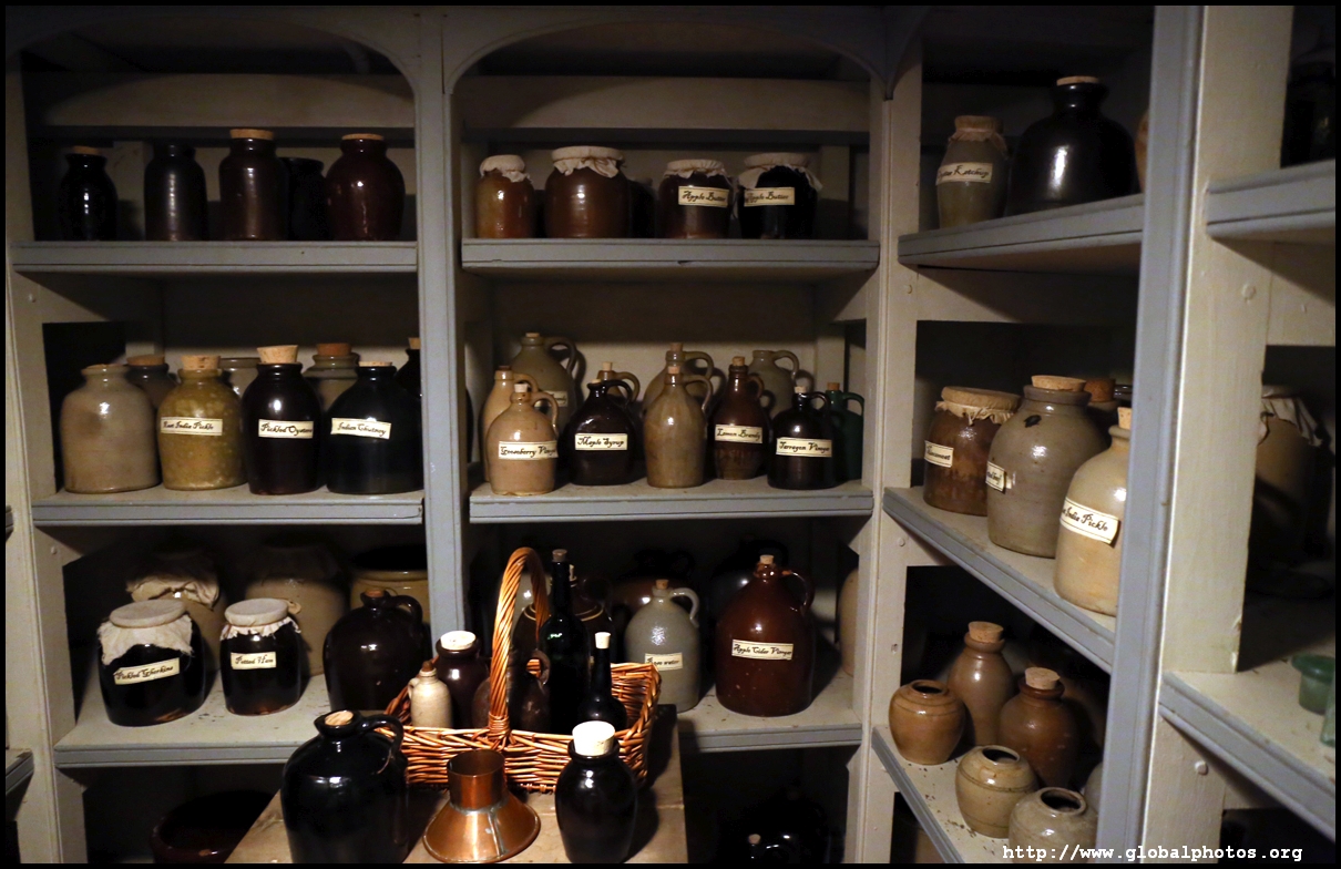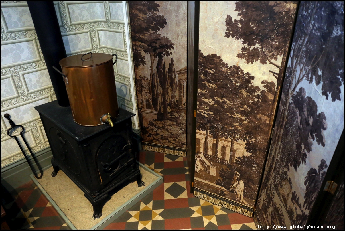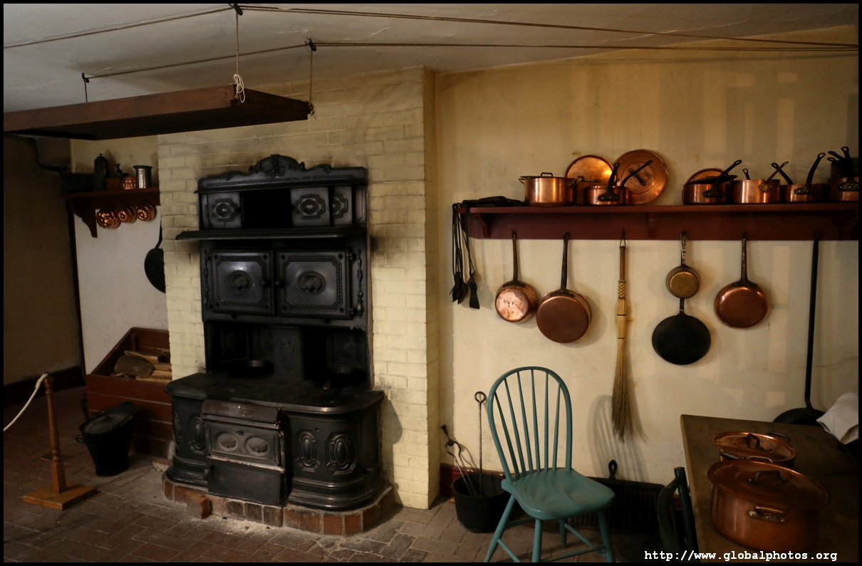 The basement has a full kitchen where they hold cooking workshops with a wood stove from the period. The servants lived and worked down here, forbidden to be seen on the 2 floors above them where the family lives unless called. The cook's bedroom looks relatively nicer, and for good reason. She would cook the family's 4 meals and servants' 3 meals a day.
