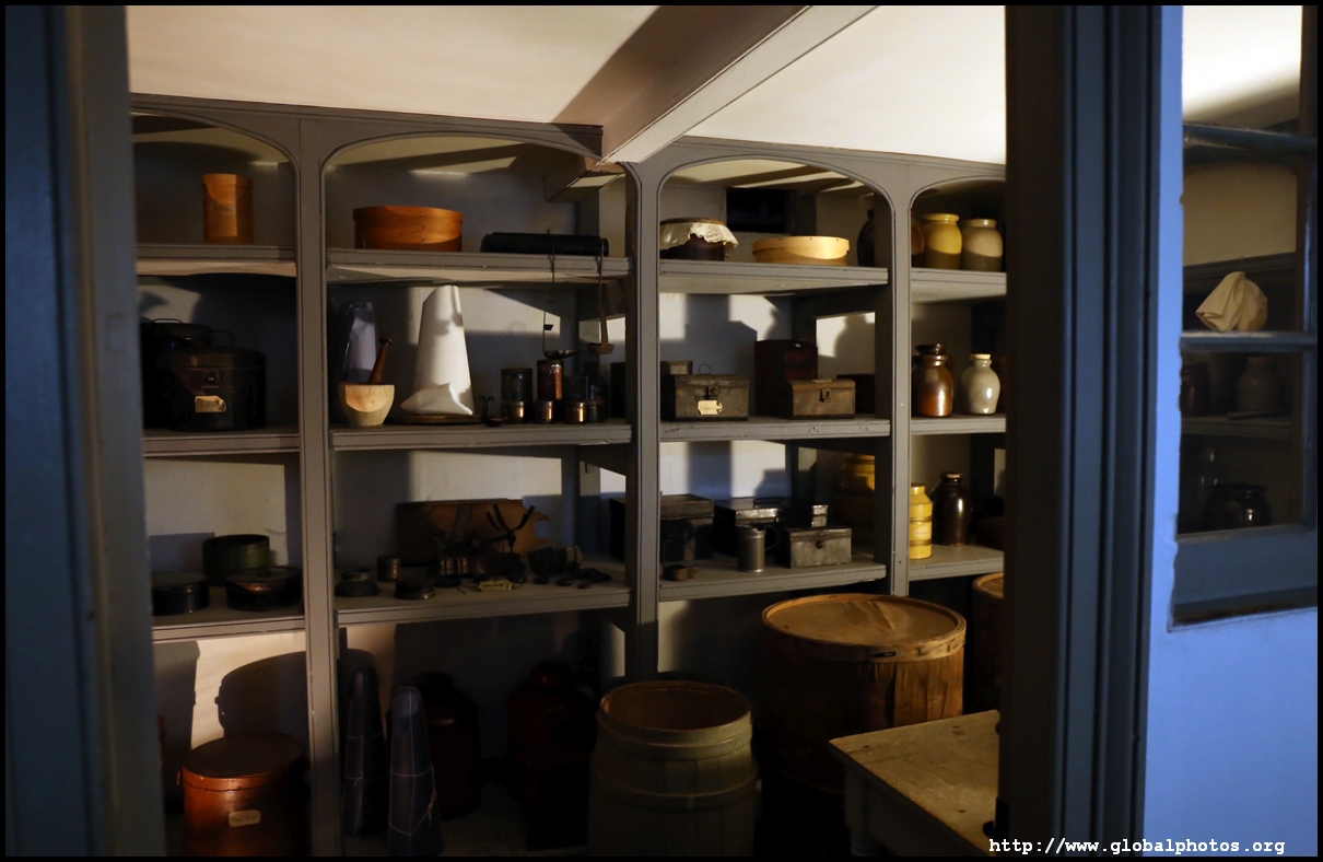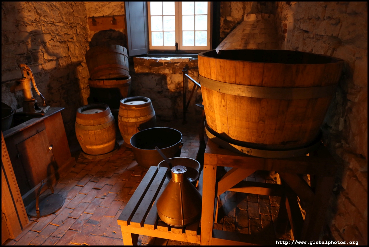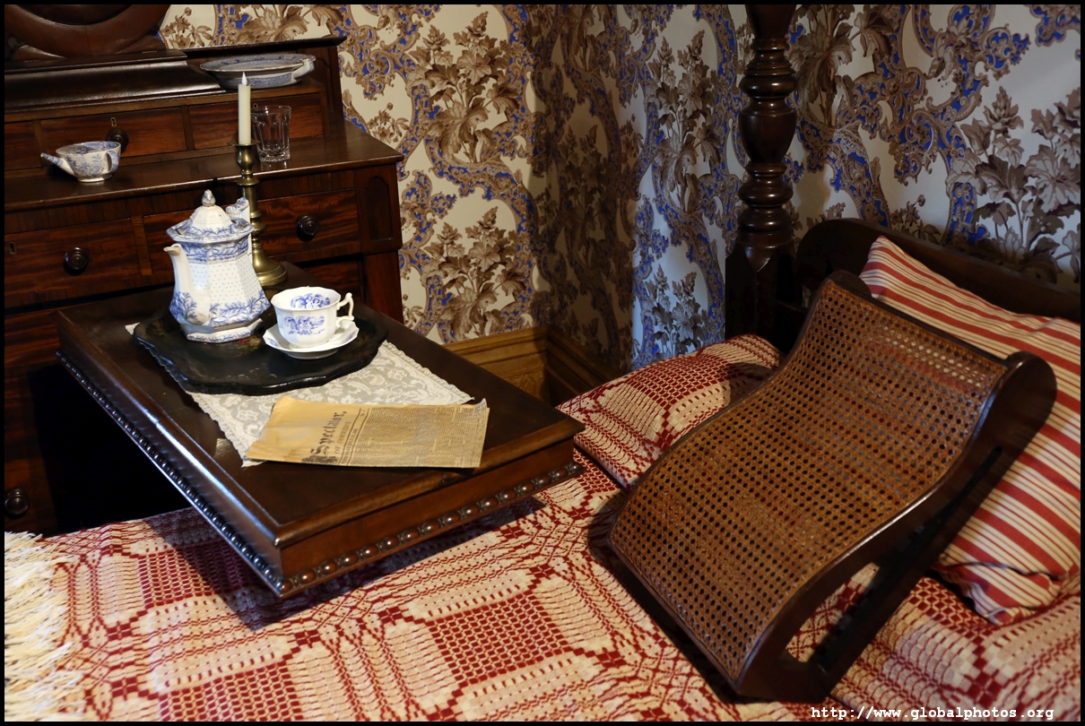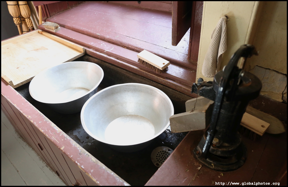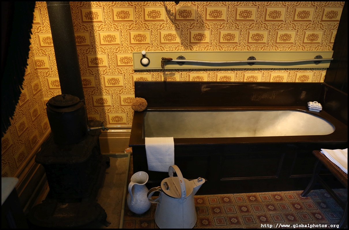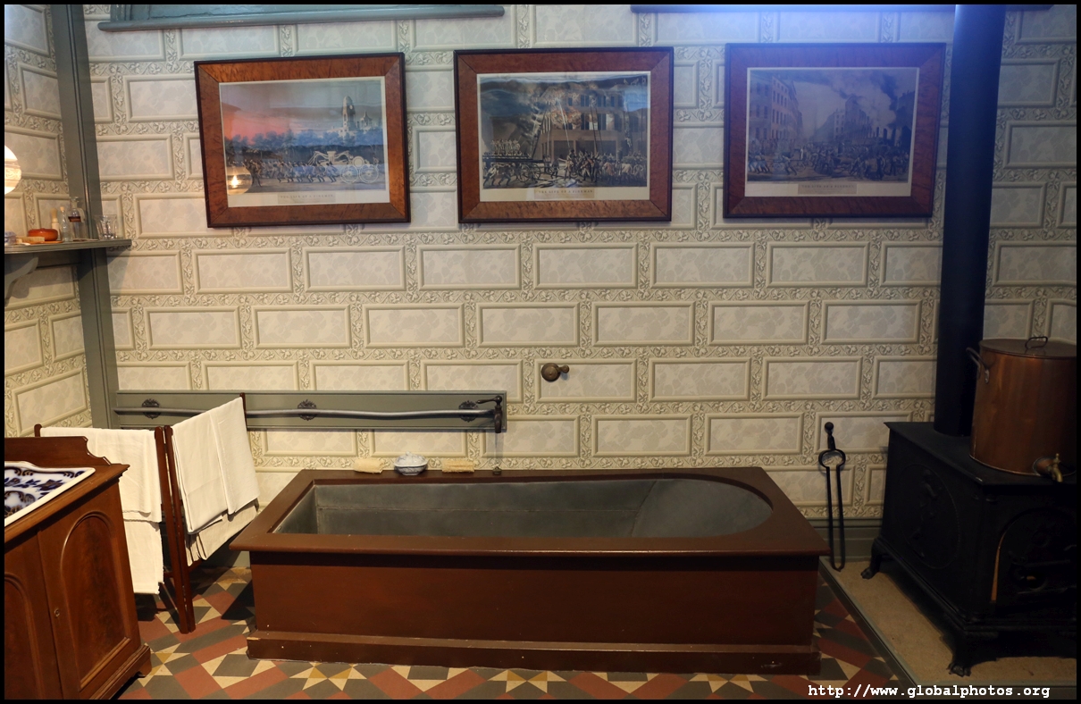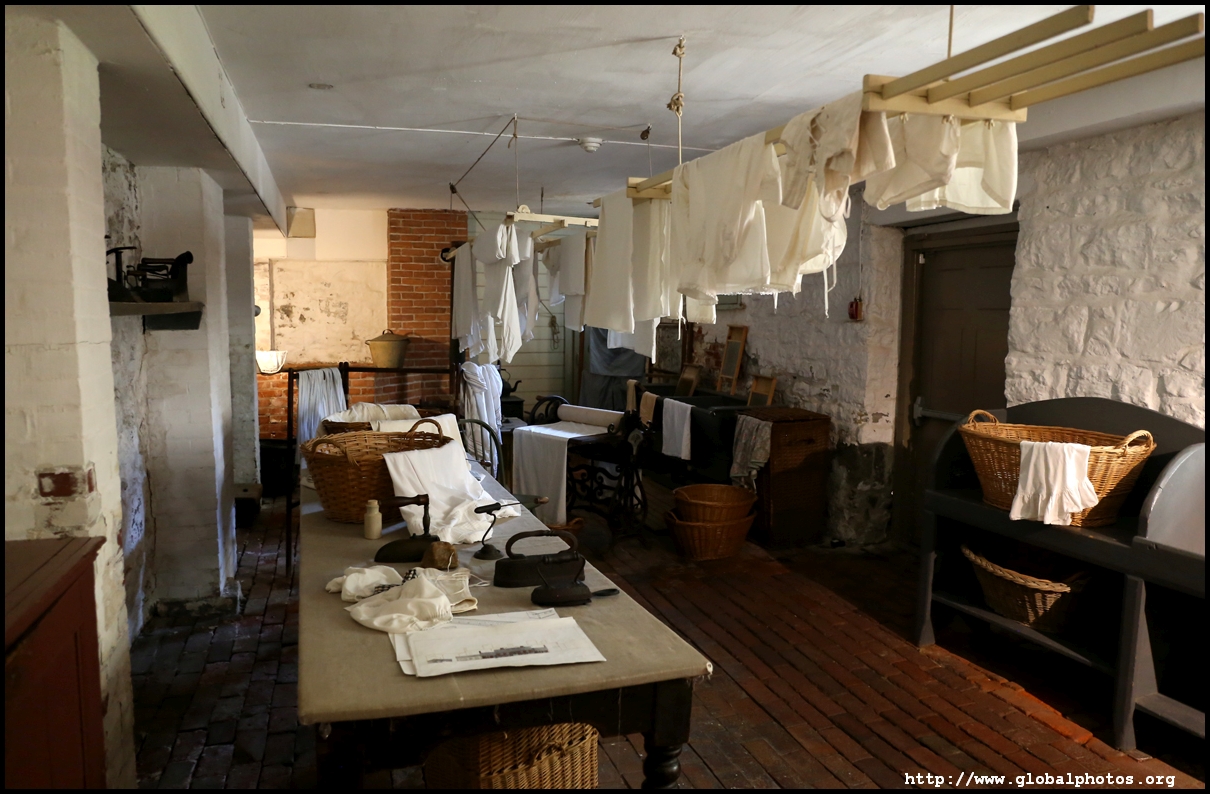 The basement has a full kitchen where they hold cooking workshops with a wood stove from the period. The servants lived and worked down here, forbidden to be seen on the 2 floors above them where the family lives unless called. The cook's bedroom looks relatively nicer, and for good reason. She would cook the family's 4 meals and servants' 3 meals a day.