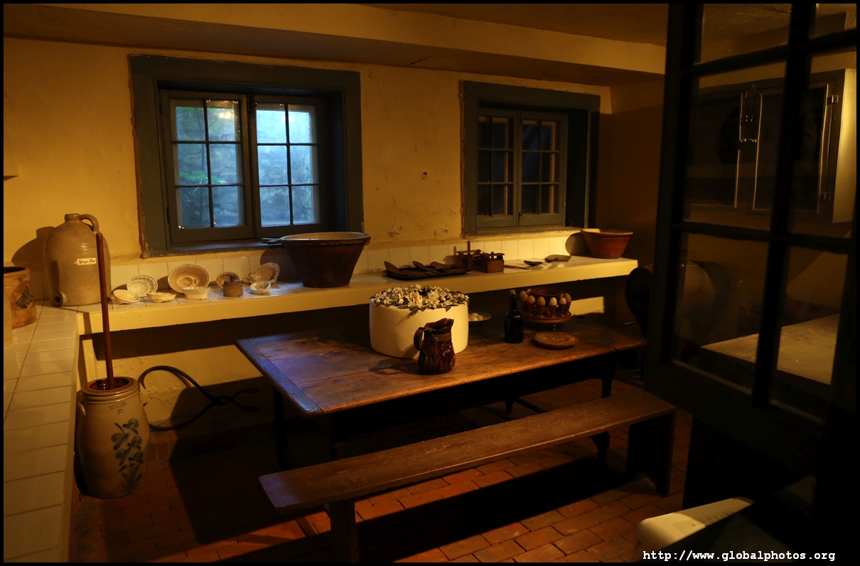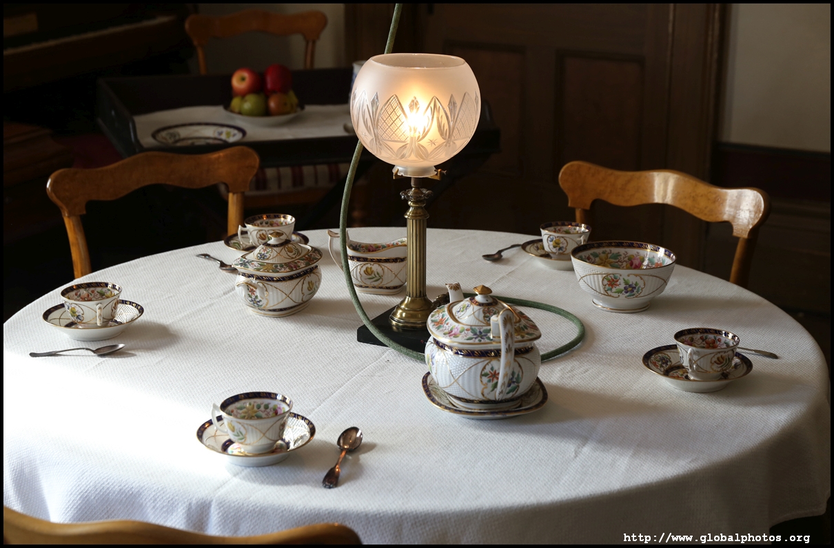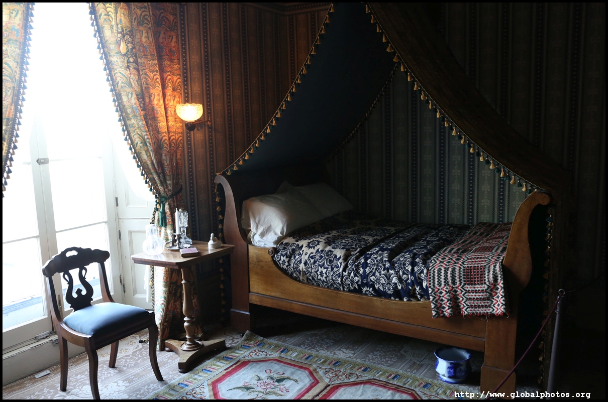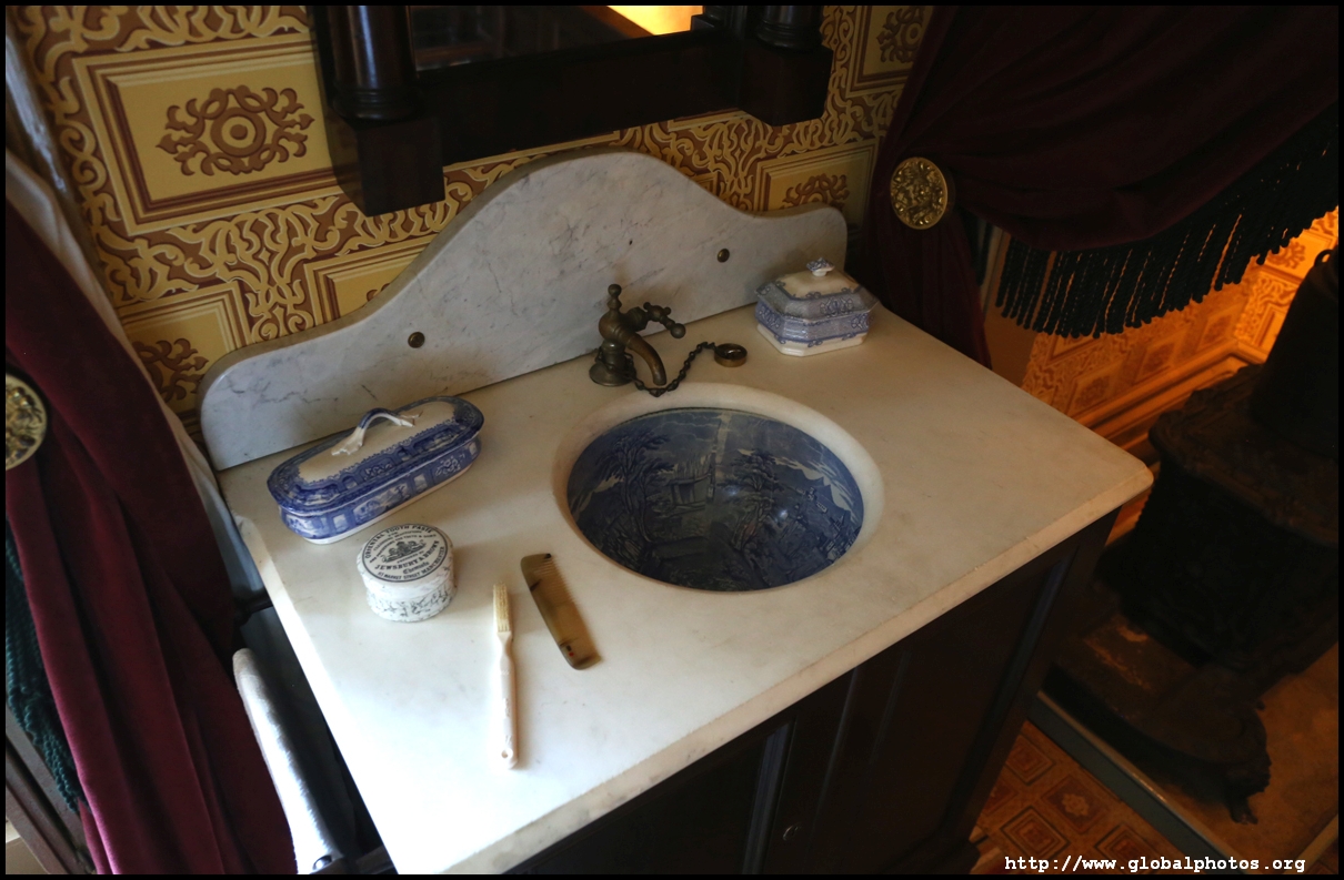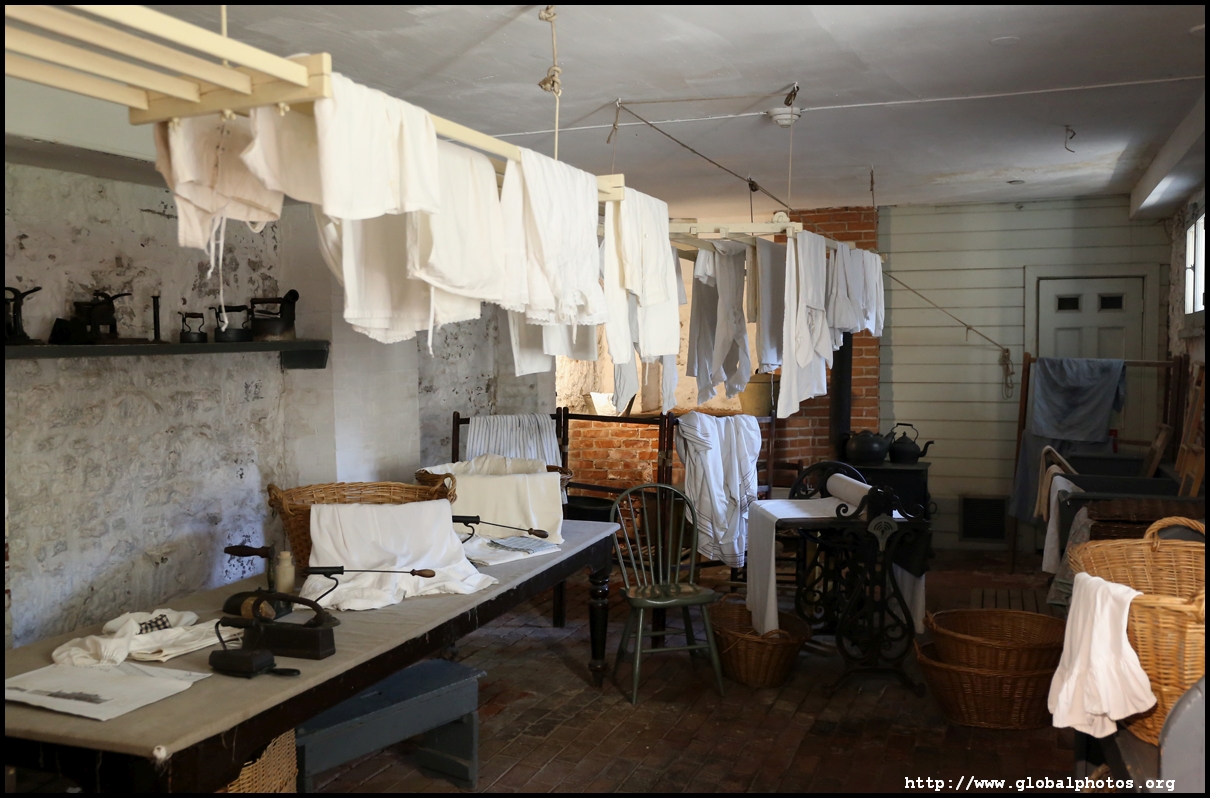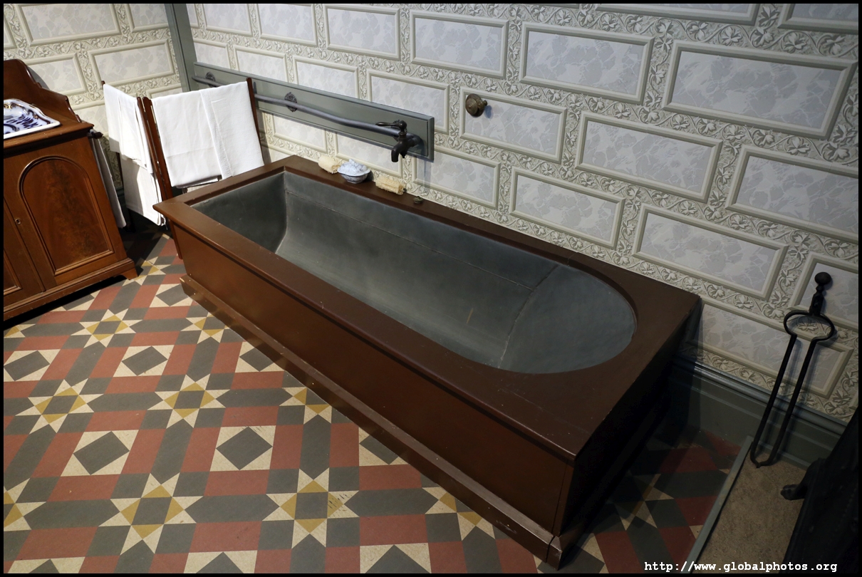 The basement has a full kitchen where they hold cooking workshops with a wood stove from the period. The servants lived and worked down here, forbidden to be seen on the 2 floors above them where the family lives unless called. The cook's bedroom looks relatively nicer, and for good reason. She would cook the family's 4 meals and servants' 3 meals a day.